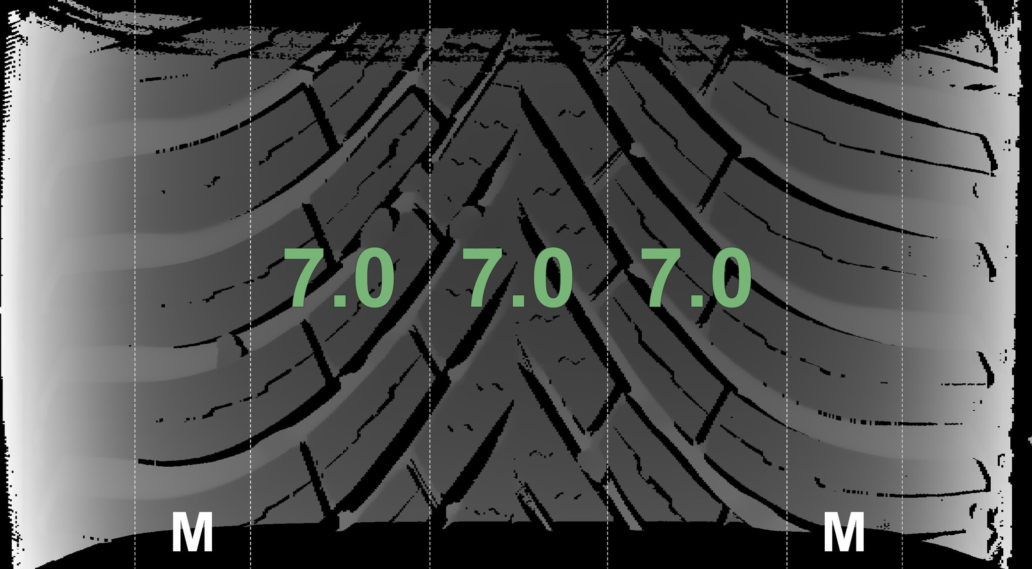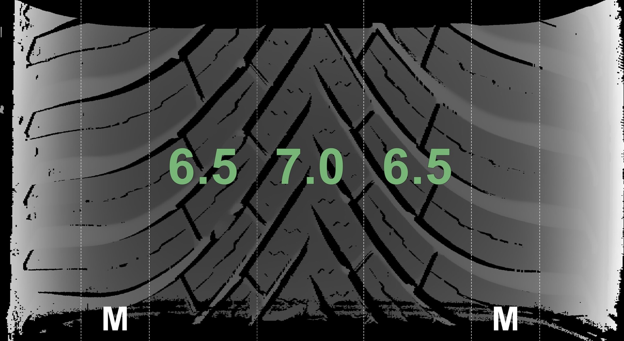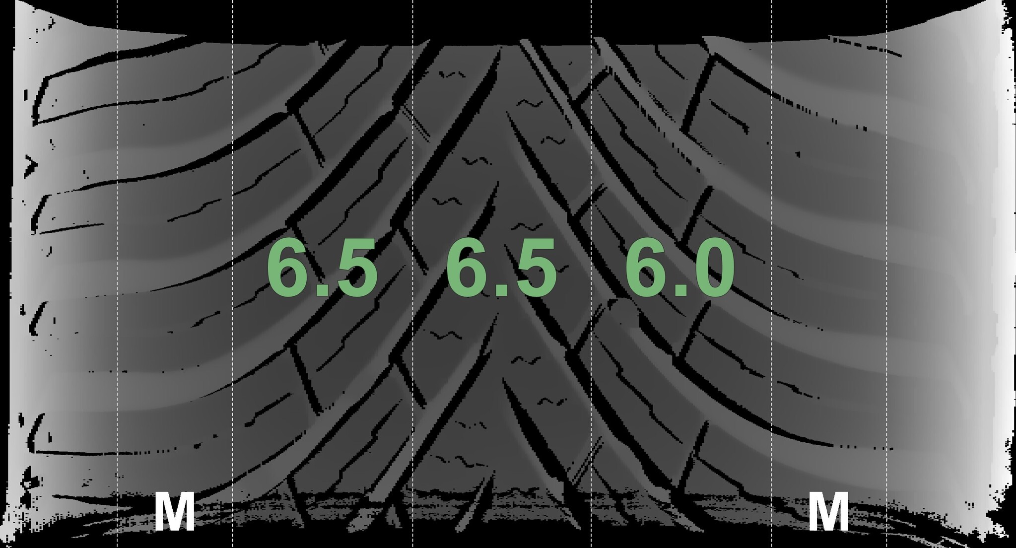 The measured tread depths and the details of the rims are shown above.