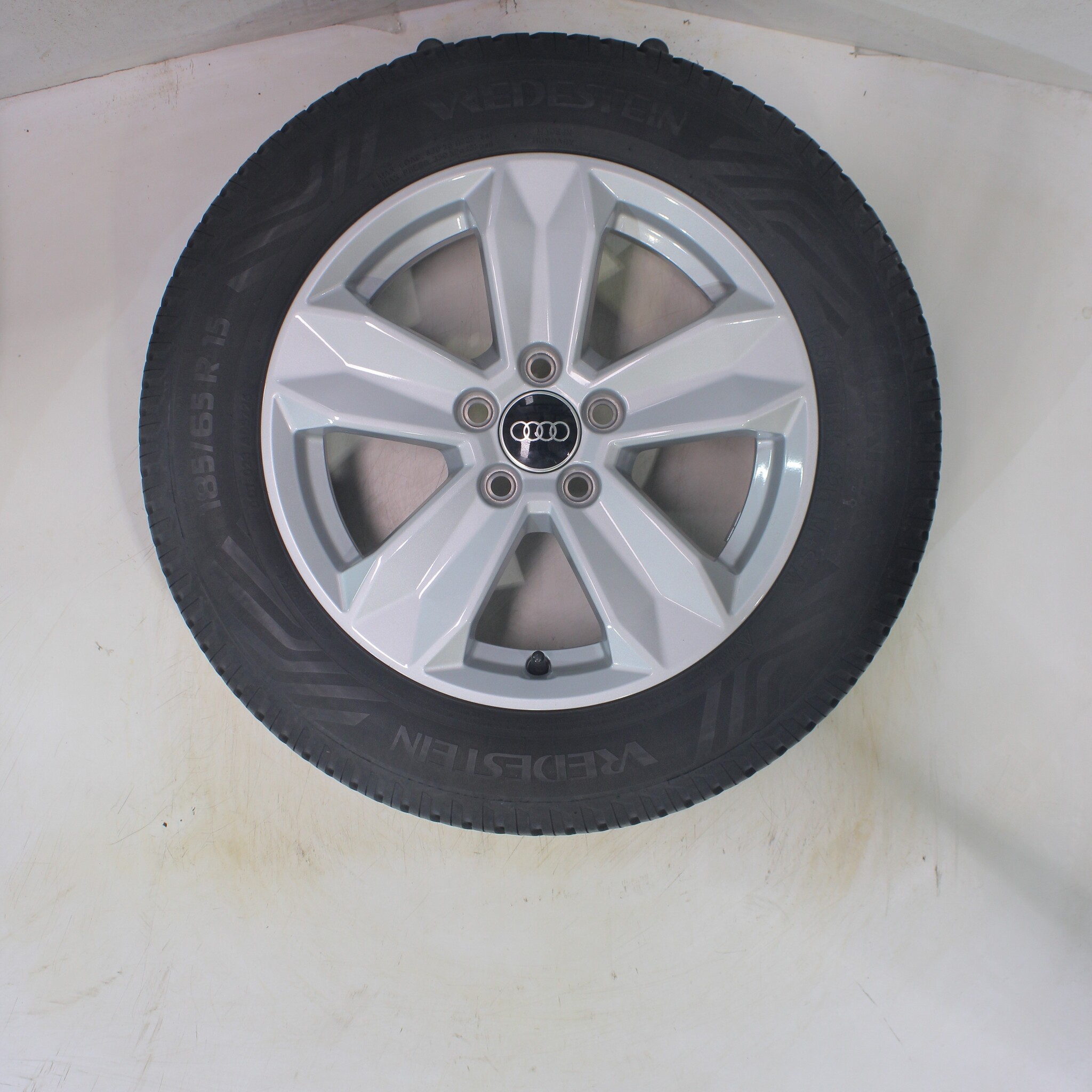 Original Audi wheelset, 15-inch rims with Vredestein Quatrac All-Season (4 seasons). These rims are original Audi brand rims and suitable for: Audi A1 S1 82A 8X.