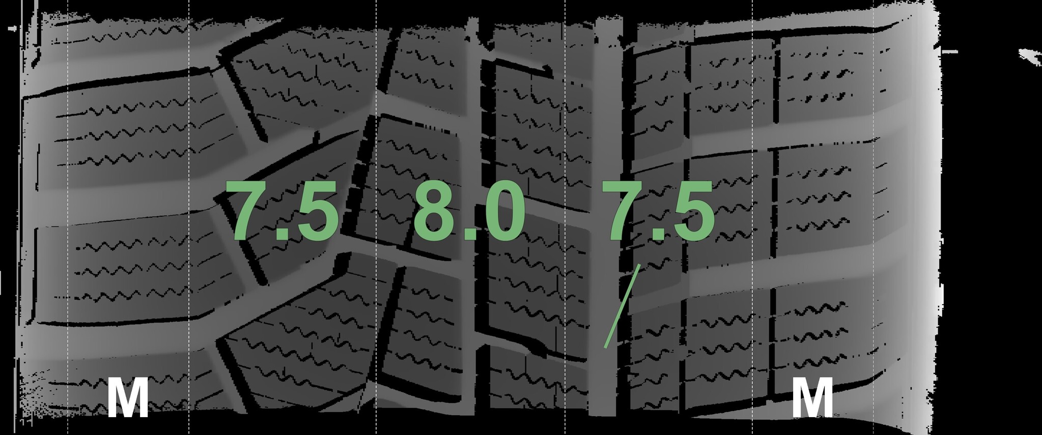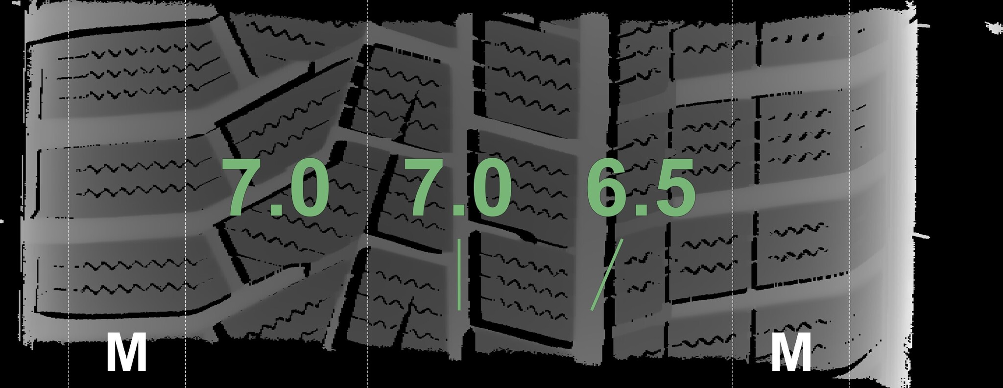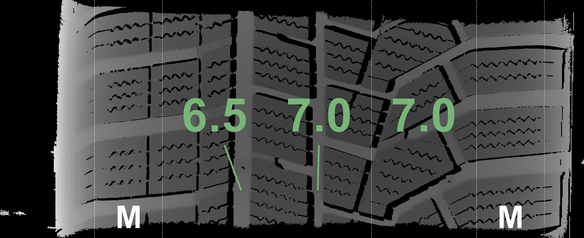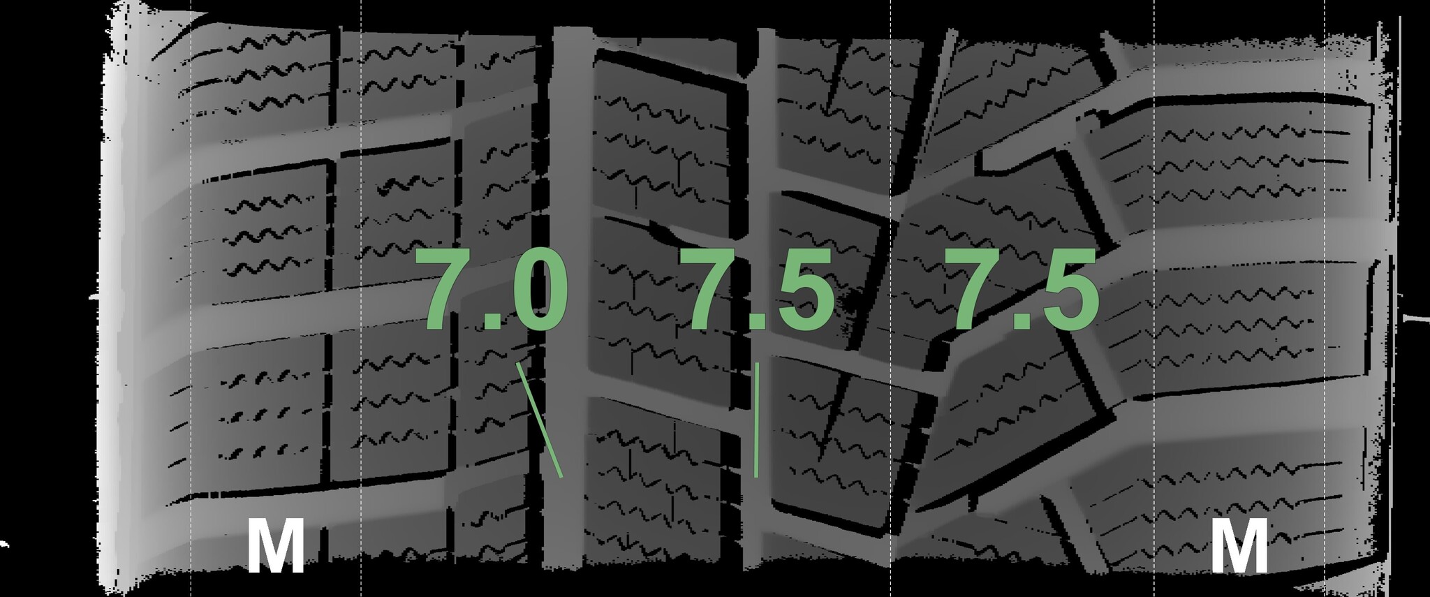 The measured tread depths and the details of the rims are shown above.