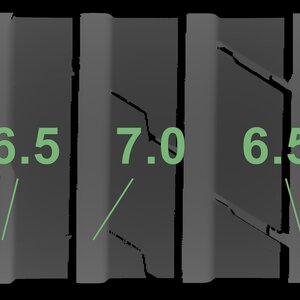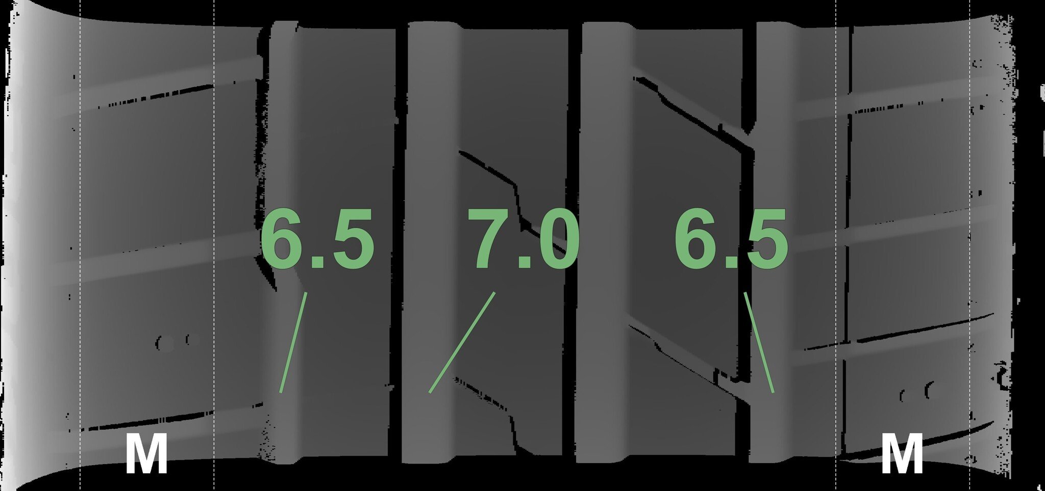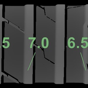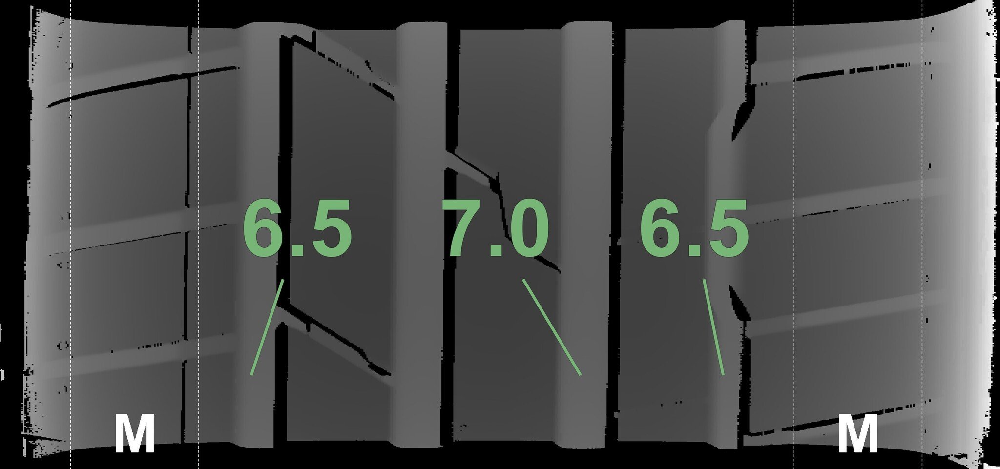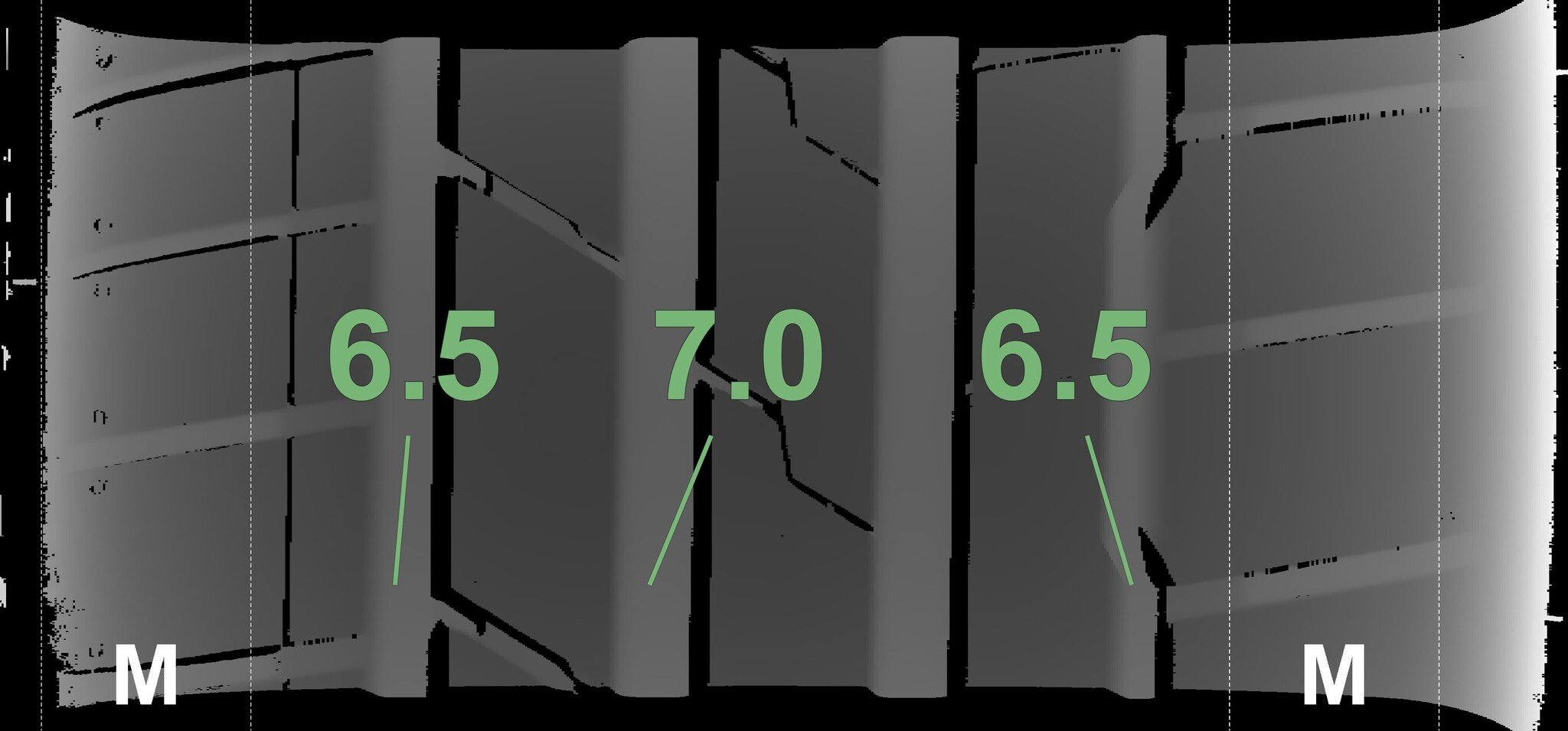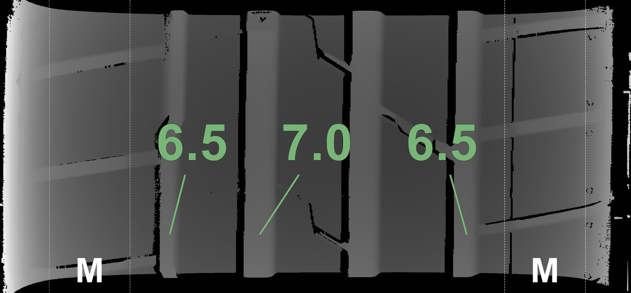 The measured tread depths and the details of the rims are shown above.