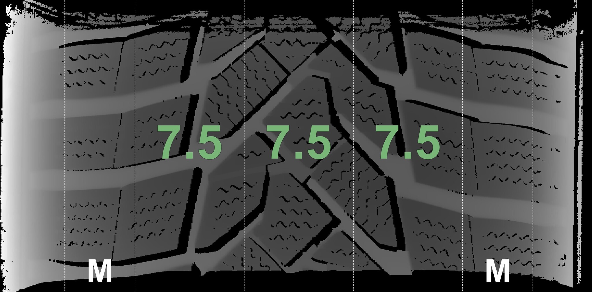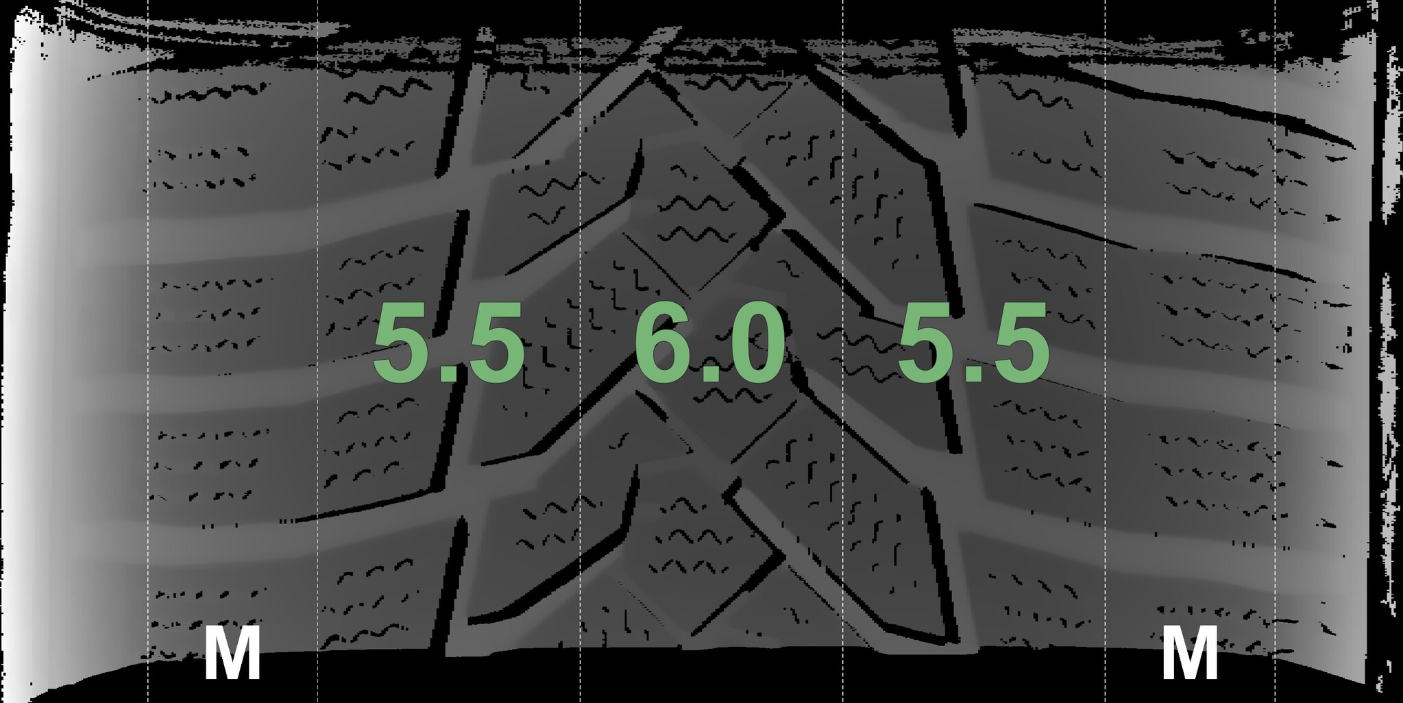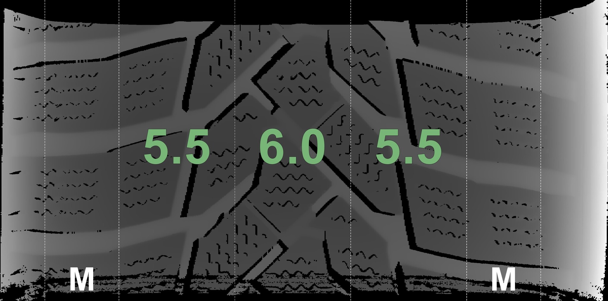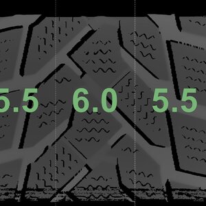 The measured tread depths and the details of the rims are shown above.