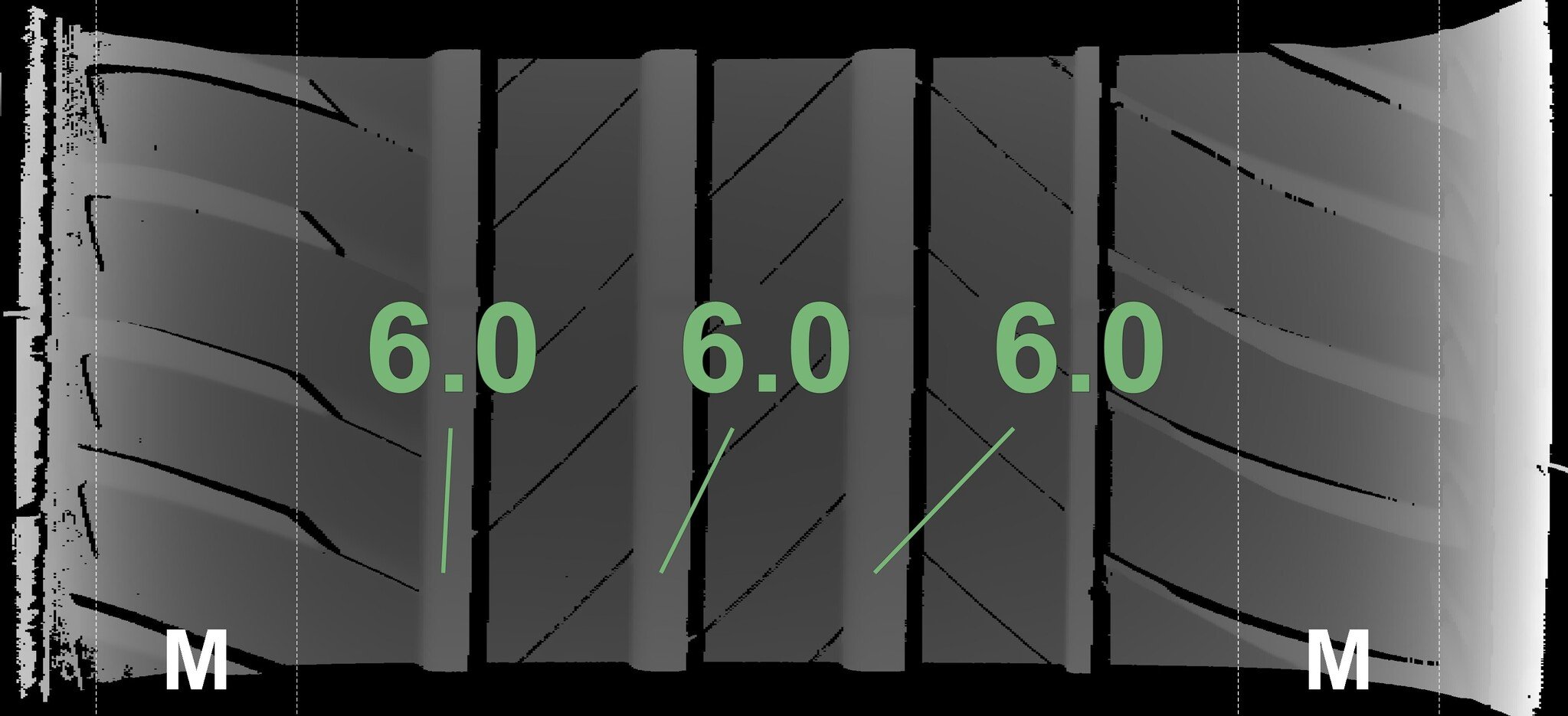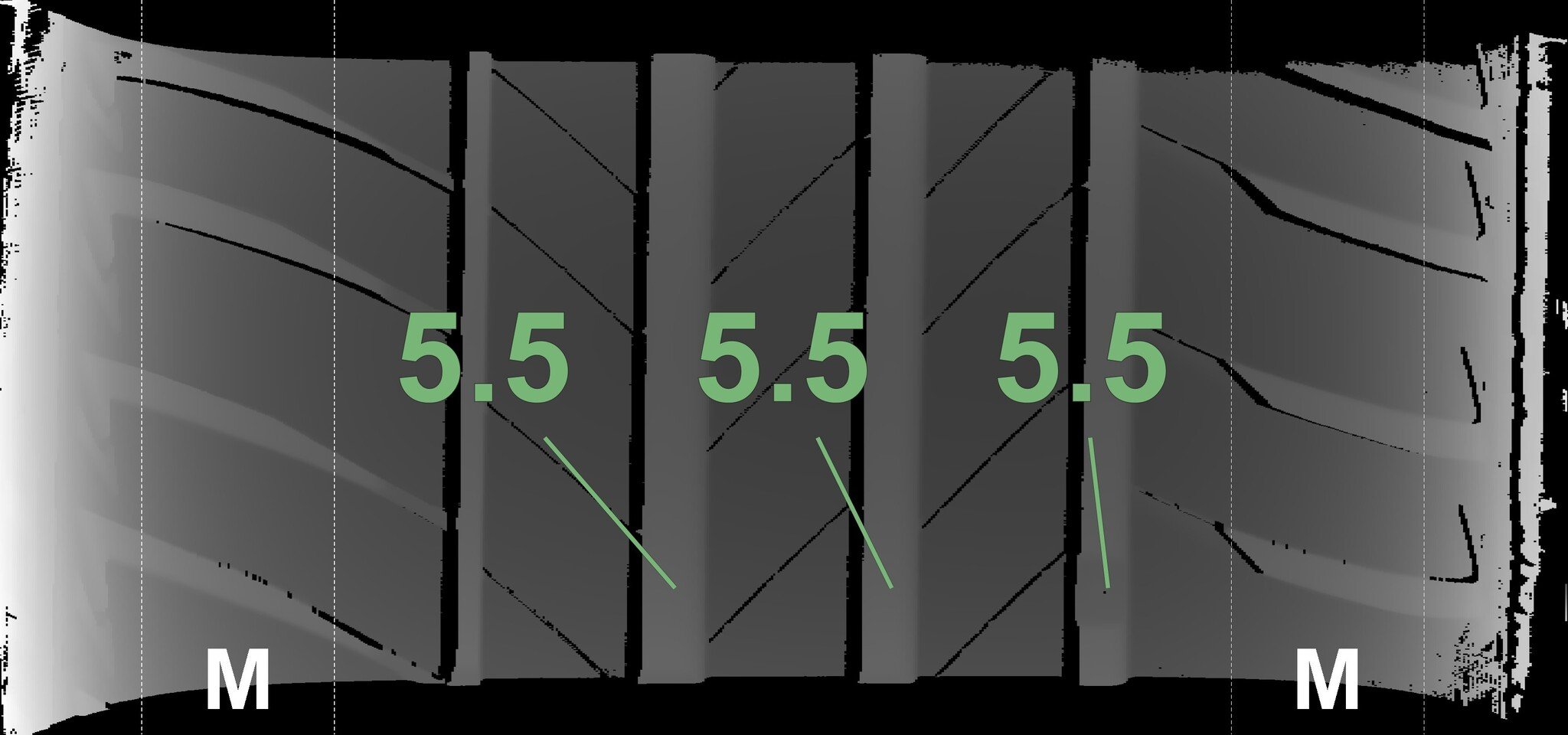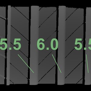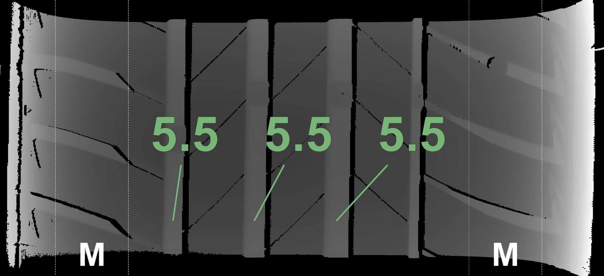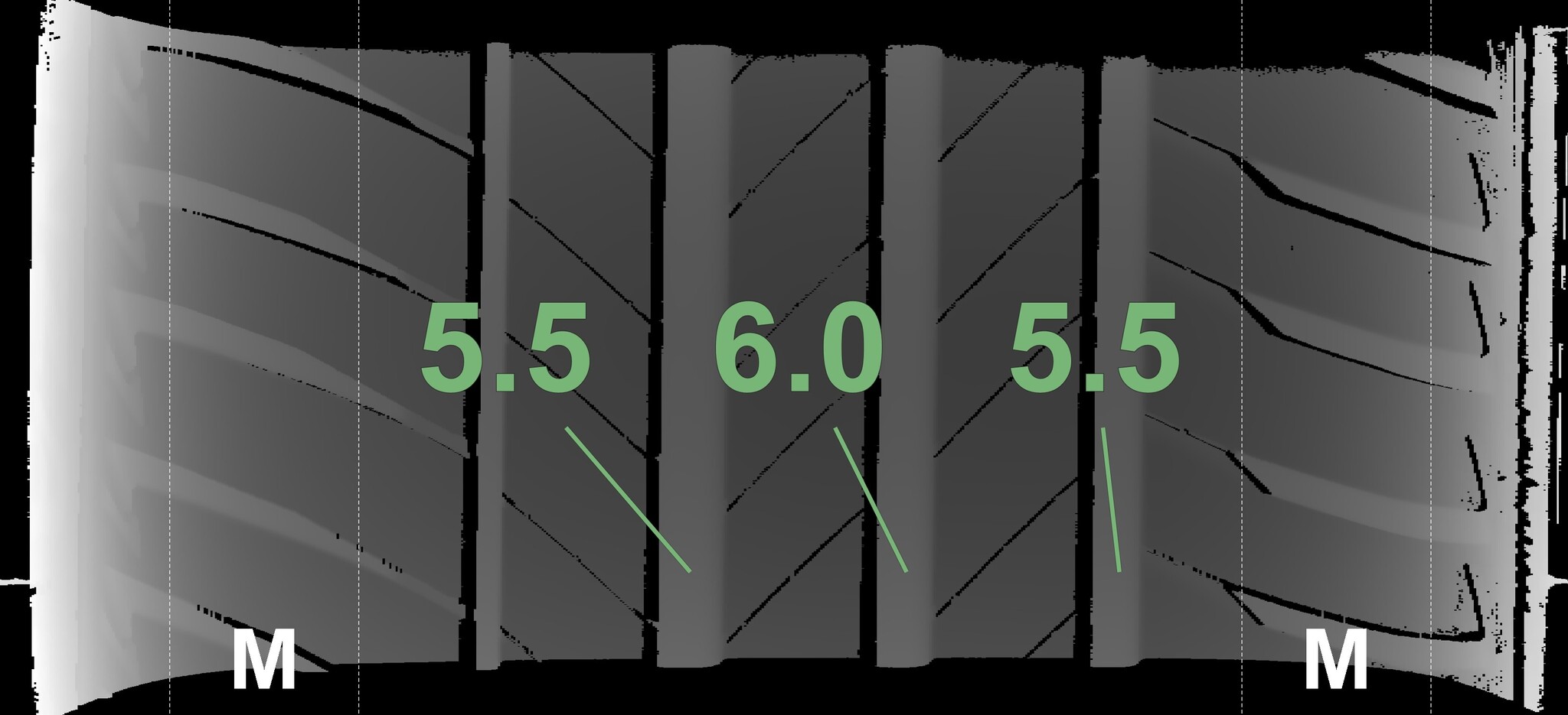 The measured tread depths and the details of the rims are shown above.