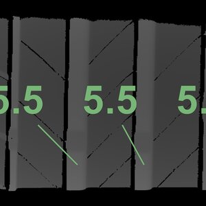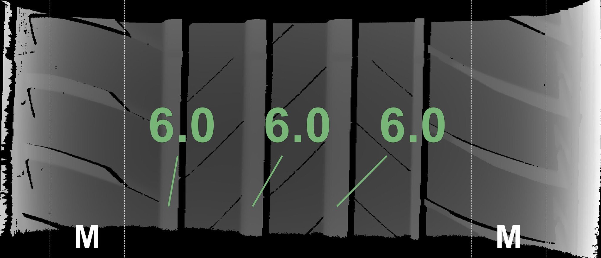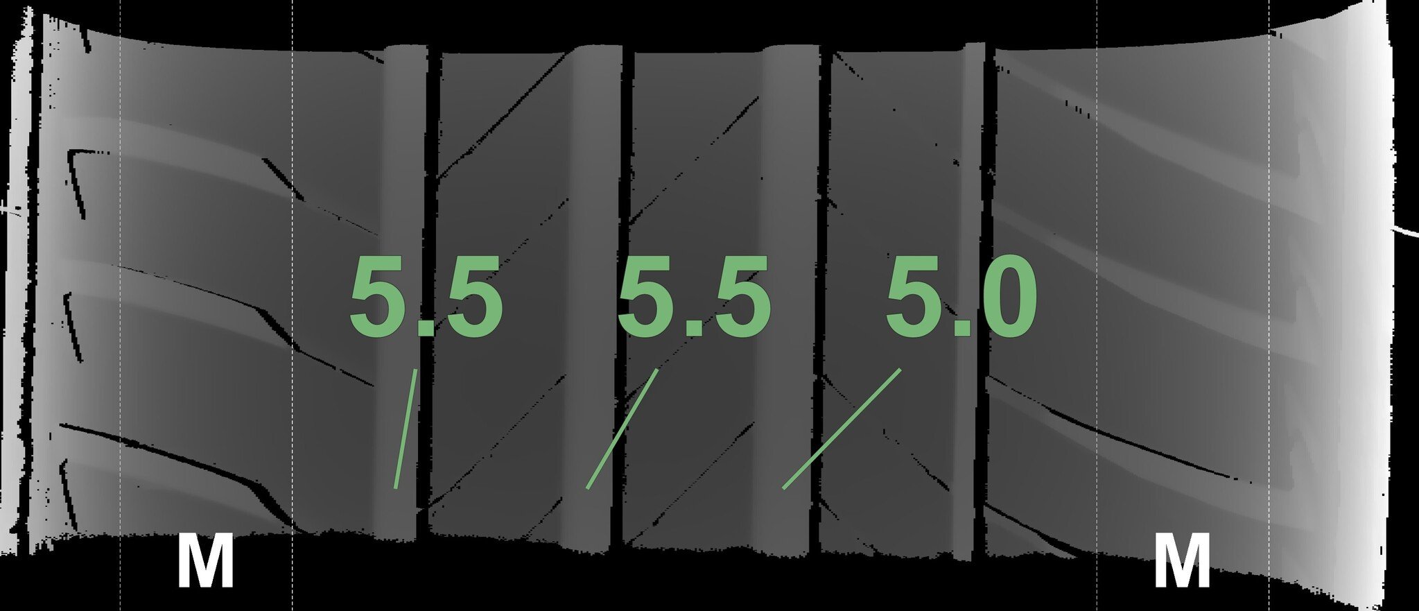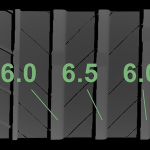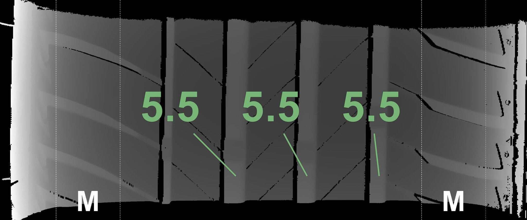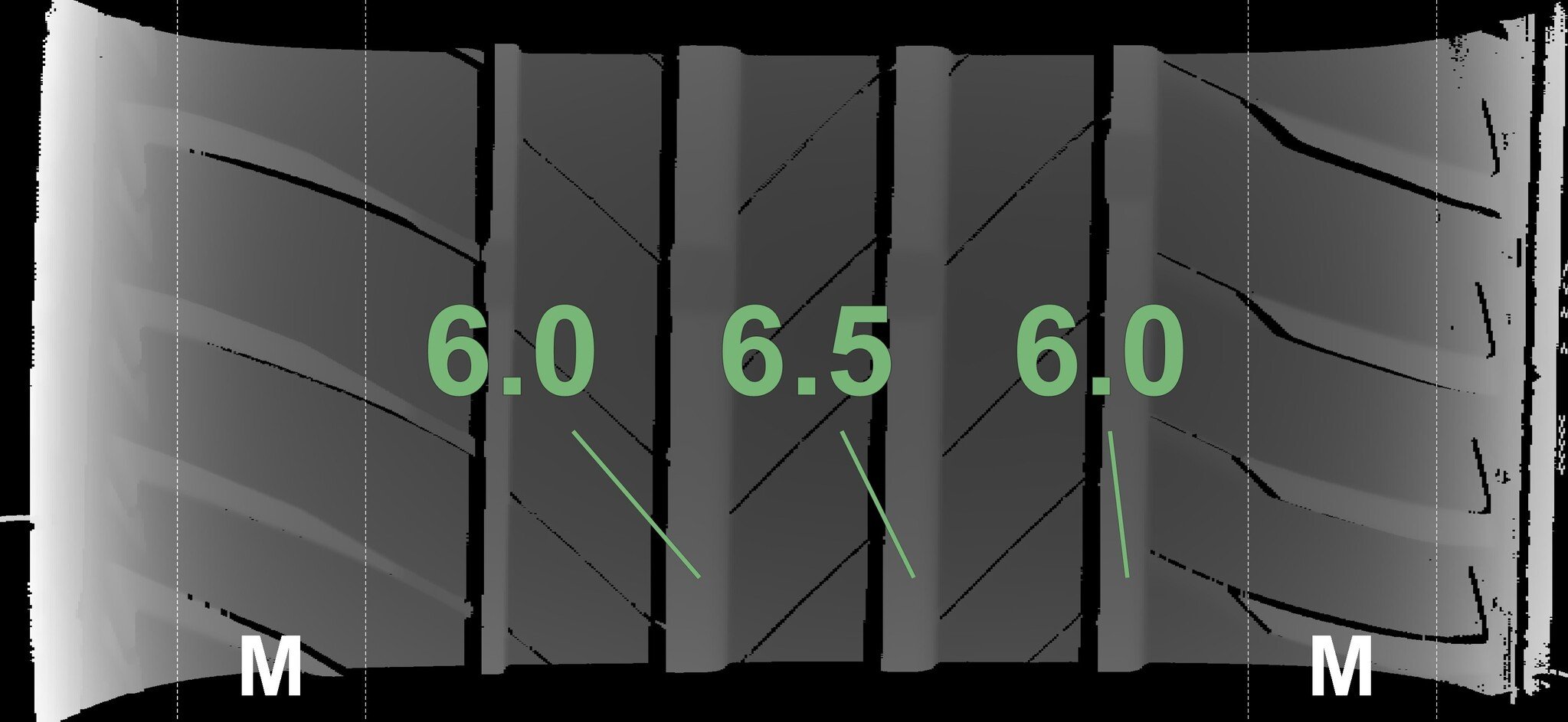 The measured tread depths and the details of the rims are shown above.
