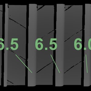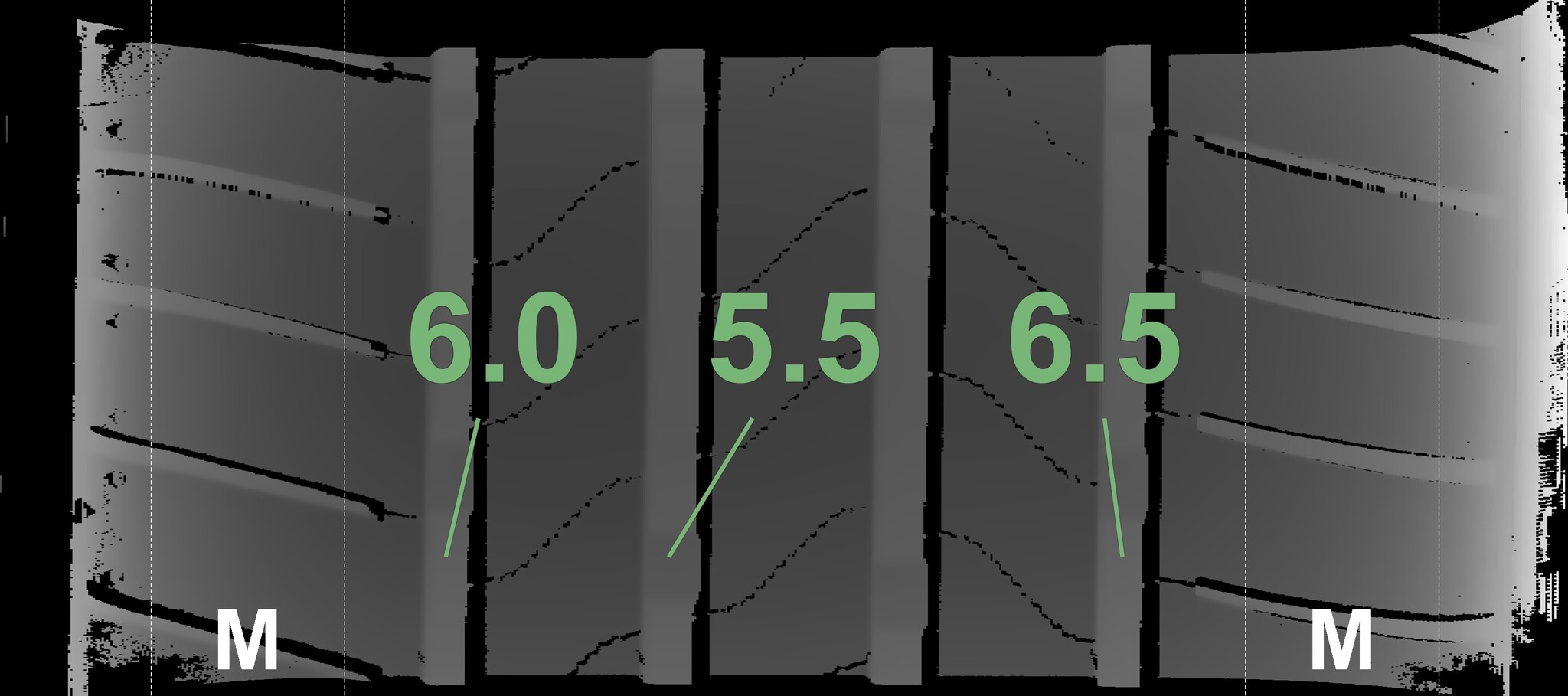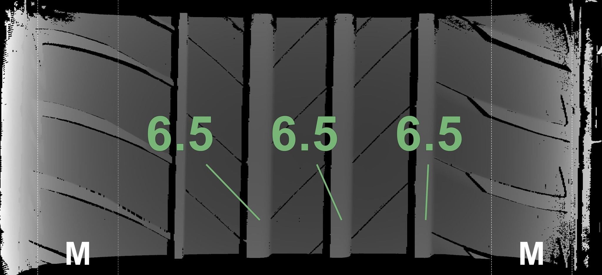 The measured tread depths and the details of the rims are shown above.