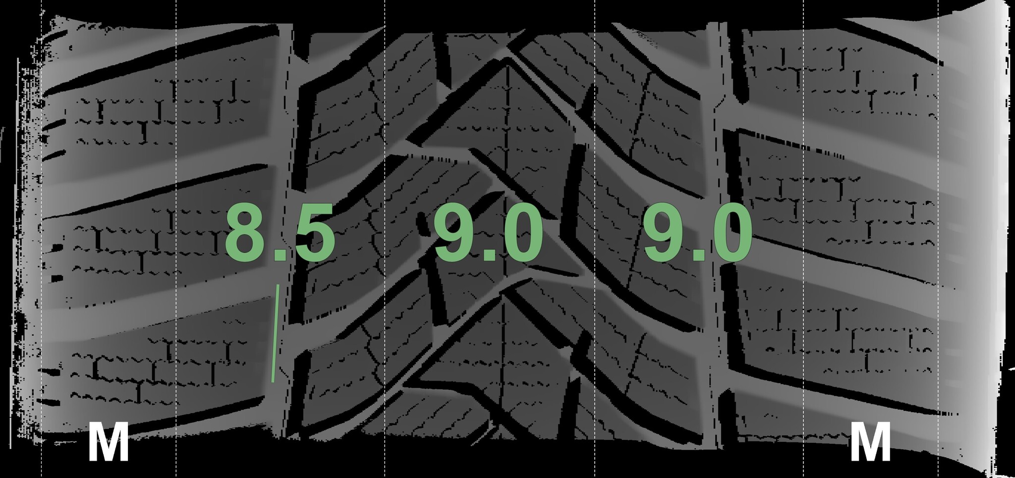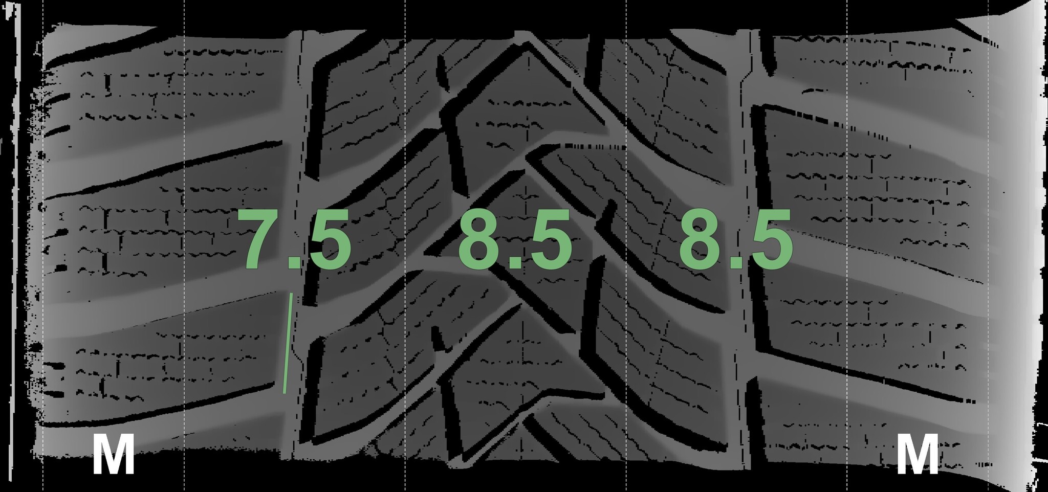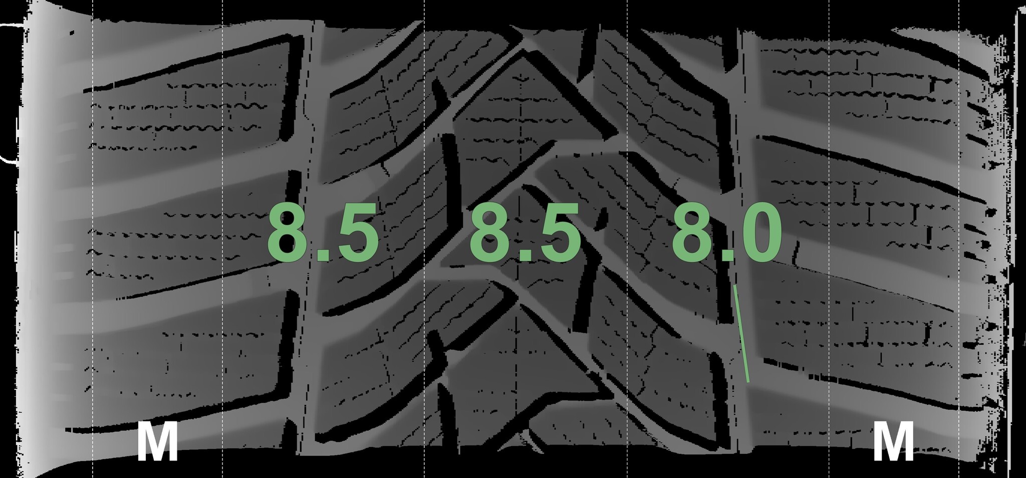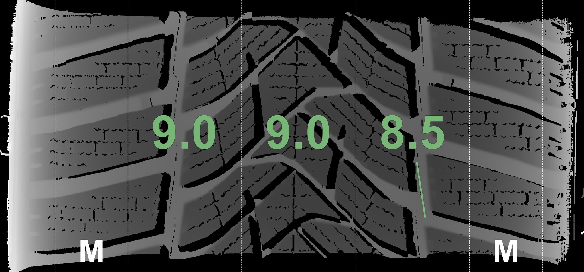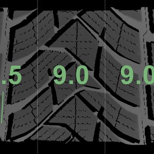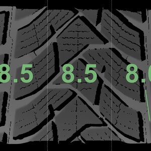 The measured tread depths and the details of the rims are shown above.