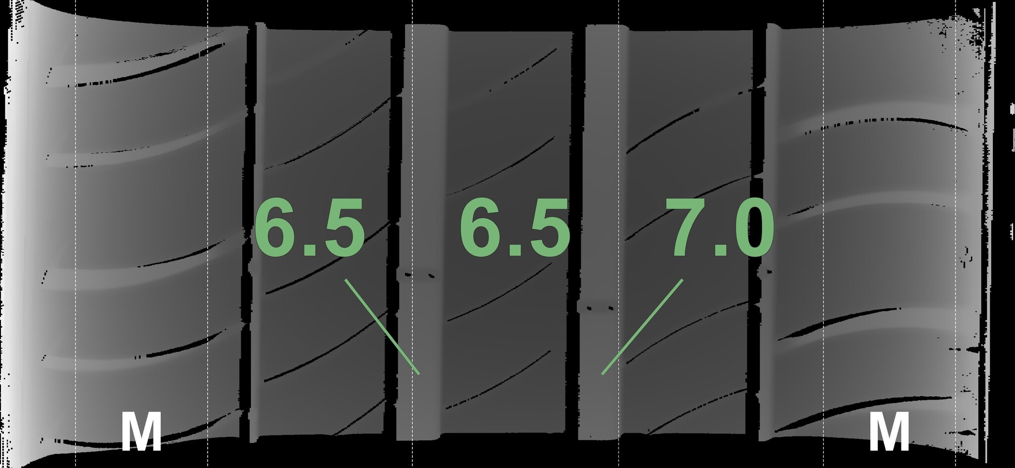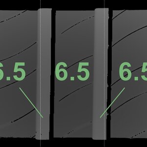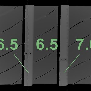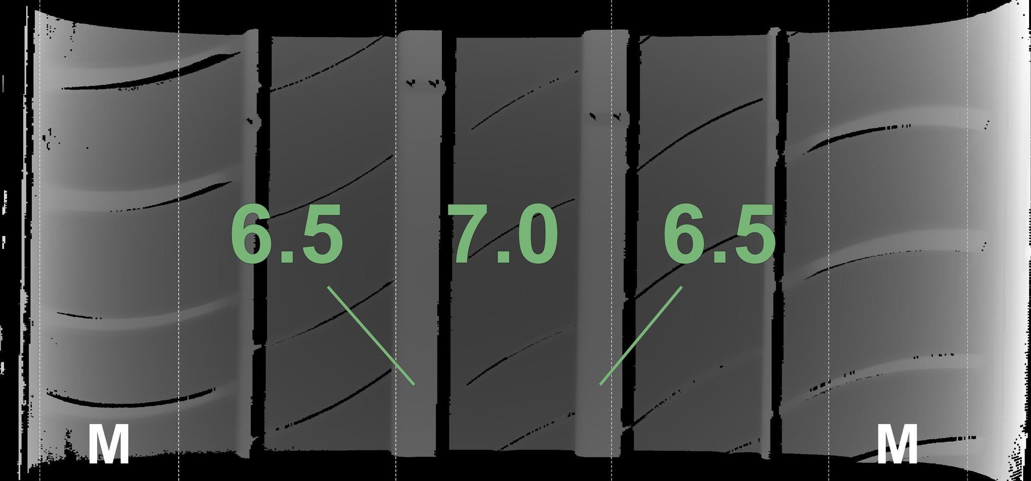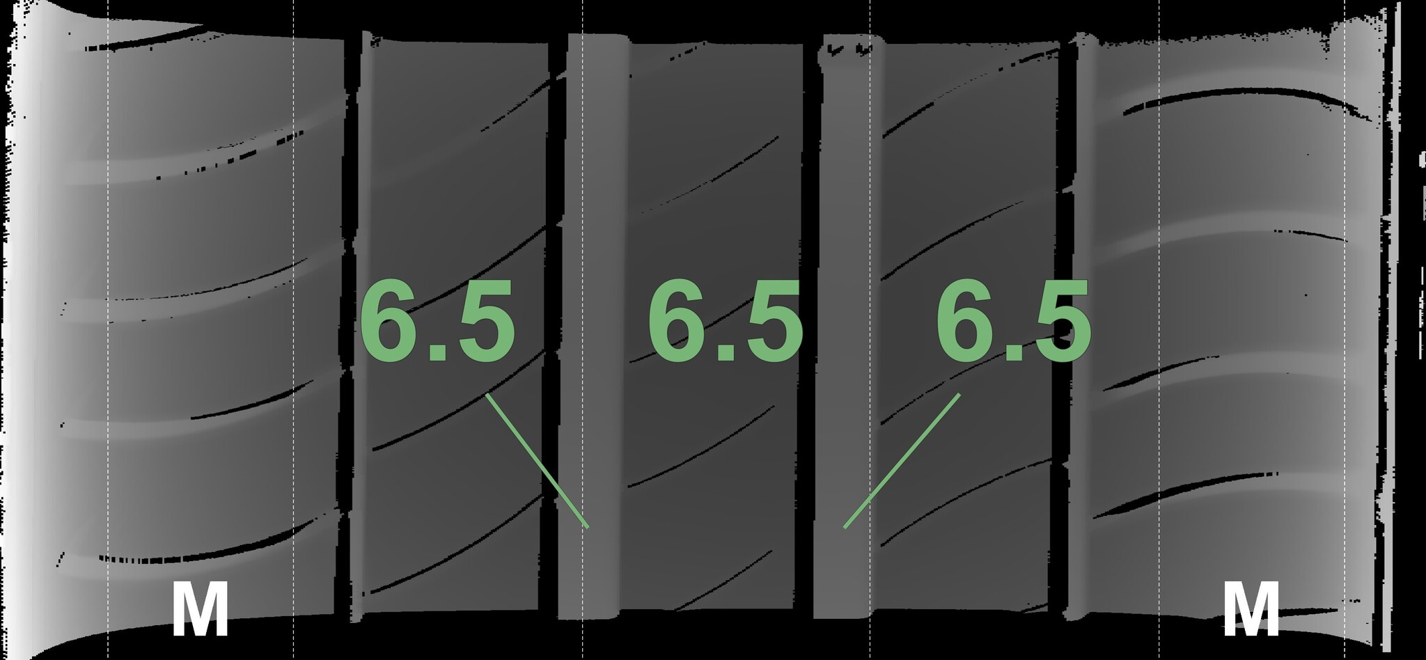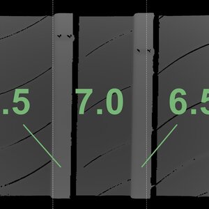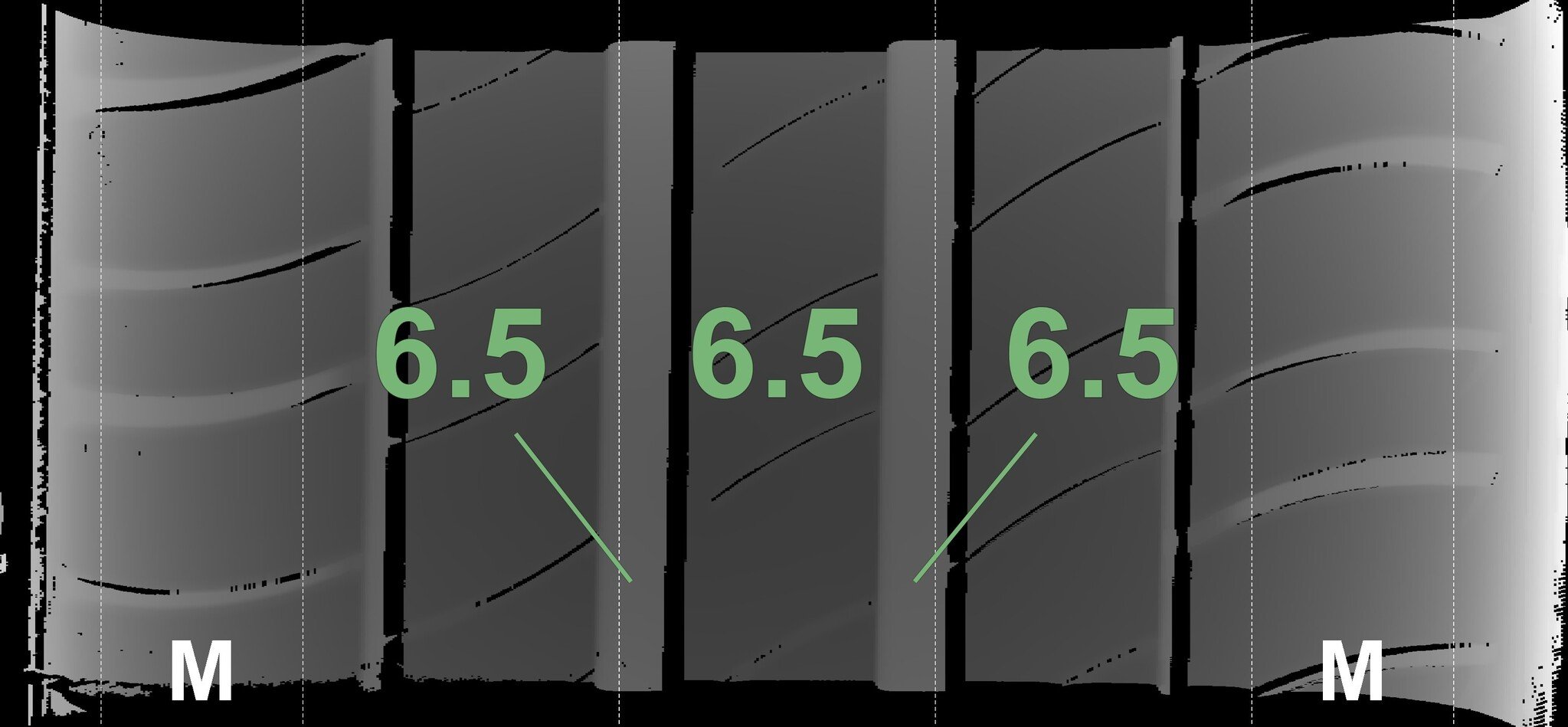 The measured tread depths and the details of the rims are shown above.