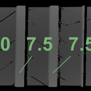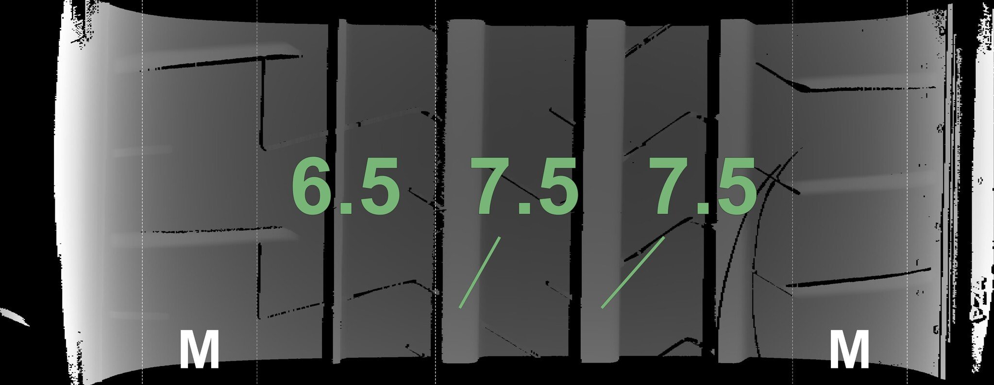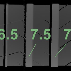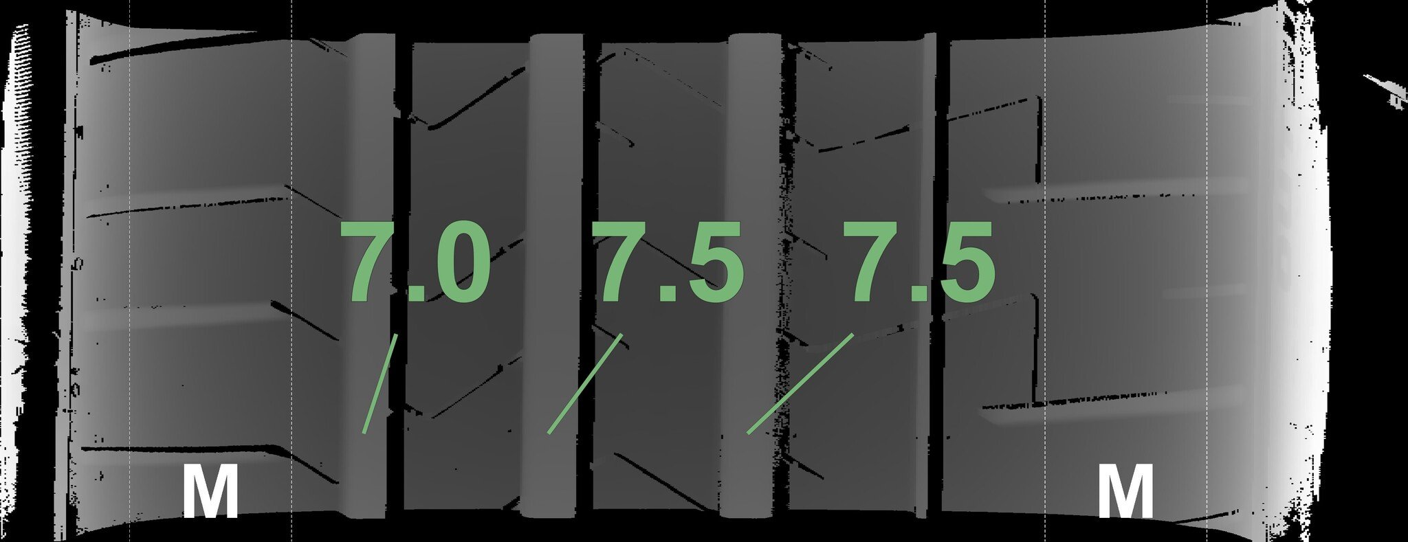The measured tread depths and the details of the rims are shown above.