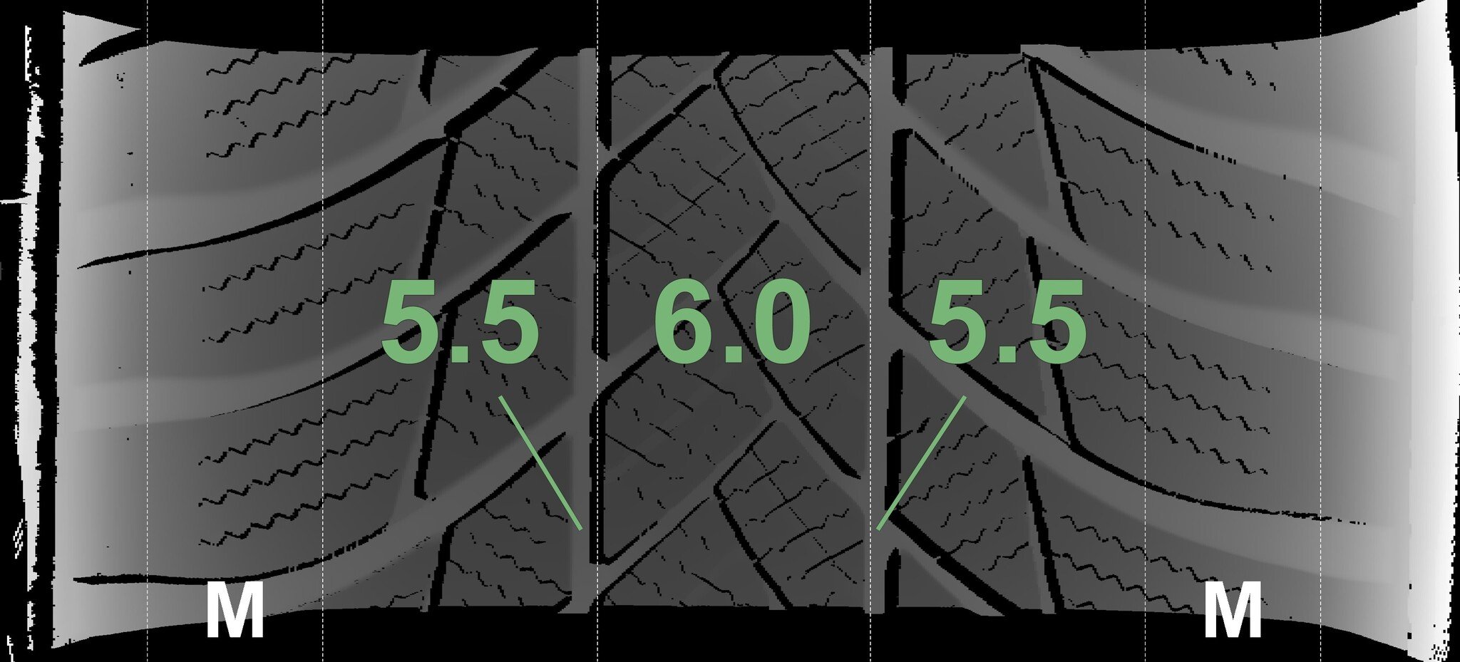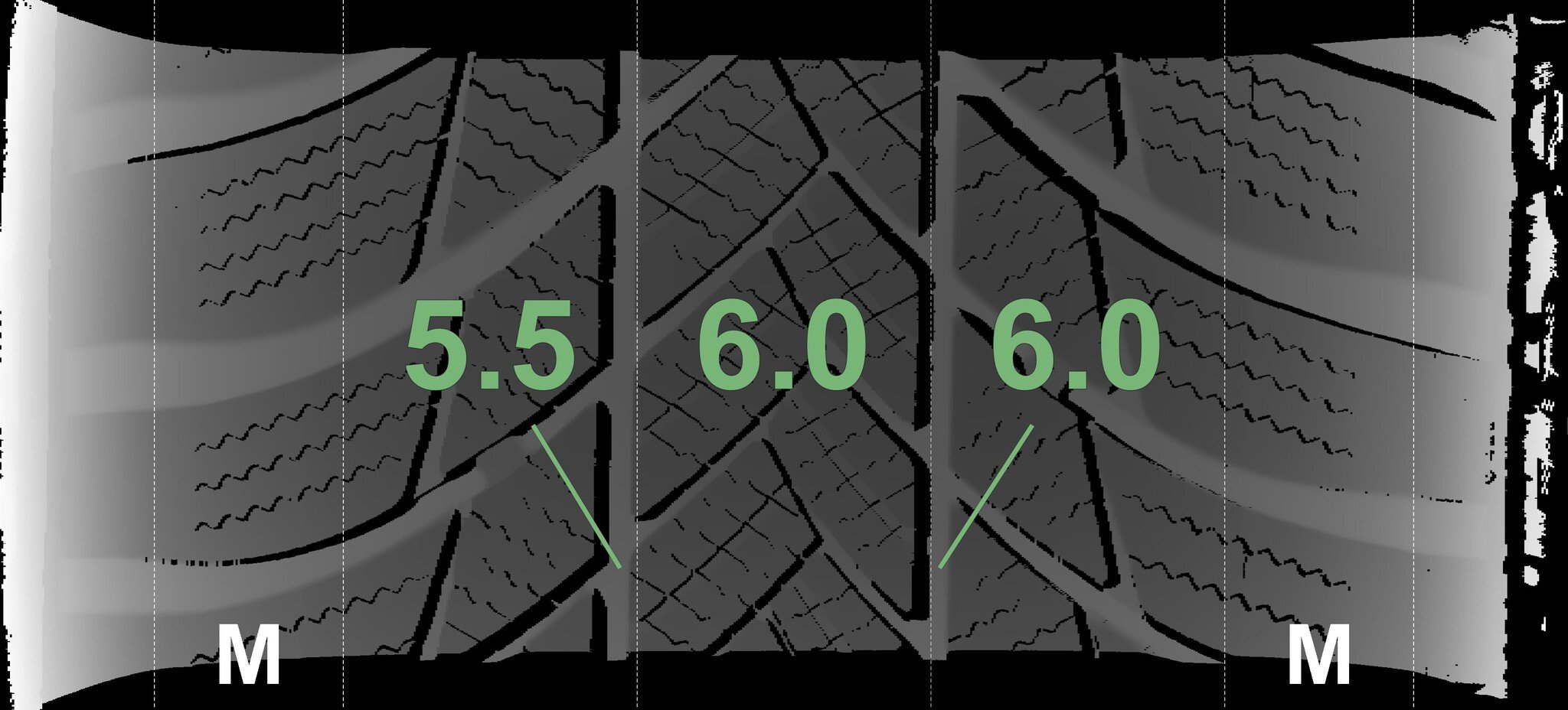 | Condition | Profile depth | DOT | Front Left | Used | 5.8 mm | 0420 |