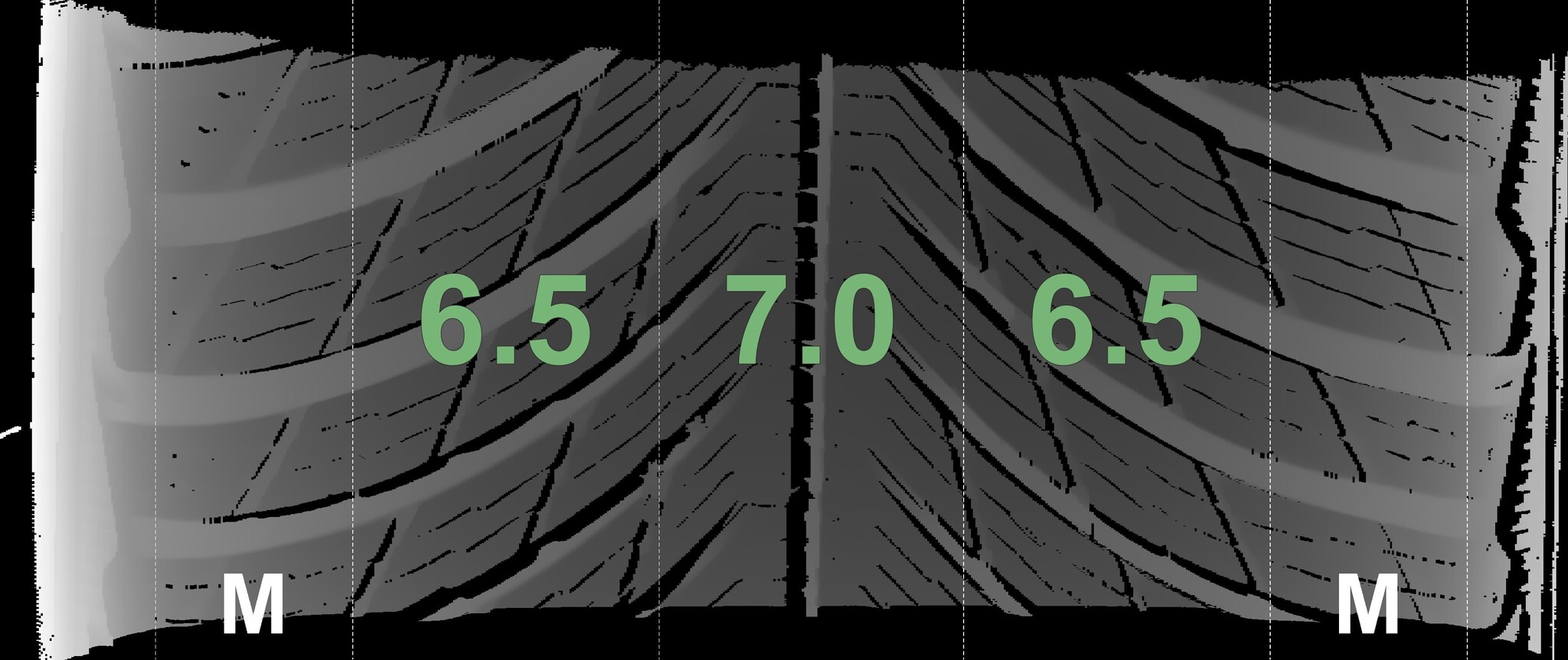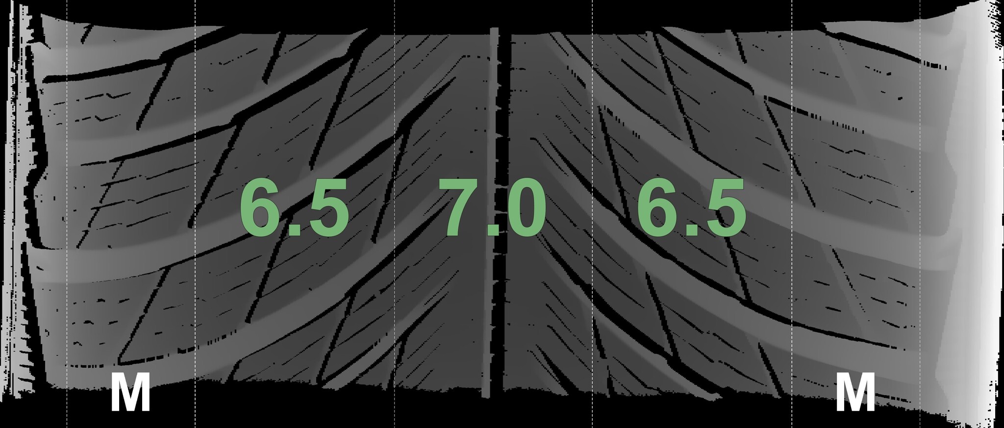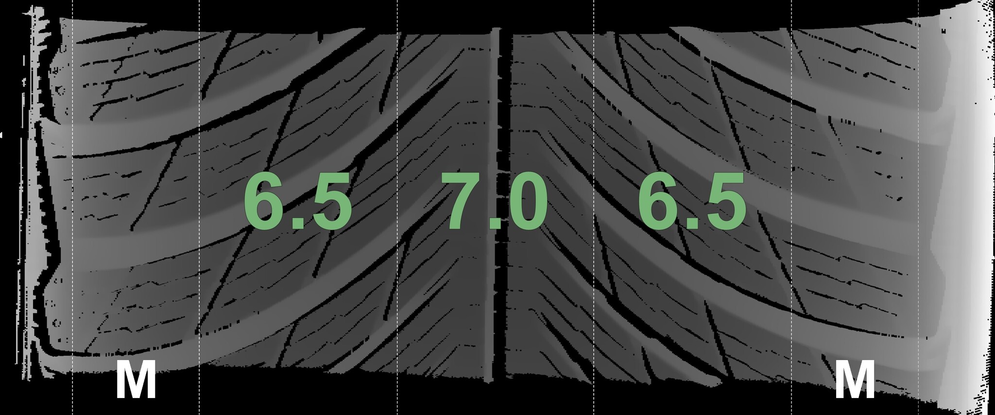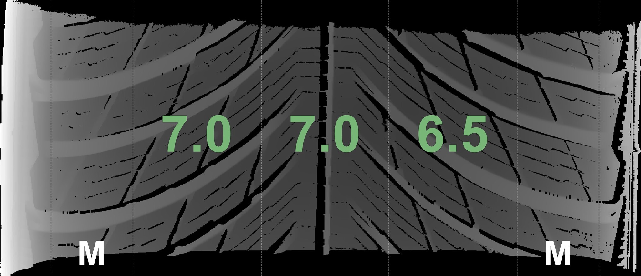 The measured tread depths and the details of the rims are shown above.