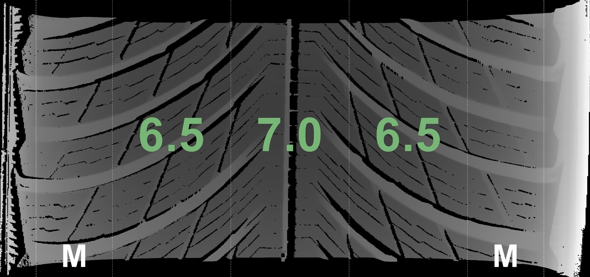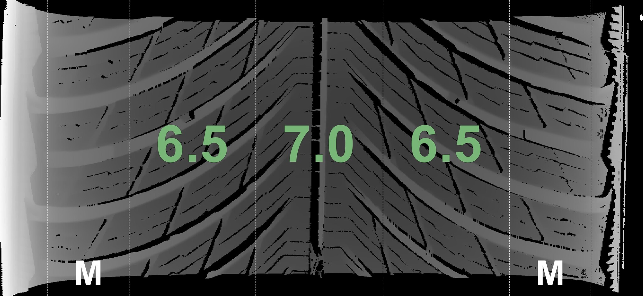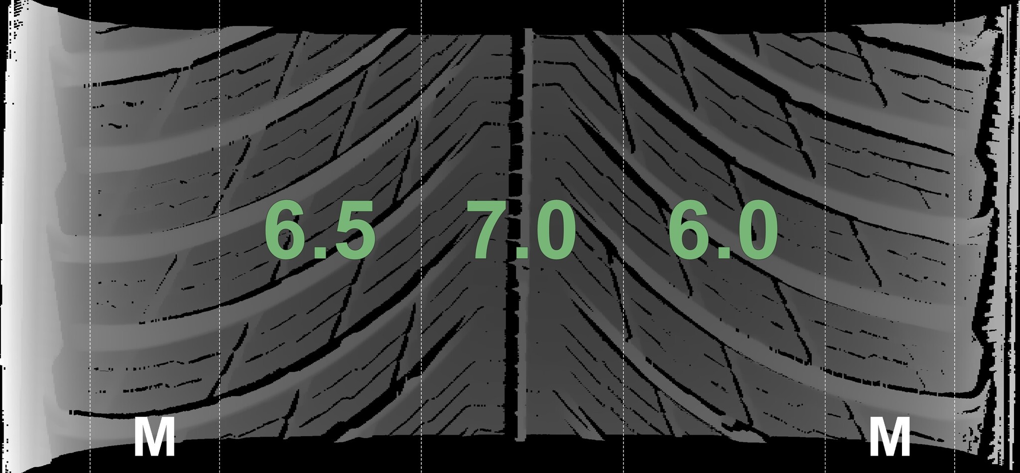 | Condition | Profile depth | DOT | Front Right | Used | 6.7 mm | 4522 |