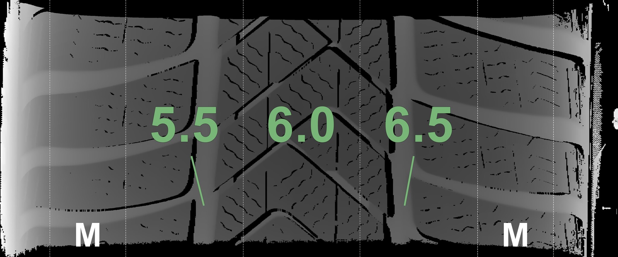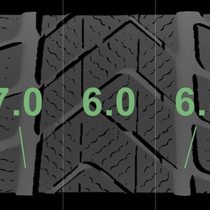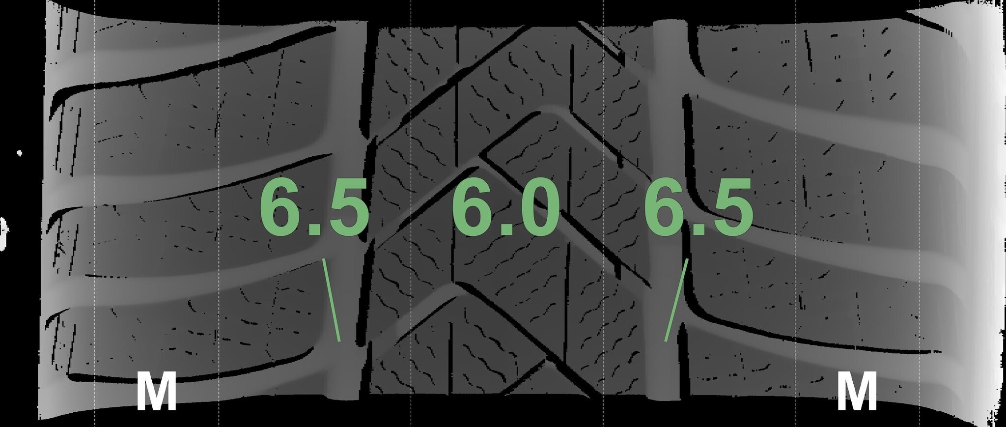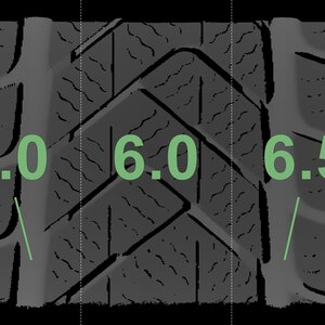 The measured tread depths and the details of the rims are shown above.