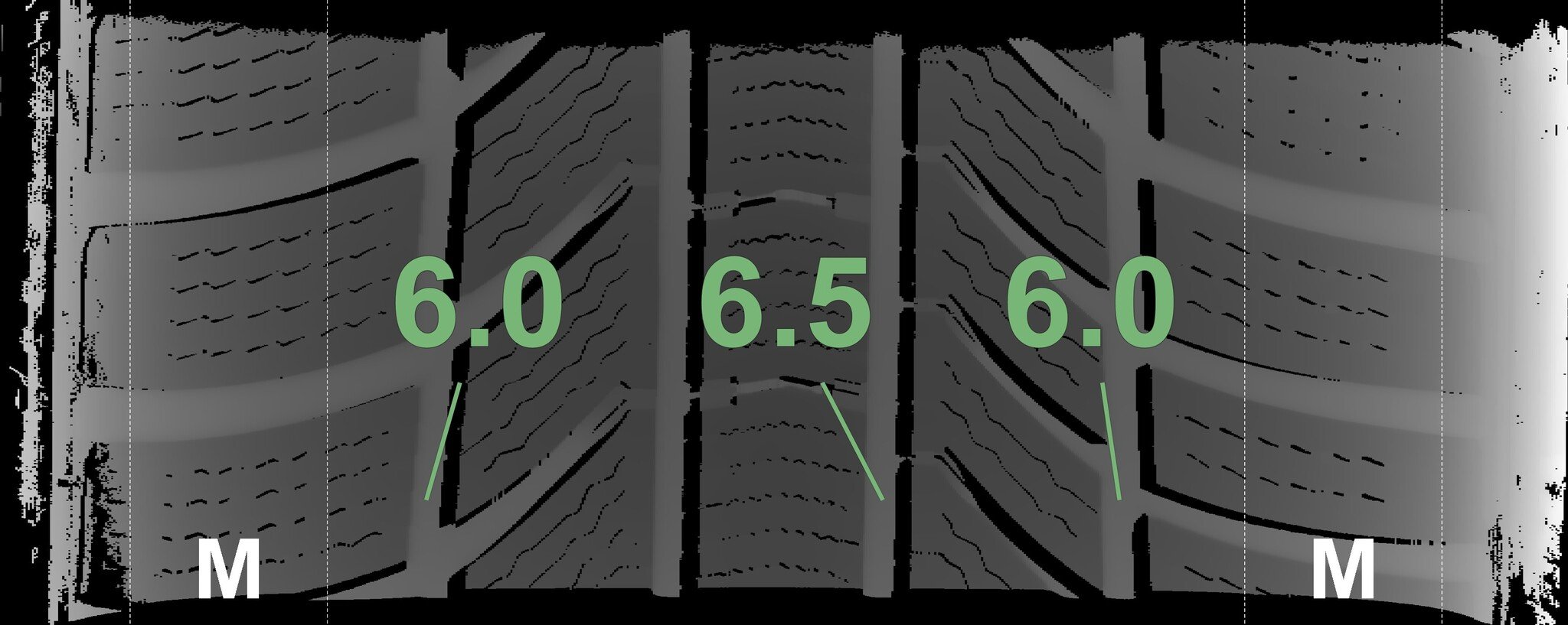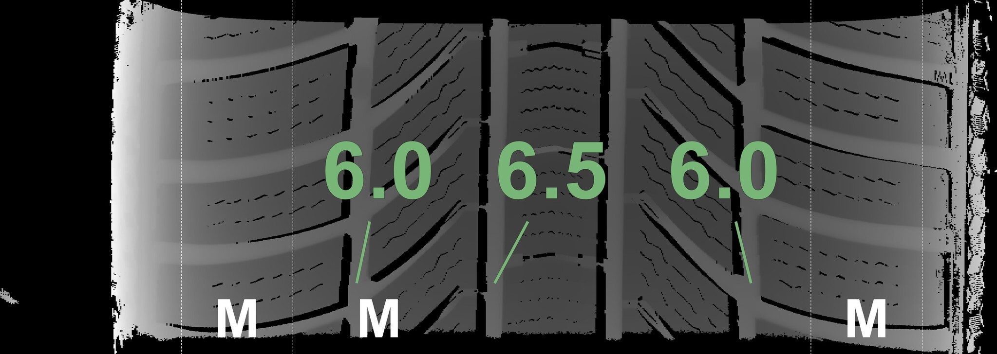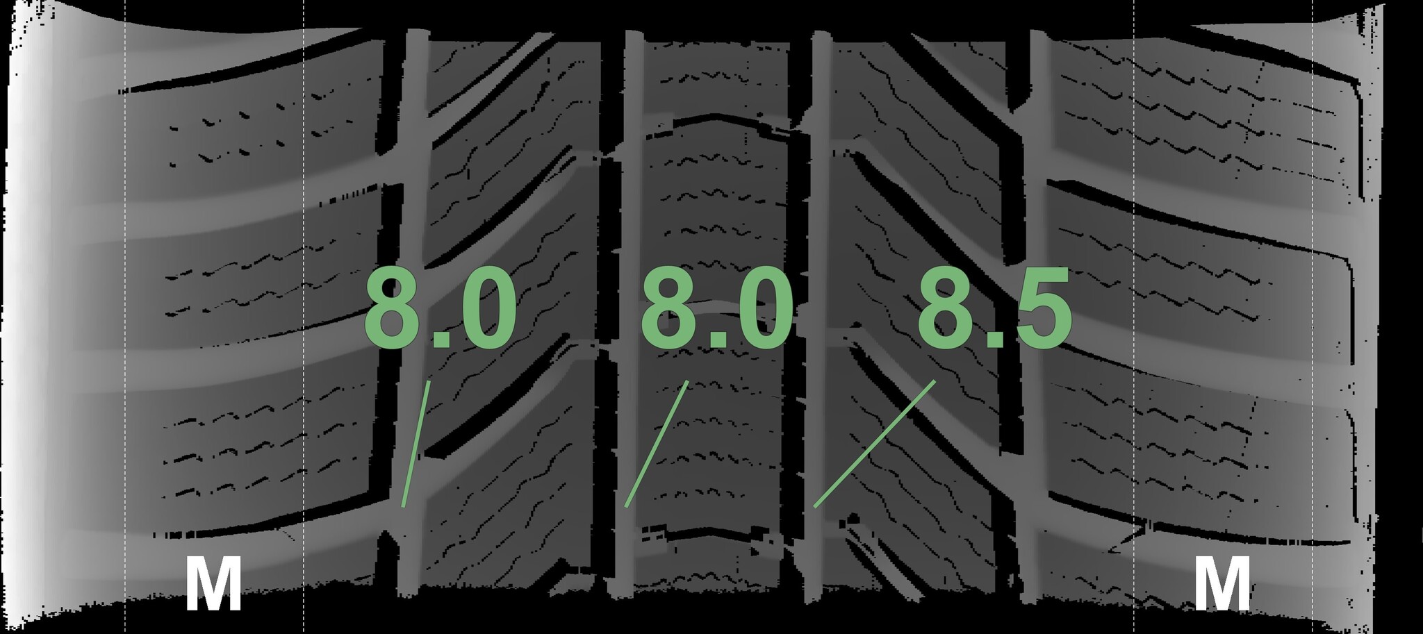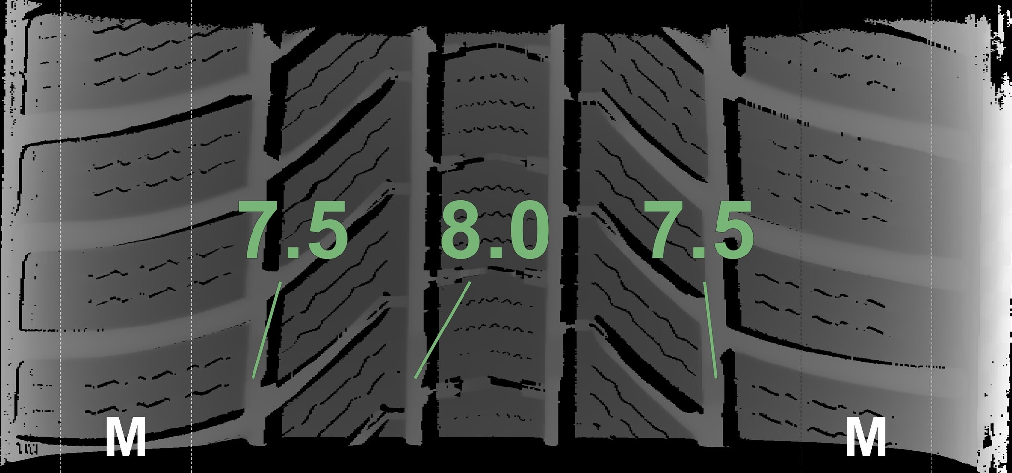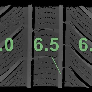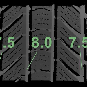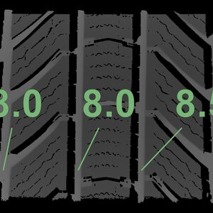 The measured tread depths and the details of the rims are shown above.