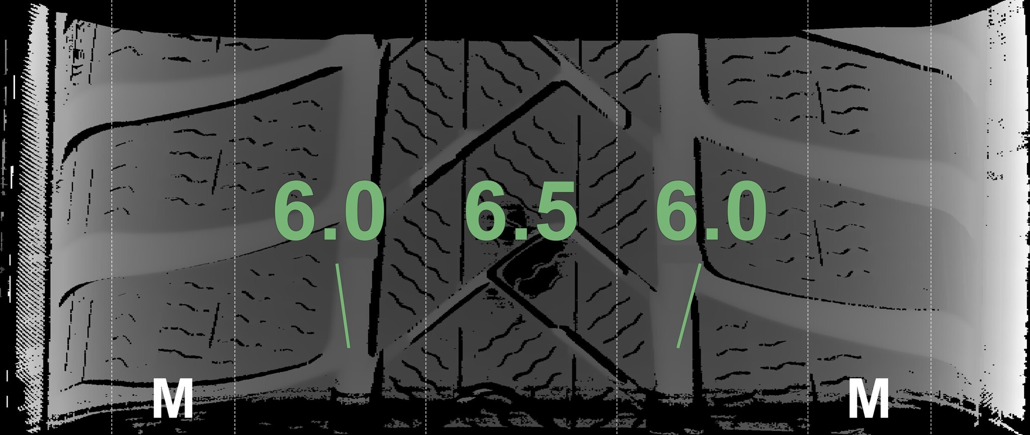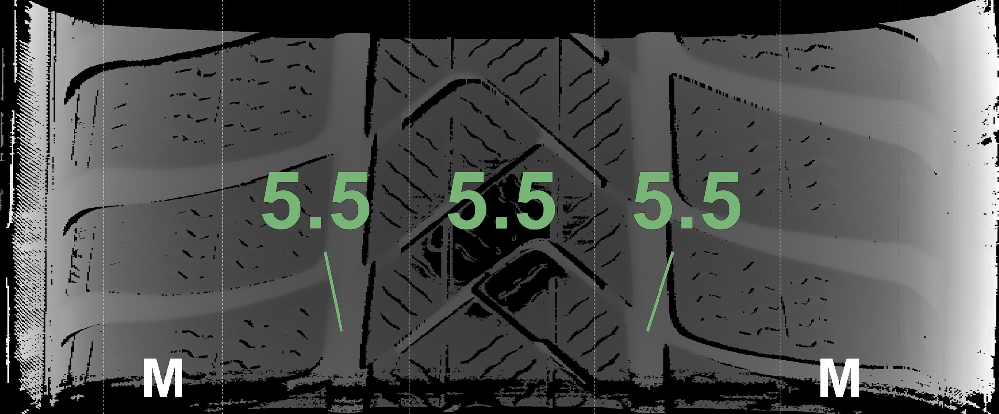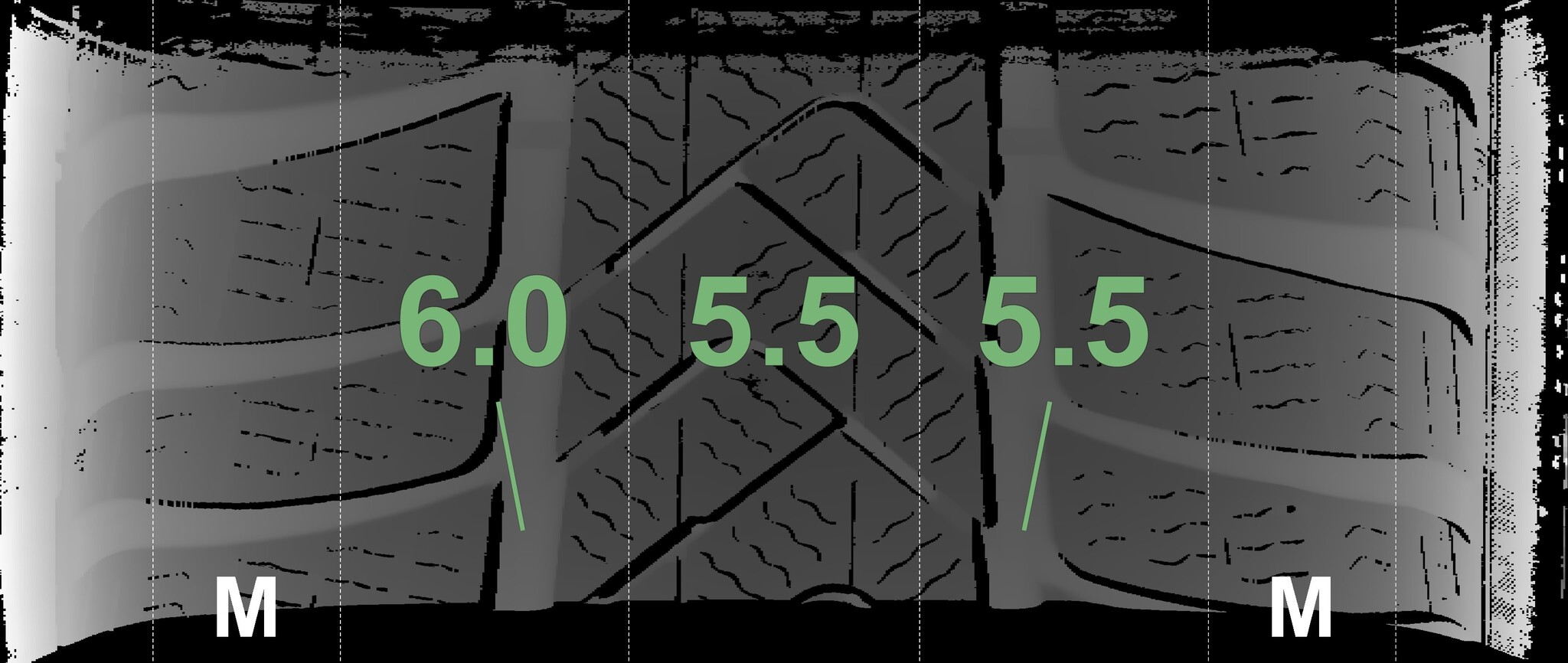 | Condition | Profile depth | DOT | Front Left | Used | 5.5 mm | 3018 |