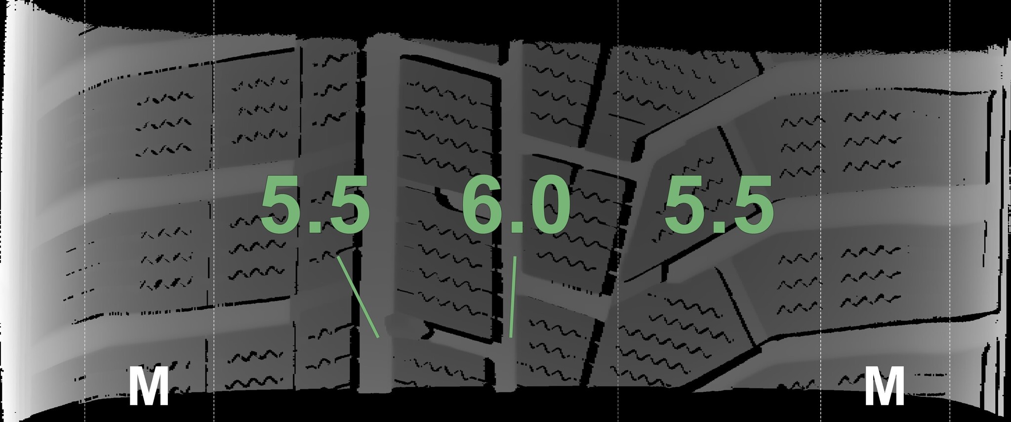 | Condition | Profile depth | DOT | Front Left | Used | 6.5 mm | 4523 |