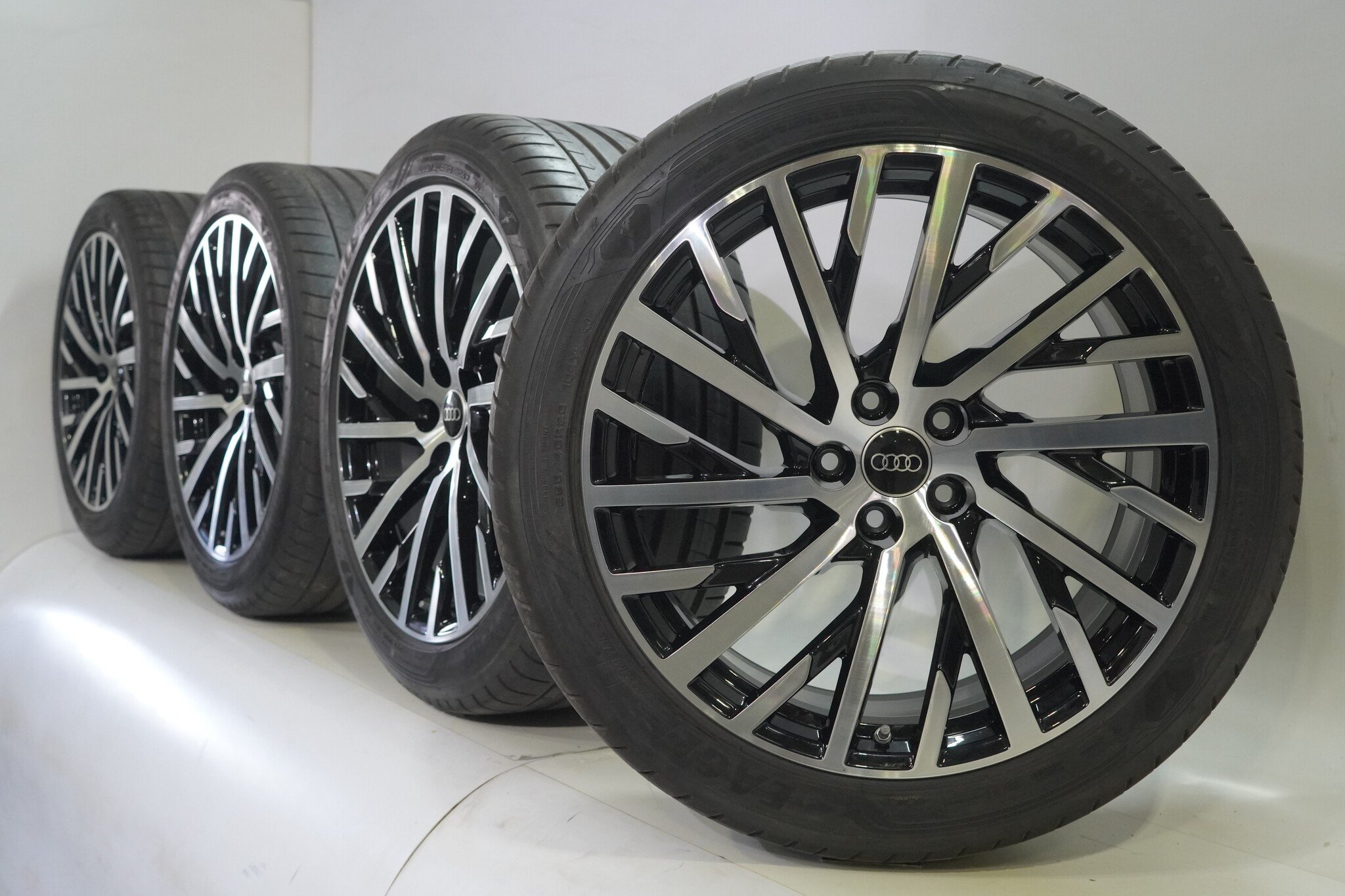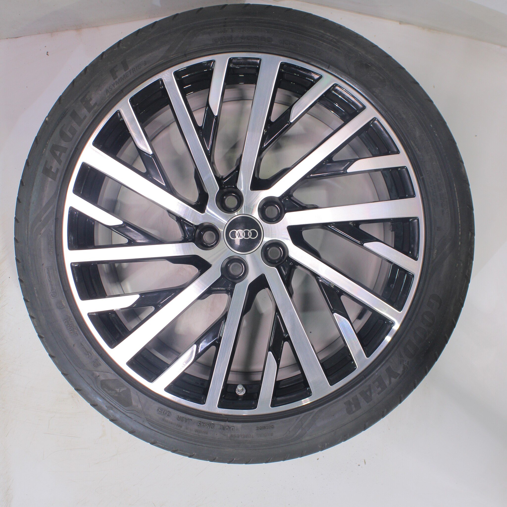 Original wheel set from Audi, 20 inch rims with Goodyear Eagle F1 Asymmetric 3 summer tires. These rims are original rims from the Audi brand and suitable for: Audi A8 S8 4N.