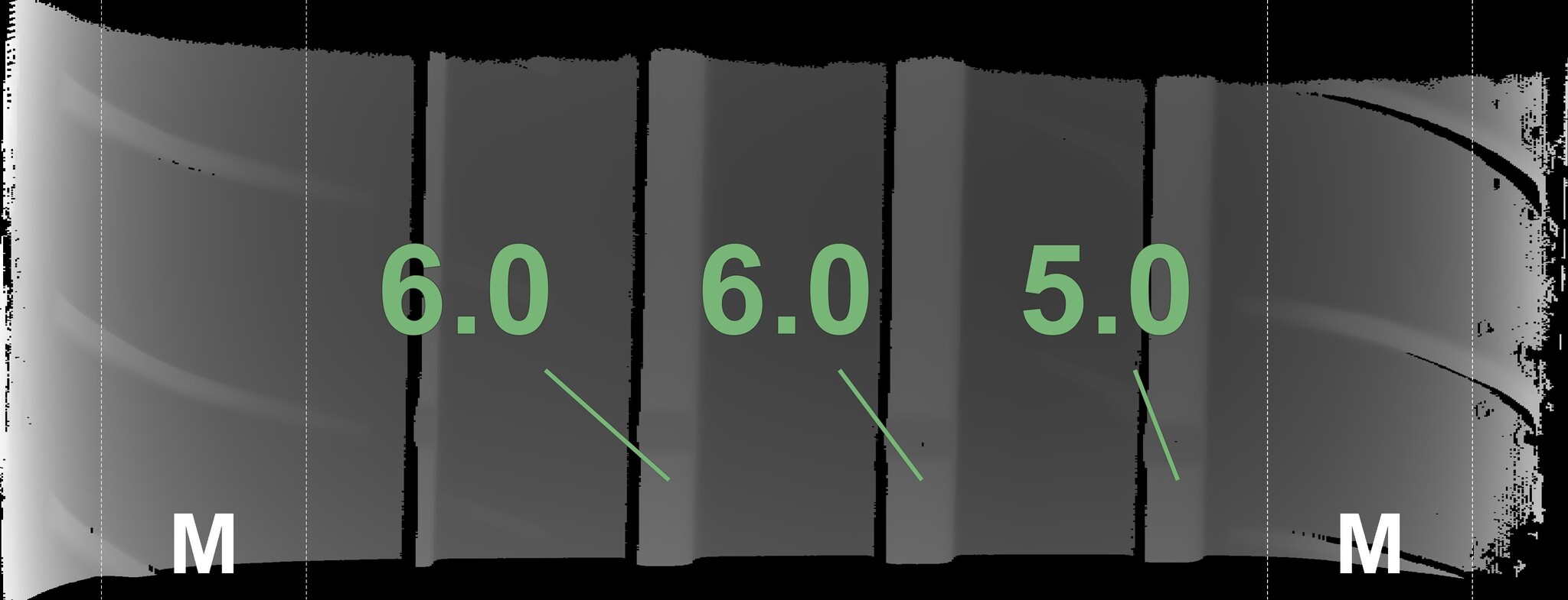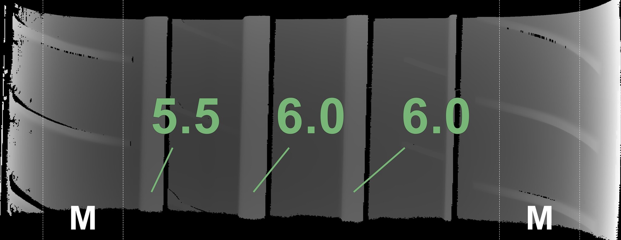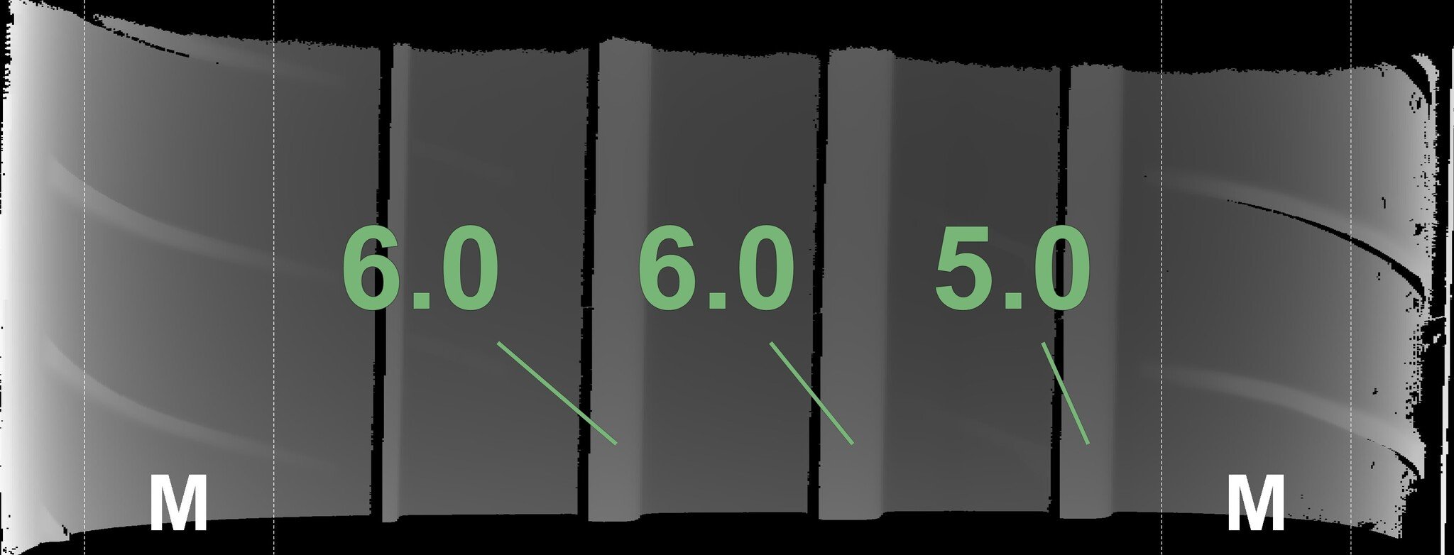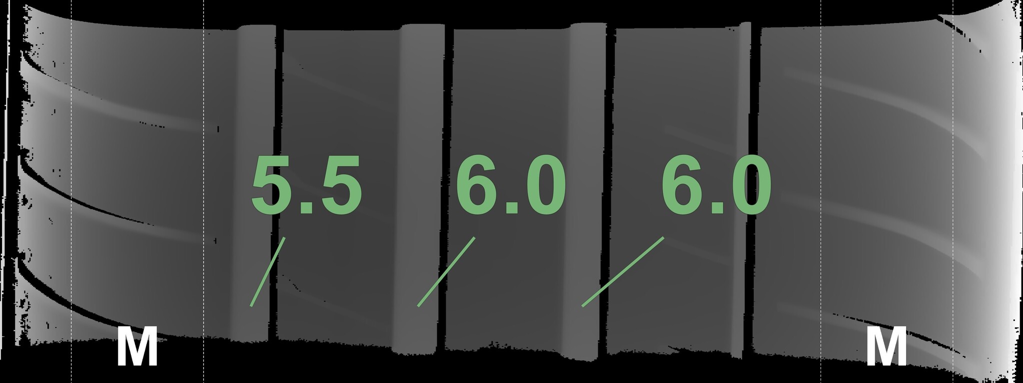 The measured tread depths and the details of the rims are shown above.