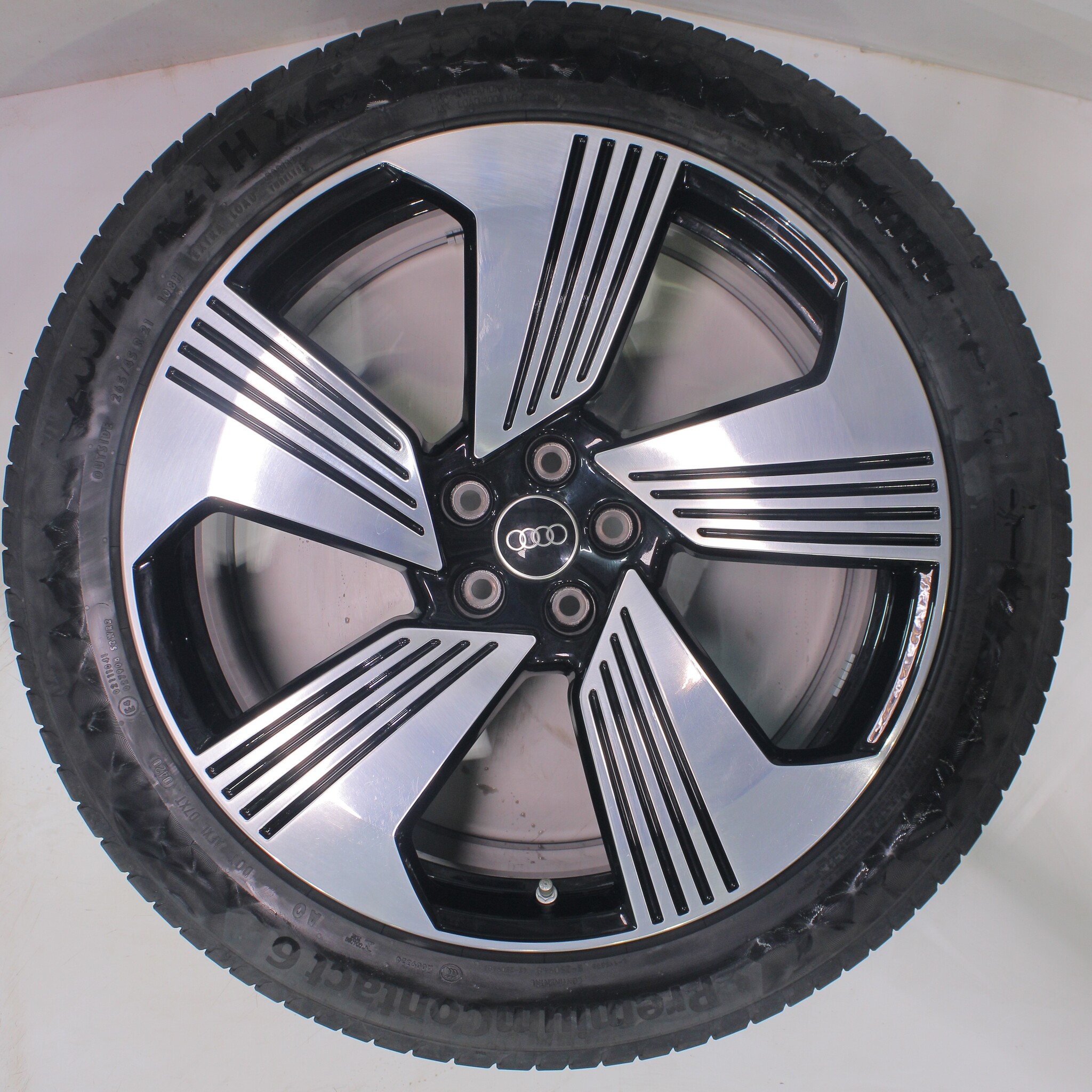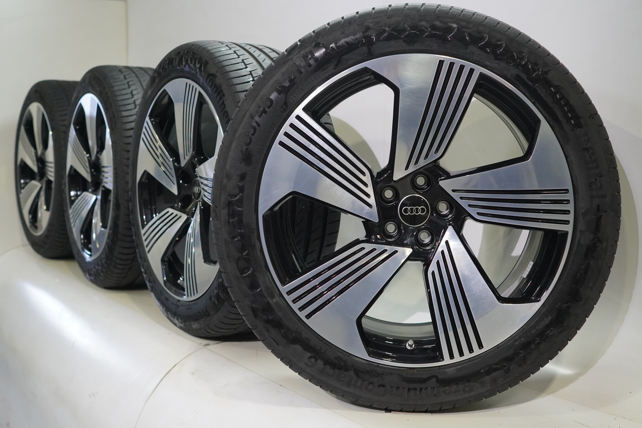 Original wheel set from Audi, 21-inch rims with Continental PremiumContact 6 summer tires. These rims are original Audi brand rims and suitable for: Audi e-tron GE Q8 e-tron.