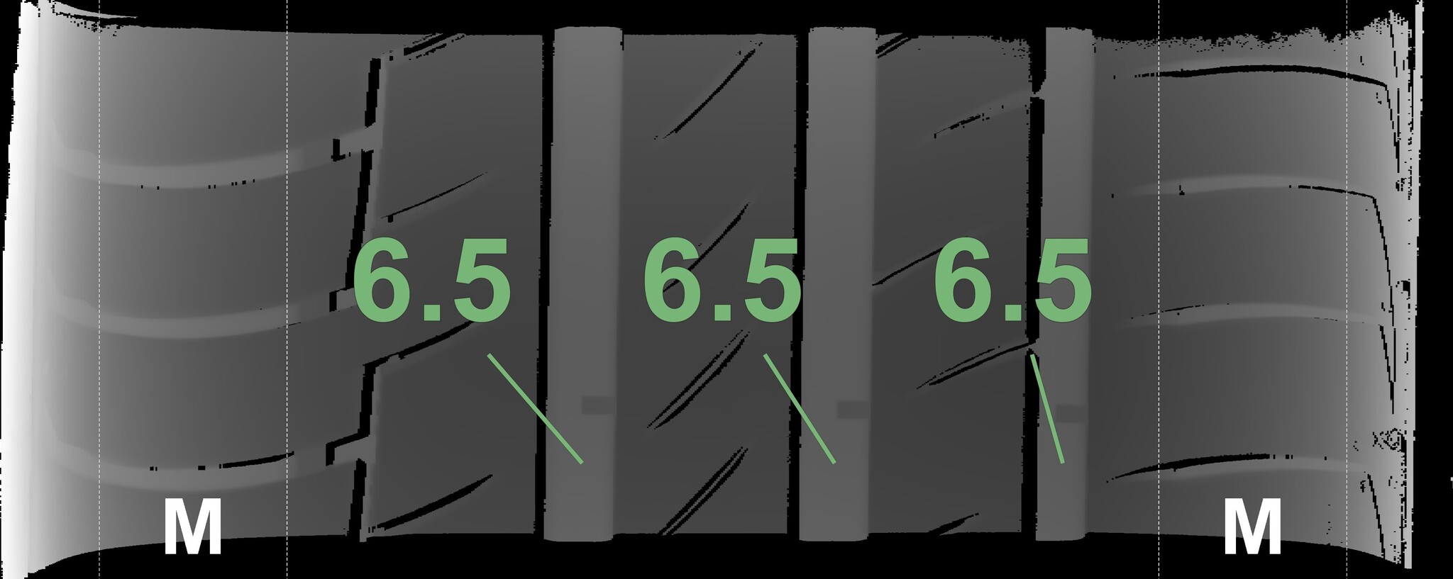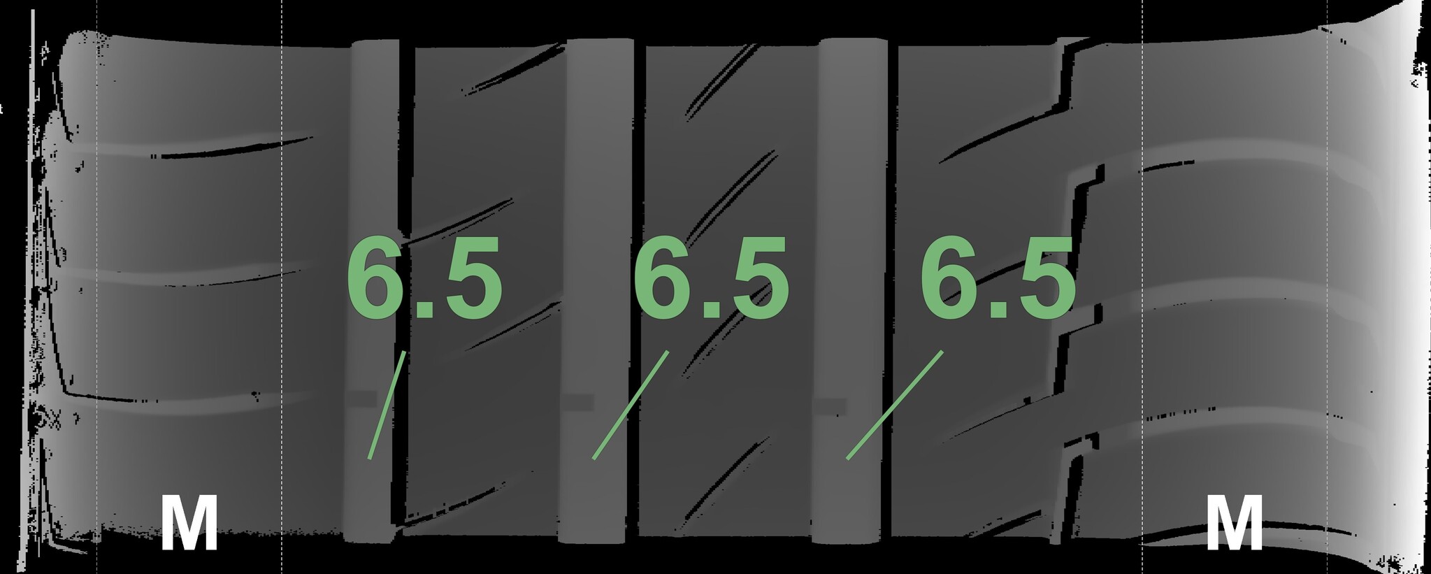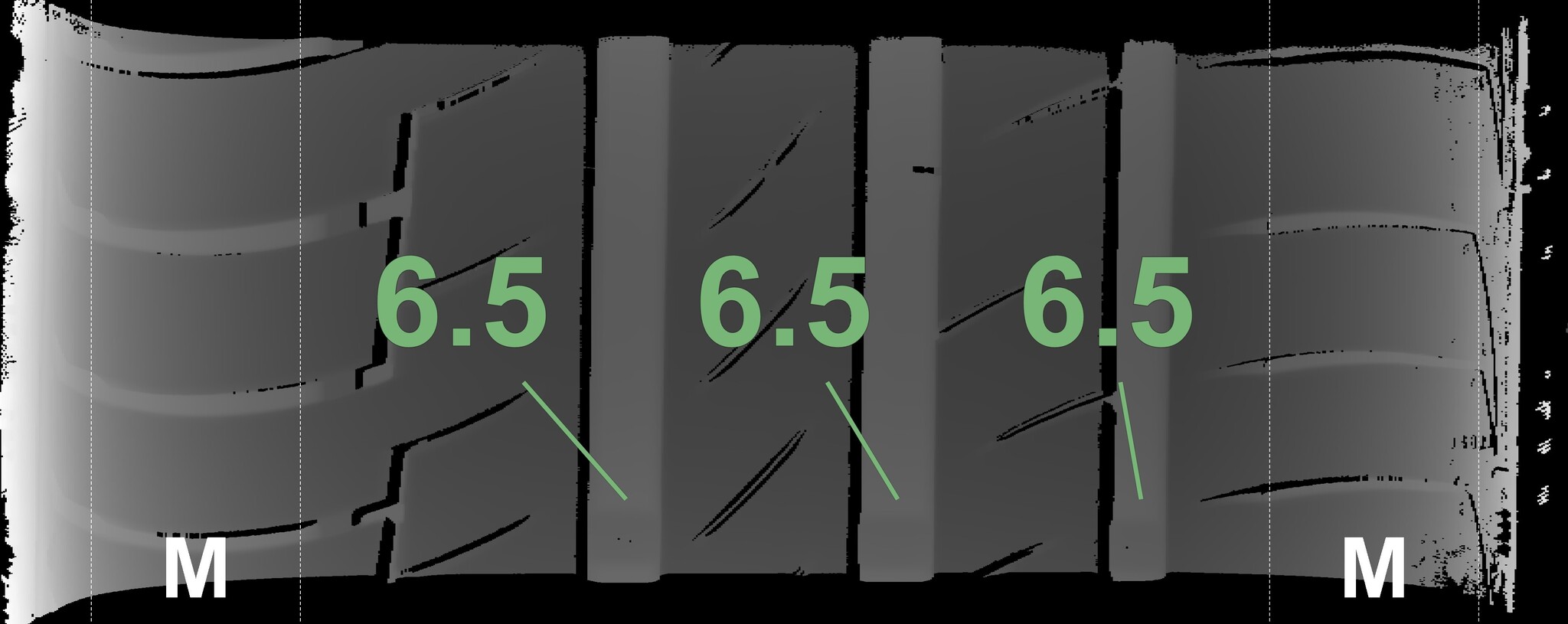 The measured tread depths and the details of the rims are shown above.