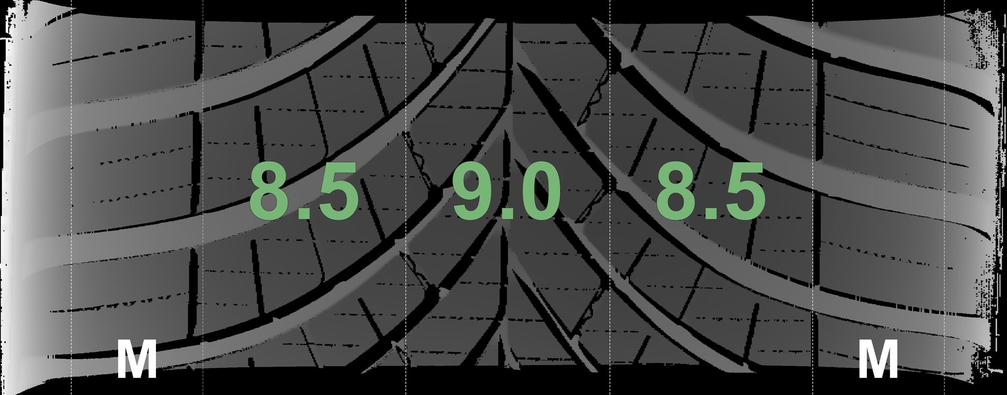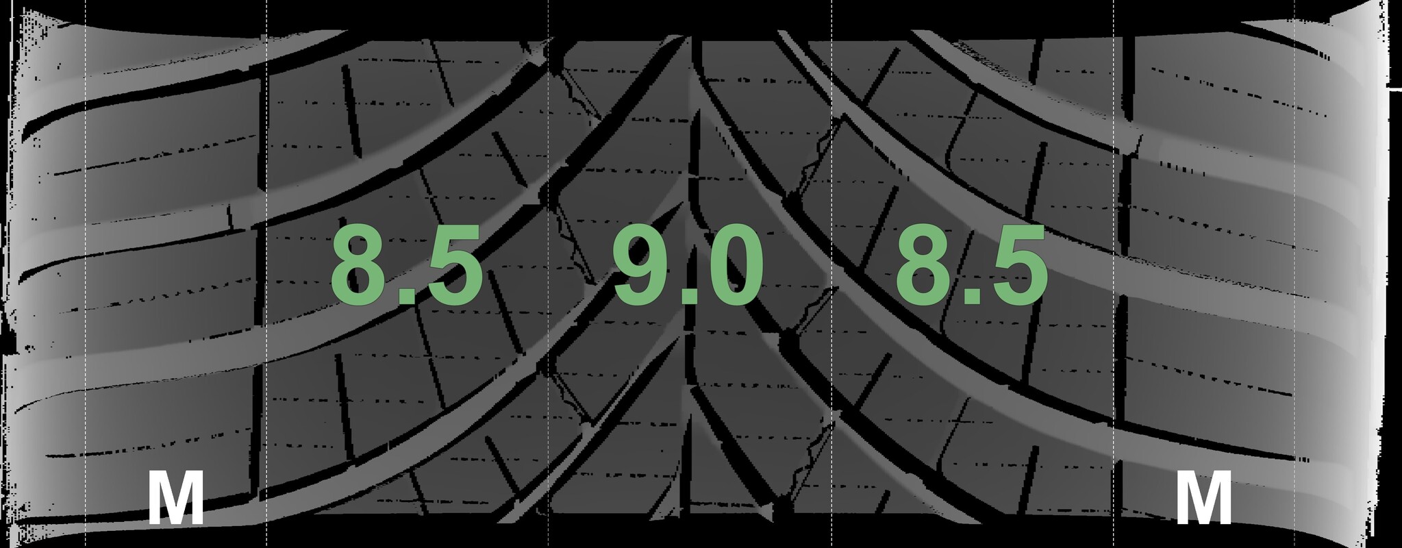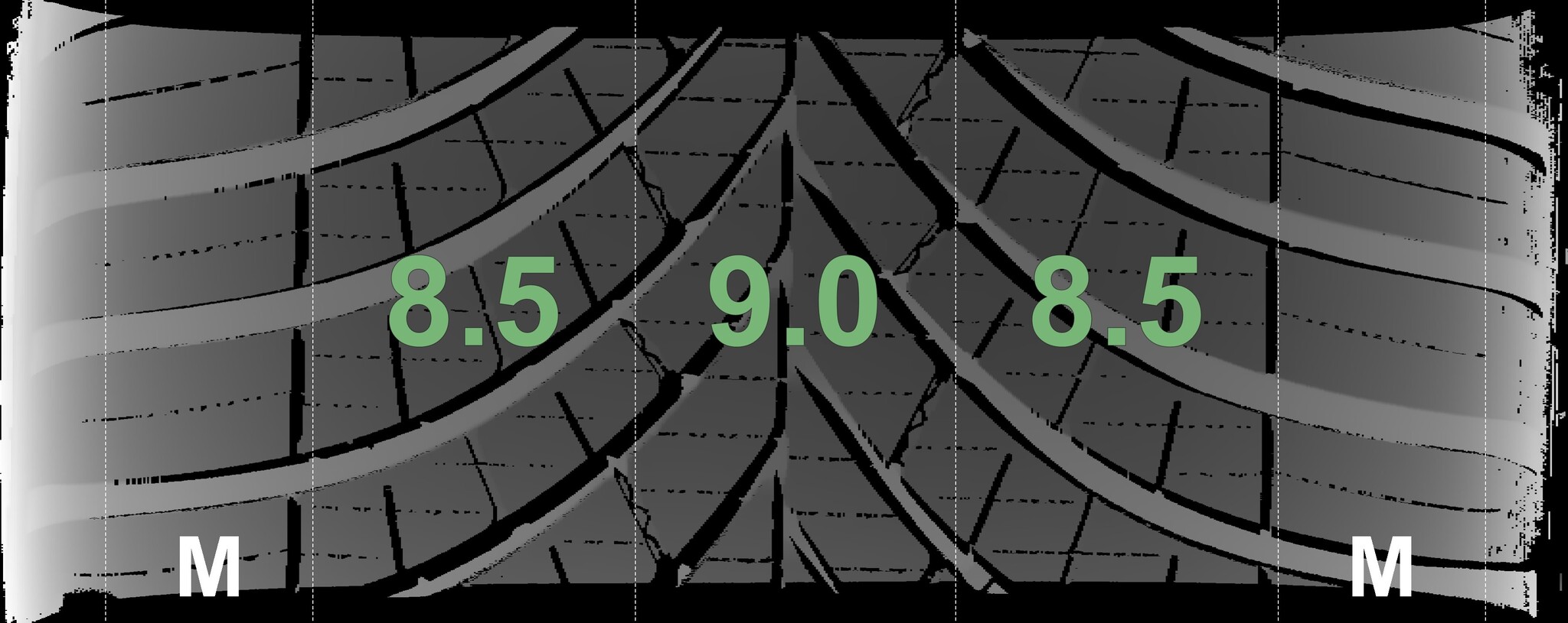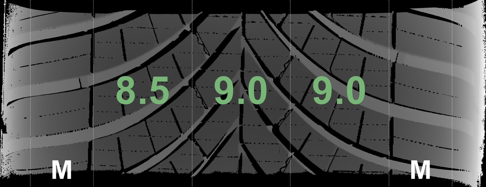 The measured tread depths and the details of the rims are shown above.