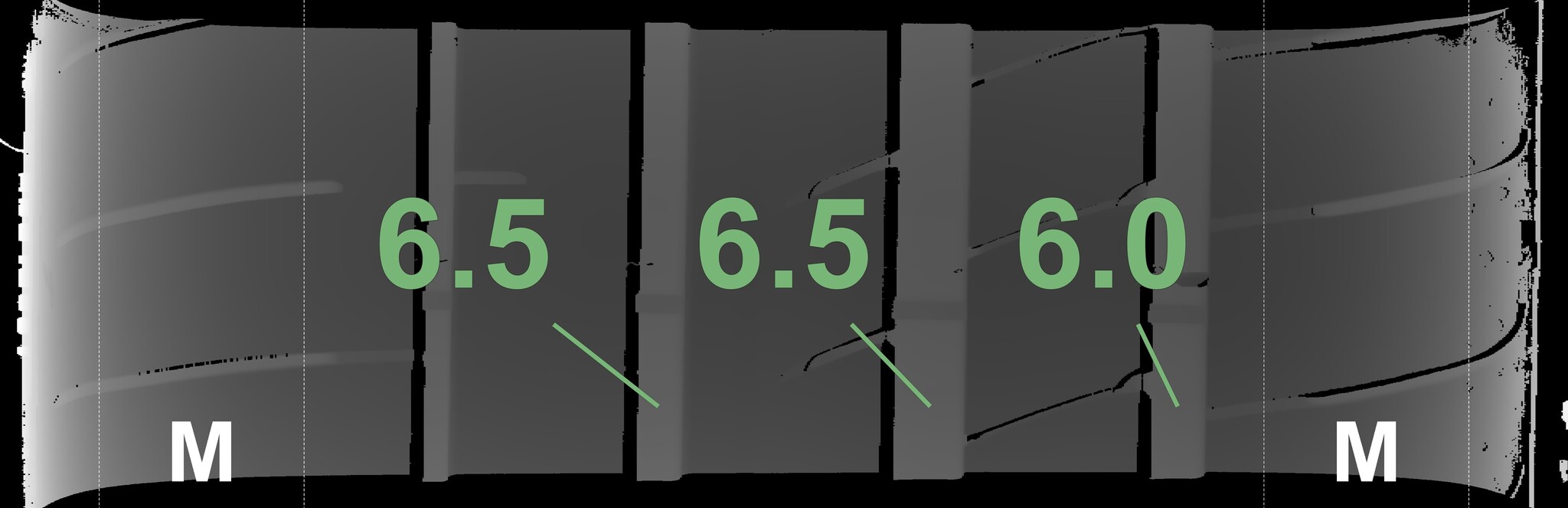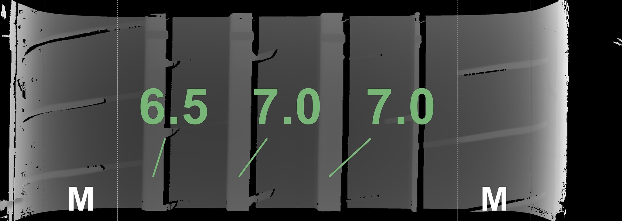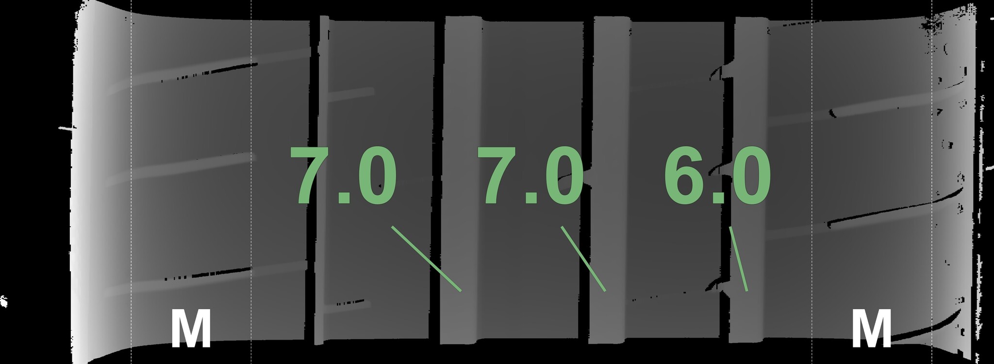| Condition | Profile depth | DOT | Front Left | Demo nubs still visible | 6.7 mm | 4723 |