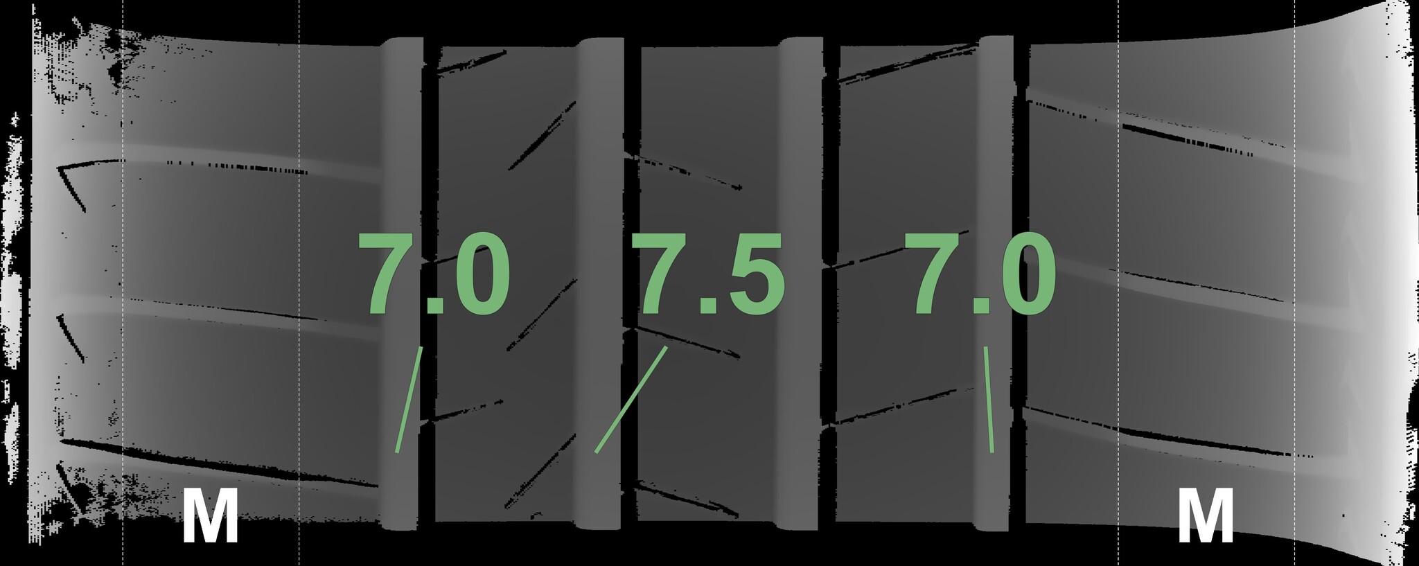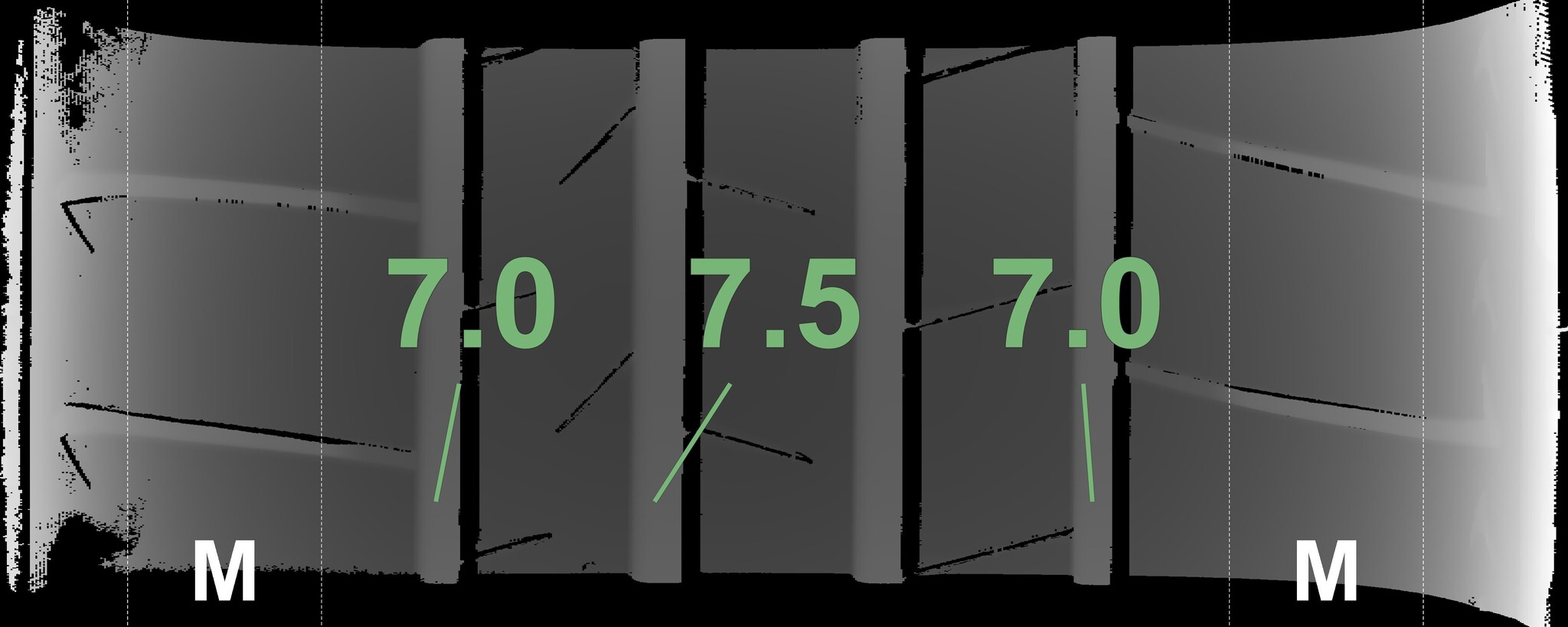 Condition | Profile depth | DOT | Front Right | Demo studs still visible | 7.0 mm | 3820 |