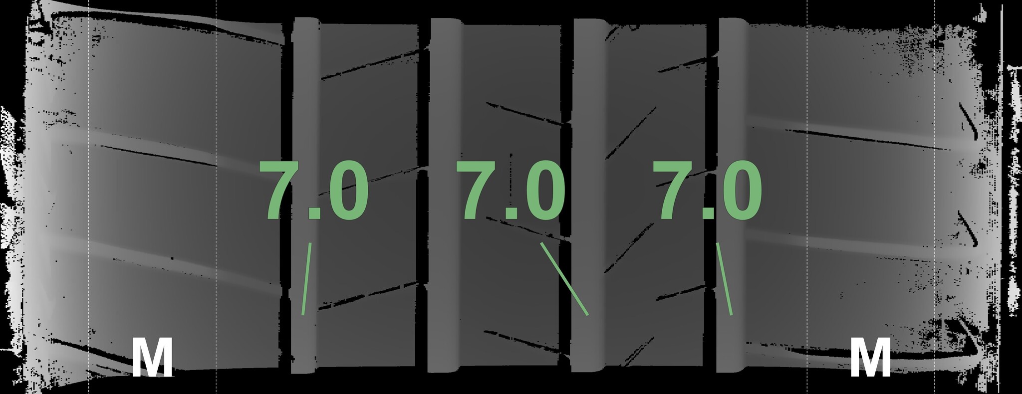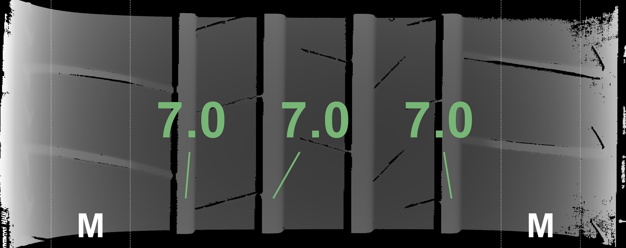 Condition | Profile depth | DOT | Front Left | Demo studs still visible | 7.0 mm | 3820 |