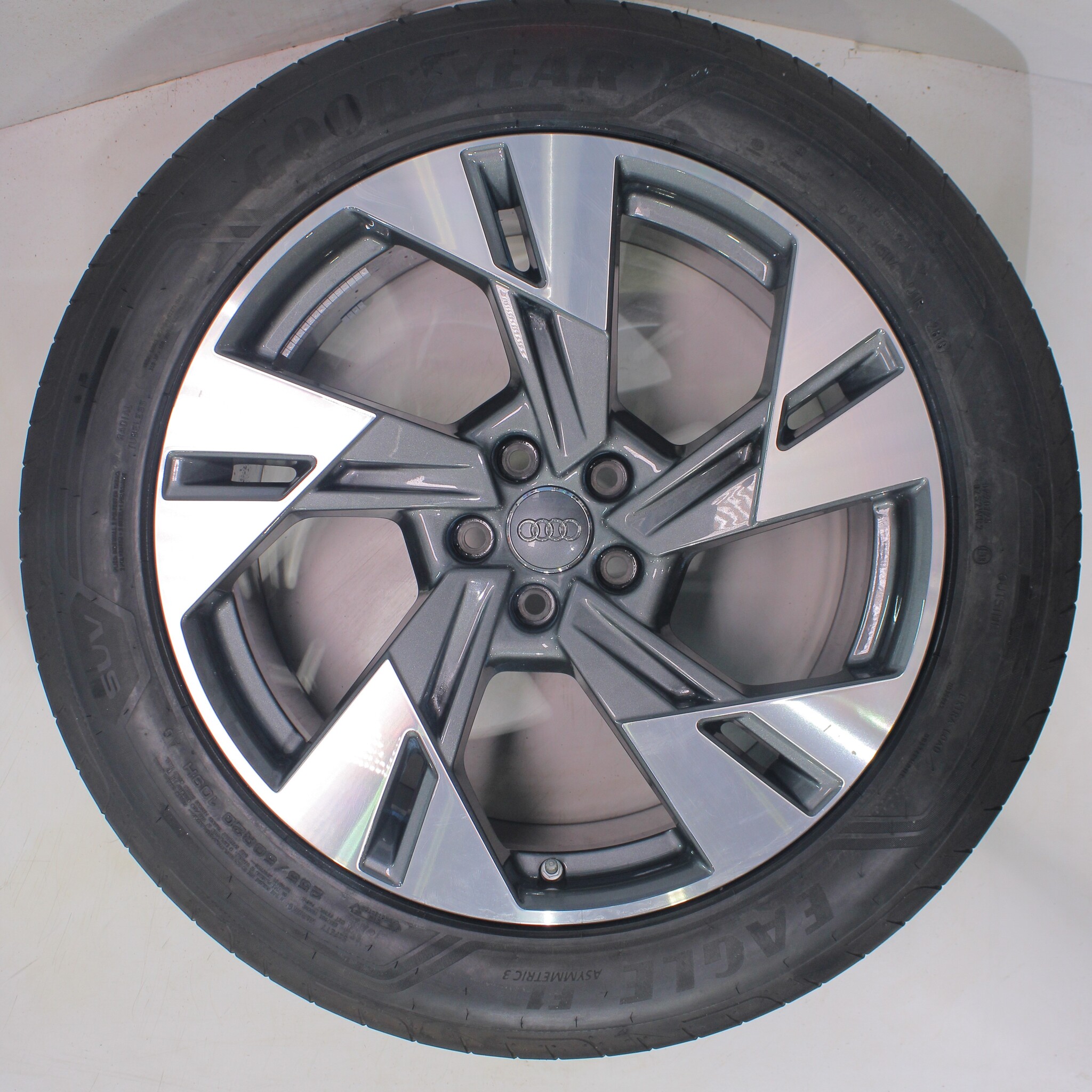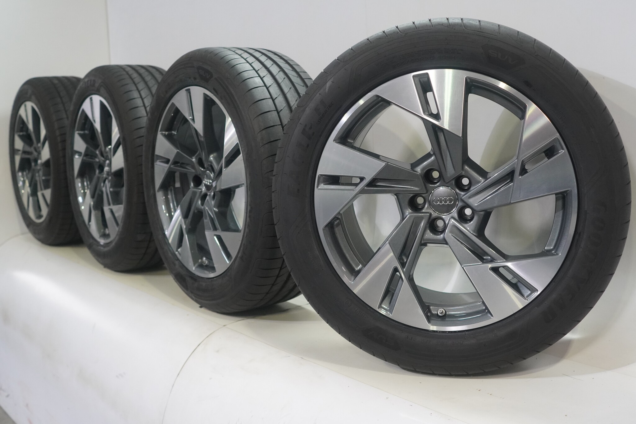 Original wheel set from Original, styling 20 inch rims with Goodyear Eagle F1 Asymmetric 3 Summer Tires. These rims are original rims of the brand Audi and suitable for: Audi Etron 4KE.