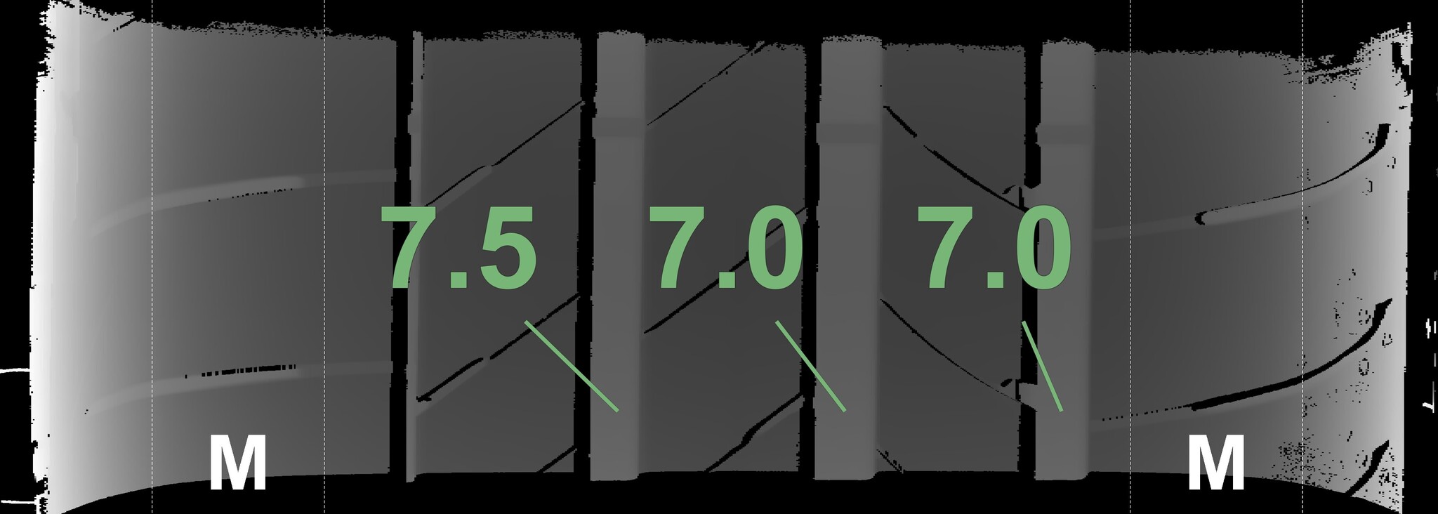 | Condition | Profile depth | DOT | Front Left | Used | 7.0 mm | 2818 |
