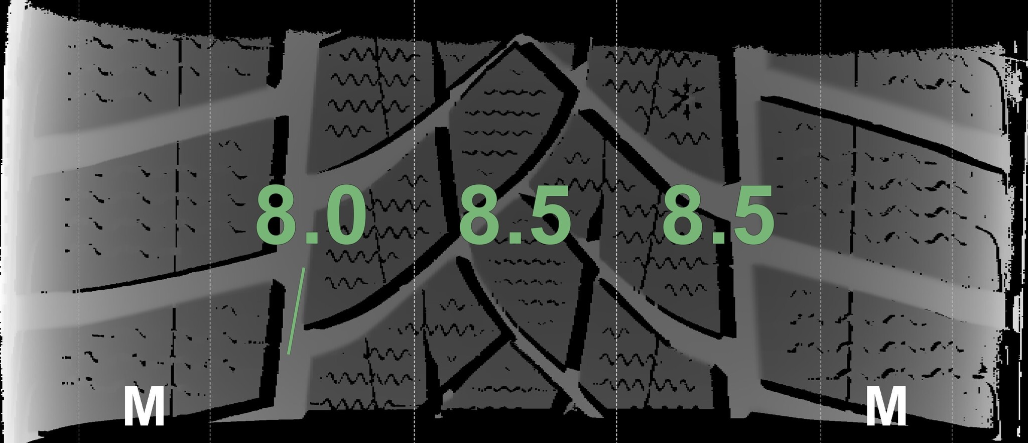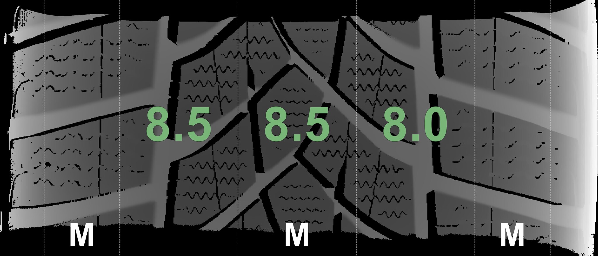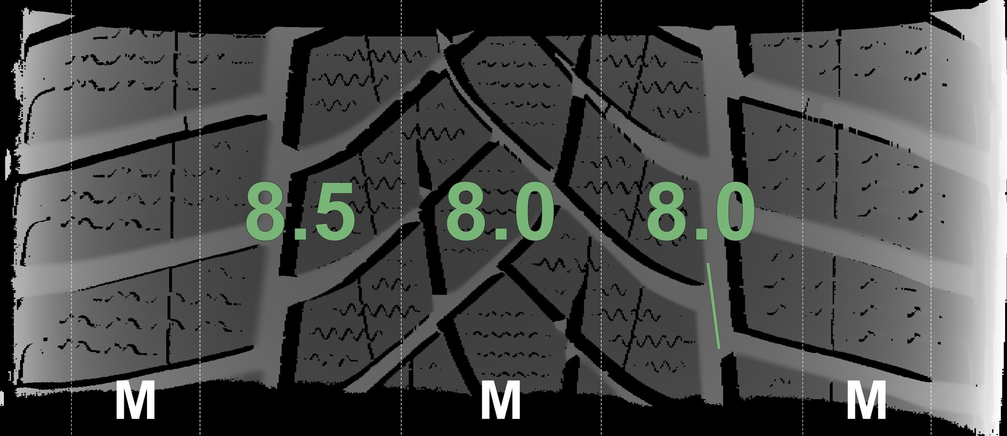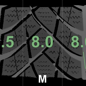 The measured tread depths and the details of the rims are shown above.
