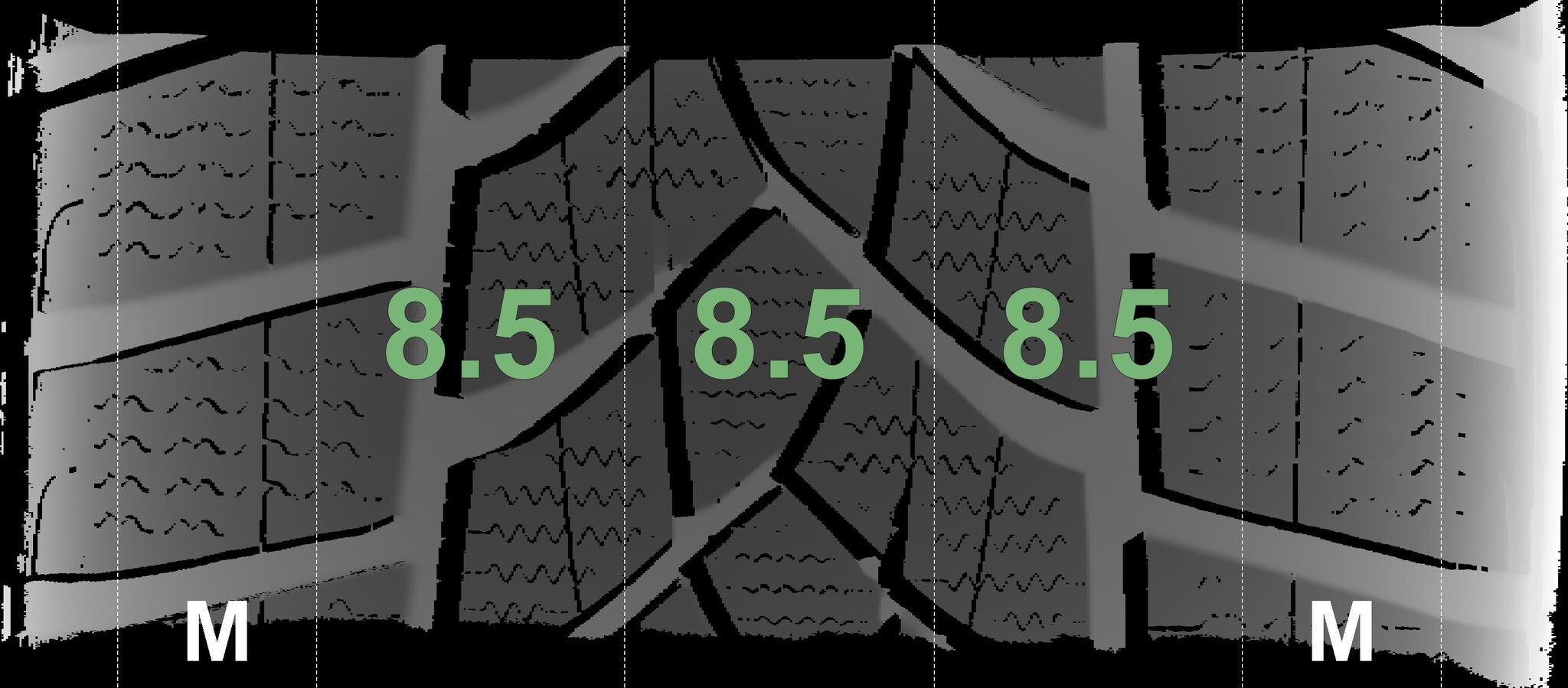 | Condition | Profile depth | DOT | Front Left | Used | 8.3 mm | 2820 |