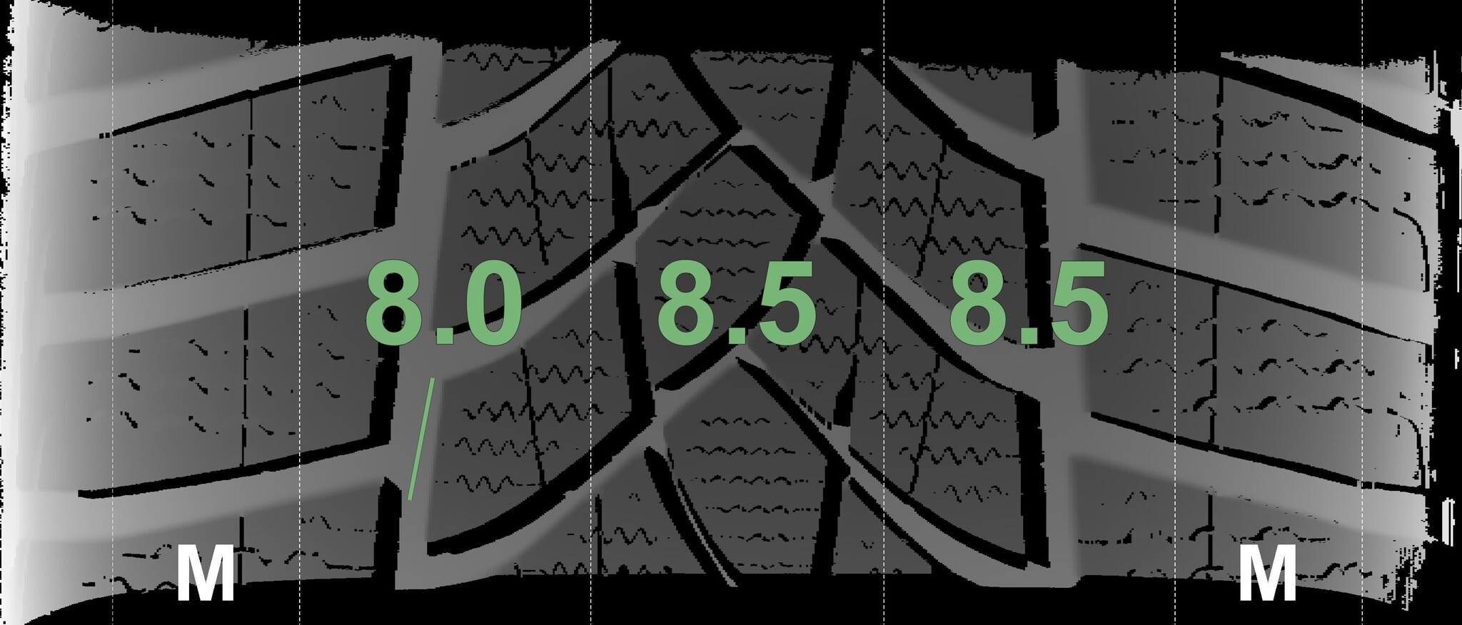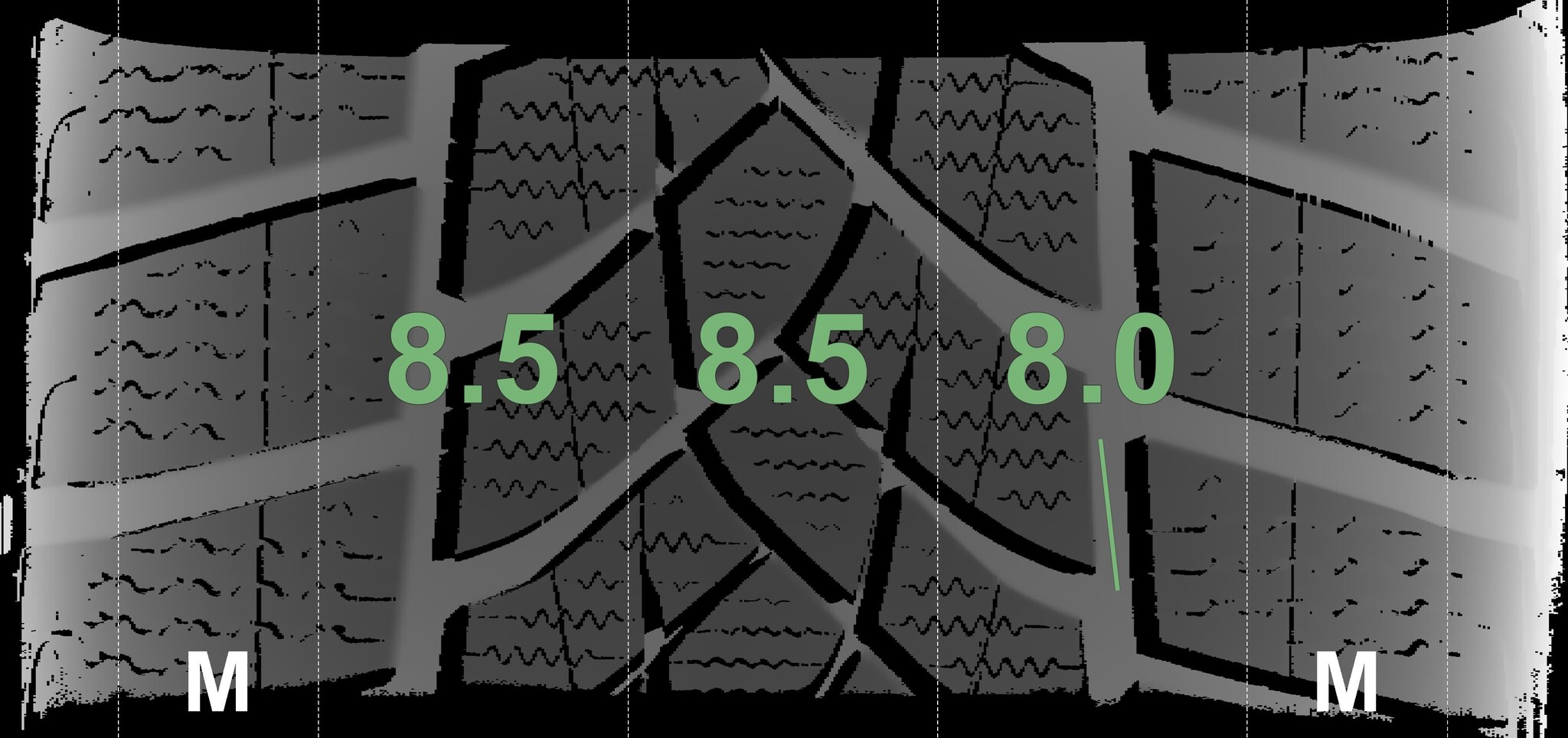 | Condition | Profile depth | DOT | Rear Left | Used | 8.0 mm | 2820 |