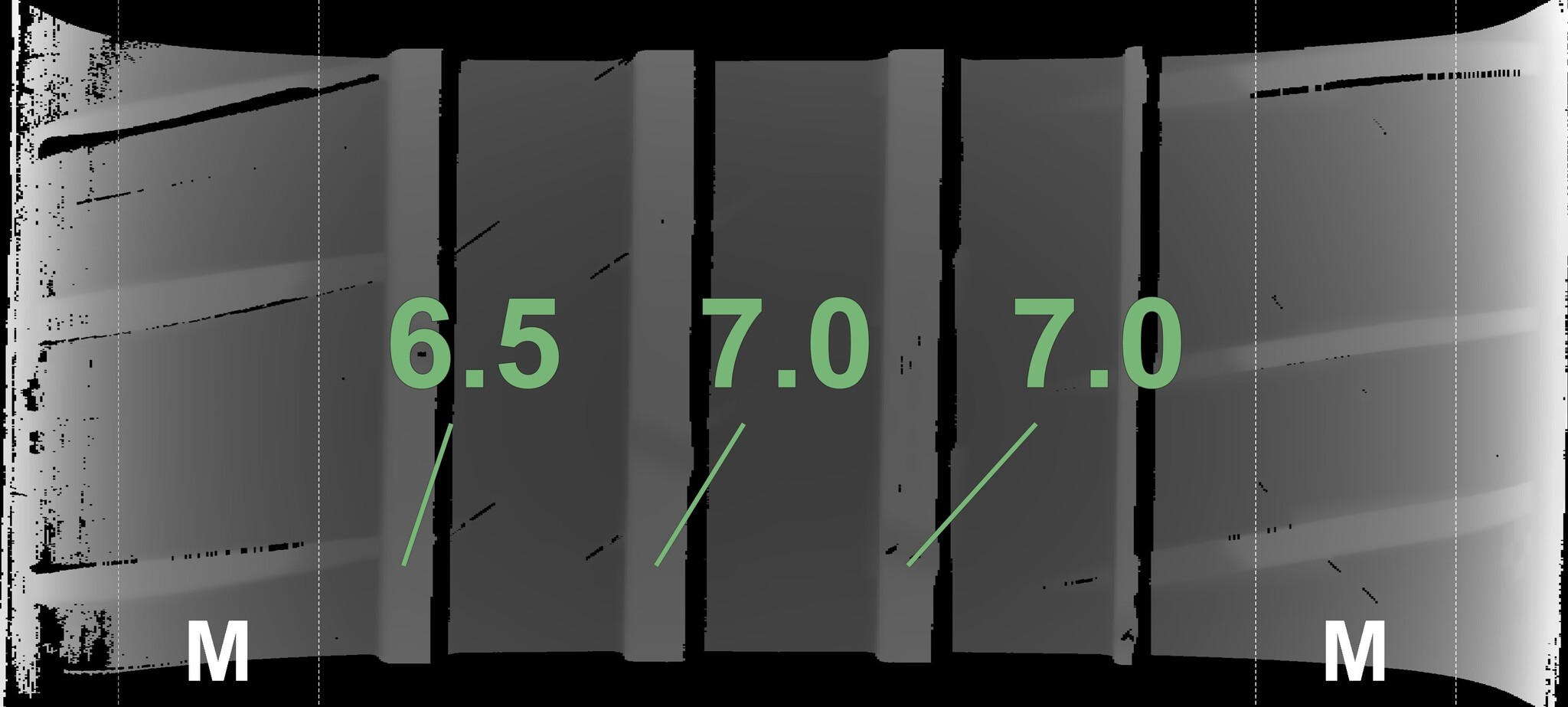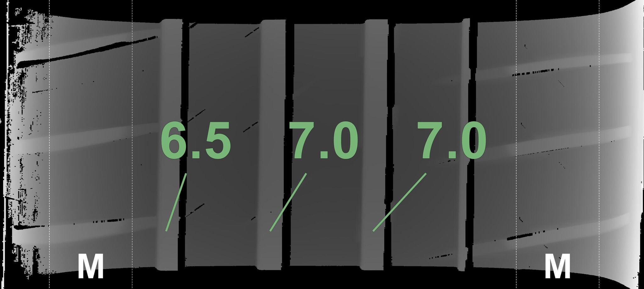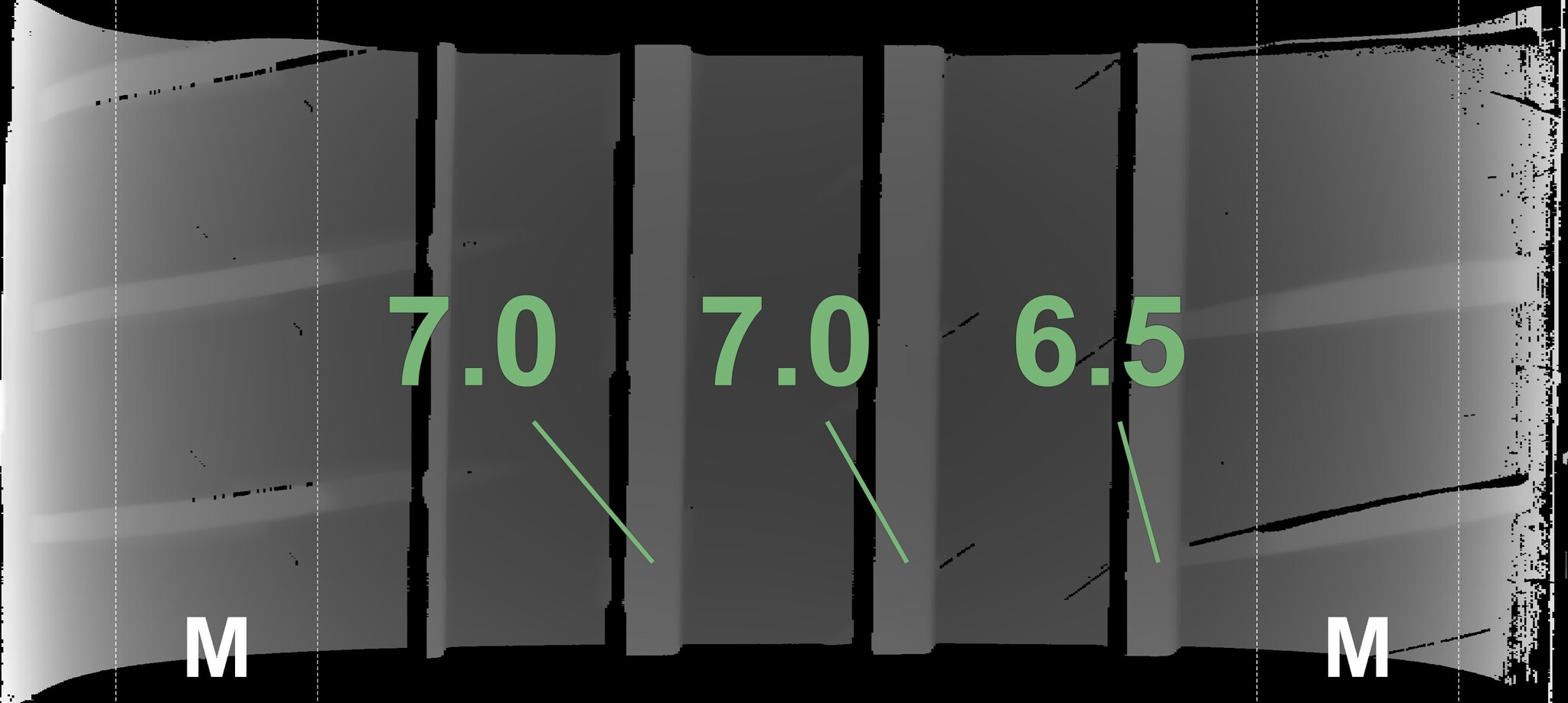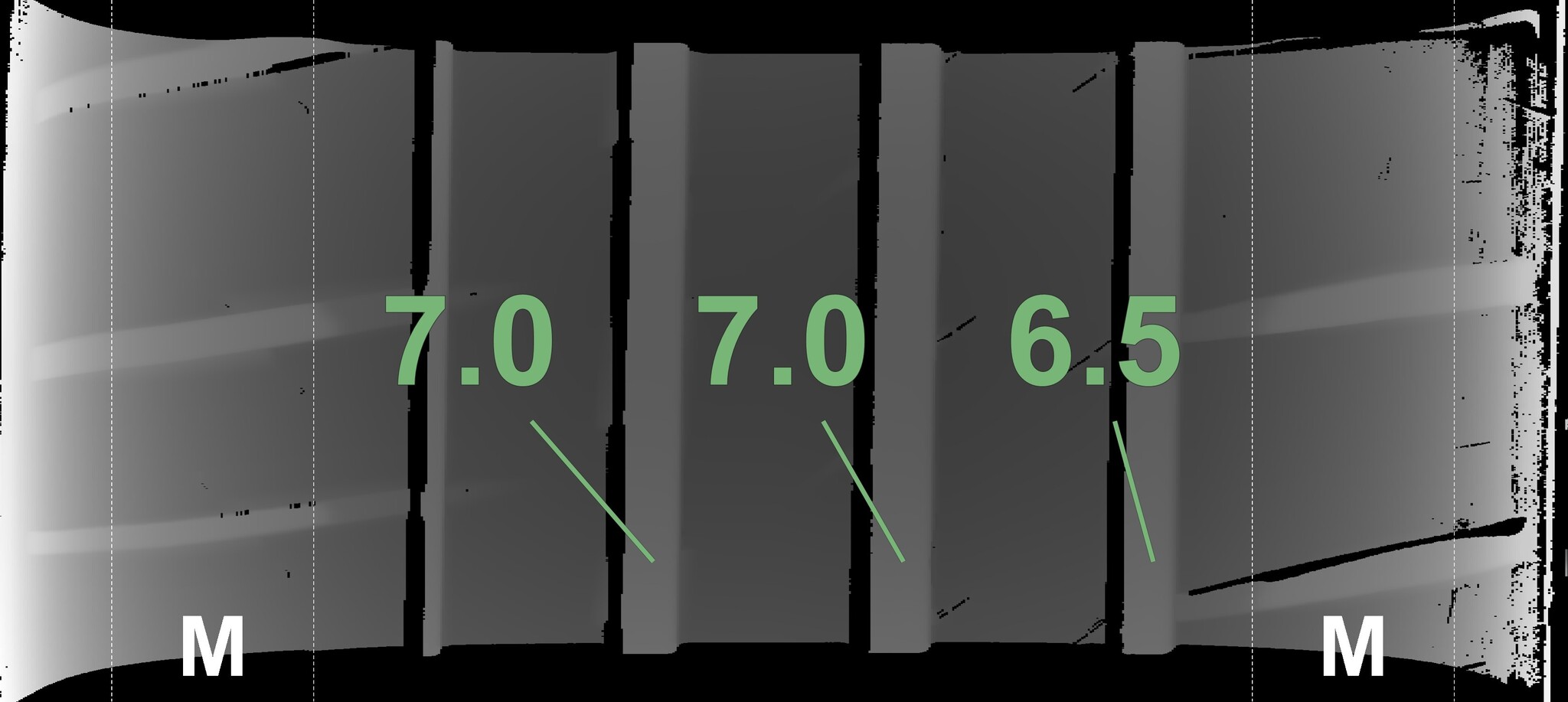 The measured tread depths and the details of the rims are shown above.