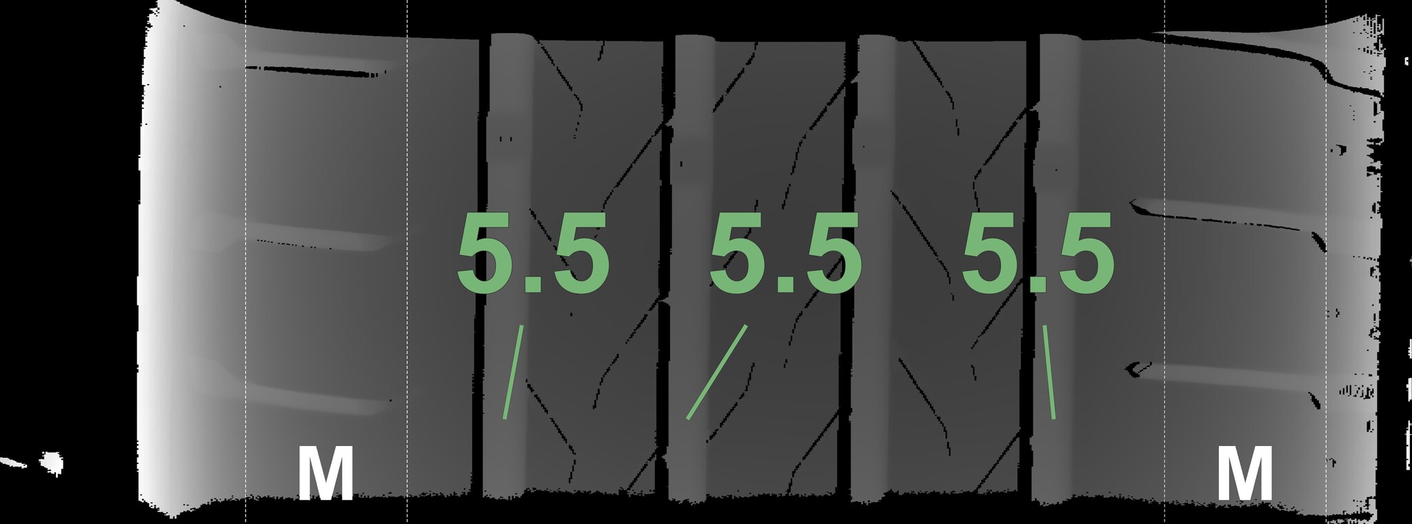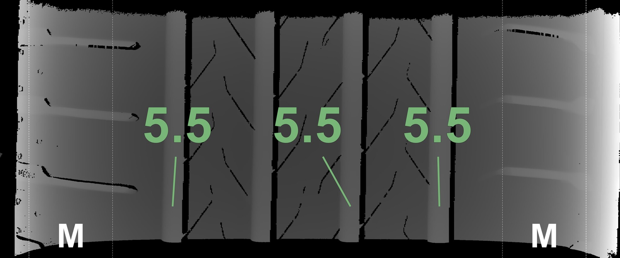 | Condition | Profile depth | DOT | Front Left | Used | 5.5 mm | 1025 |