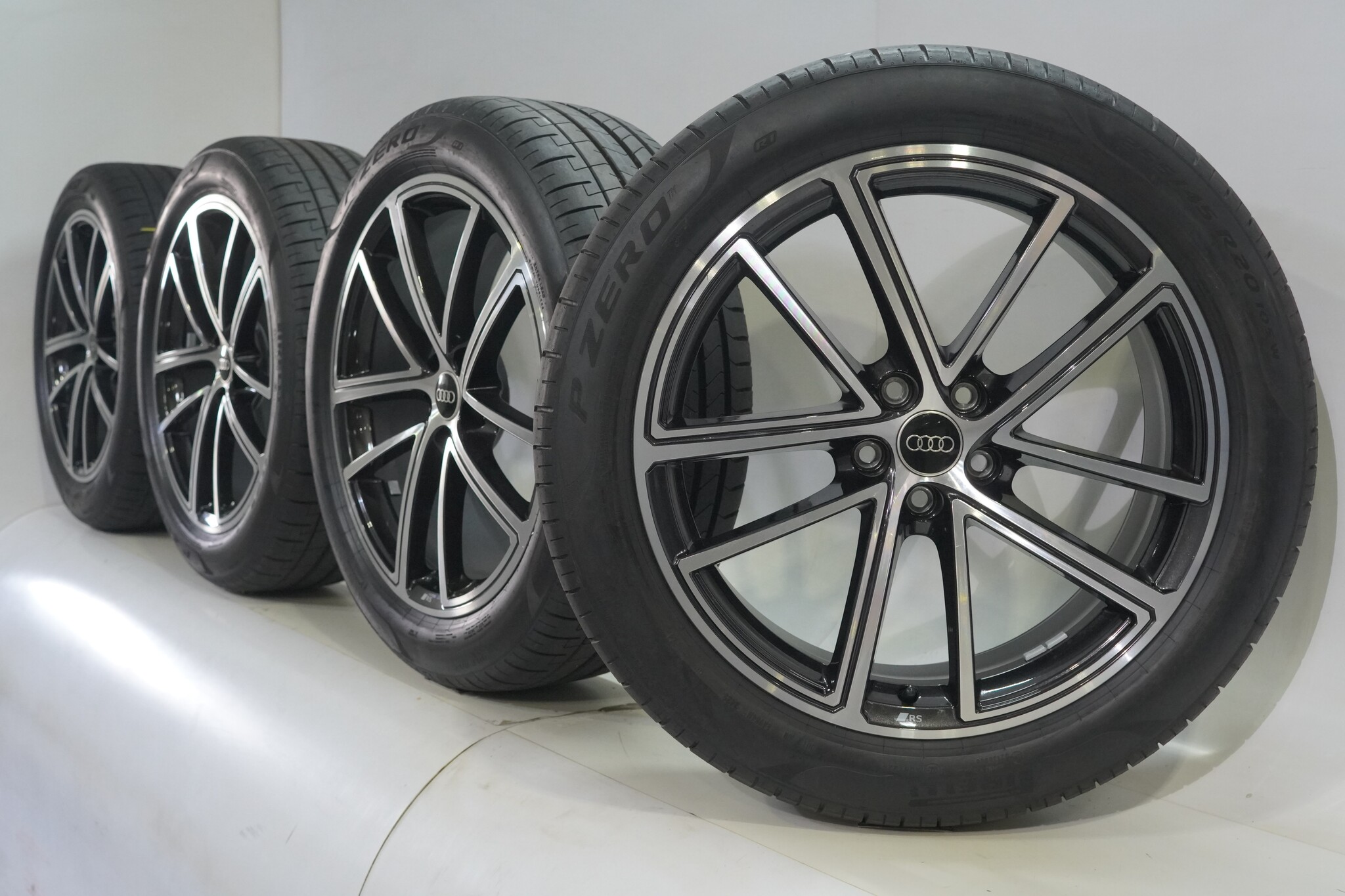 Original wheel set from Audi, S-line styling, 20 inch rims with Pirelli PZERO summer tires. These rims are original rims from the brand Audi and suitable for: Audi Q5 8MA.