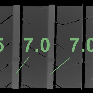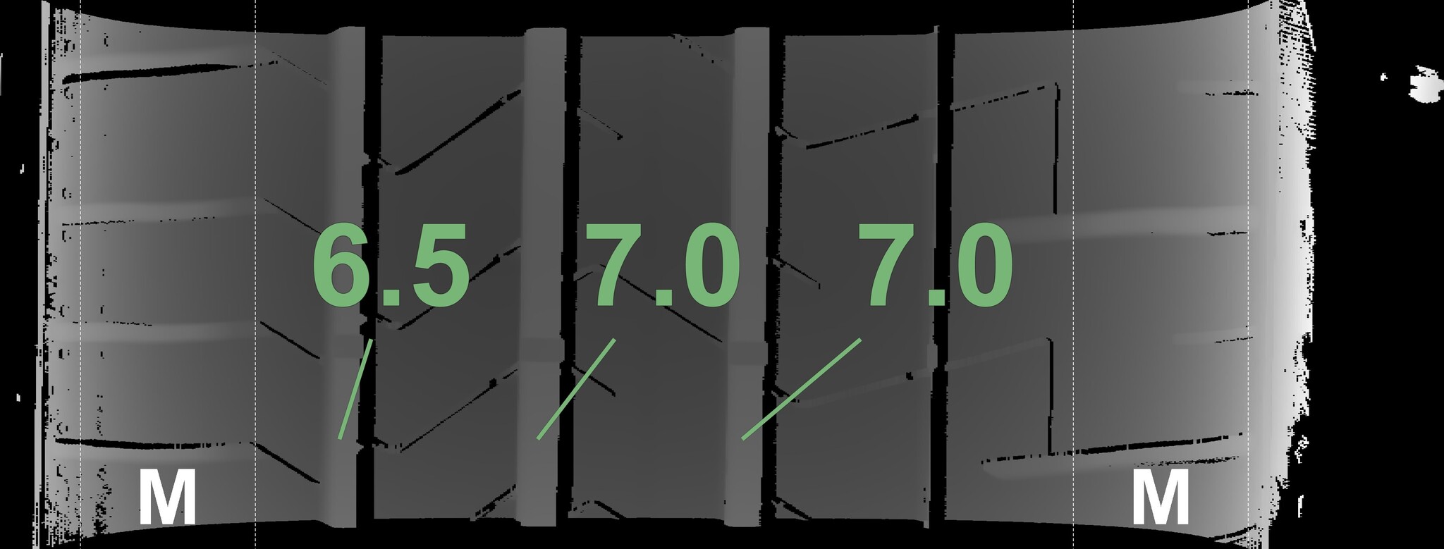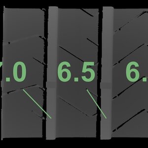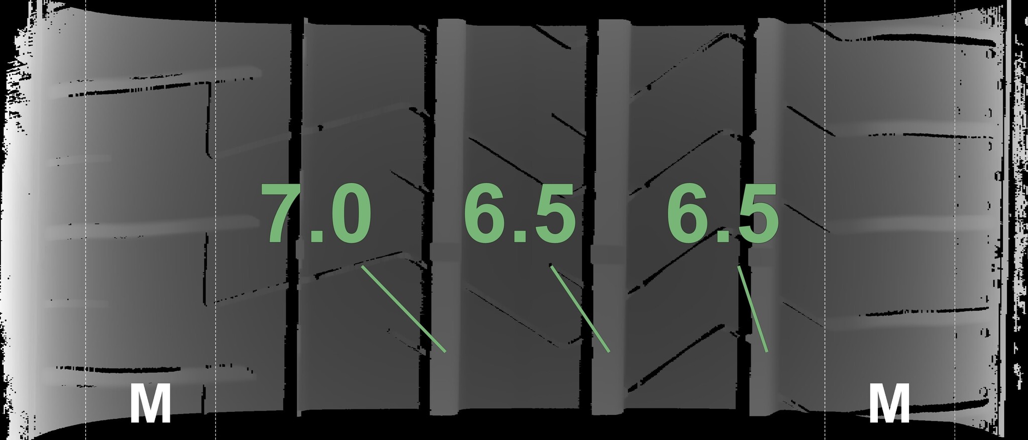 The measured tread depths and the details of the rims are shown above.