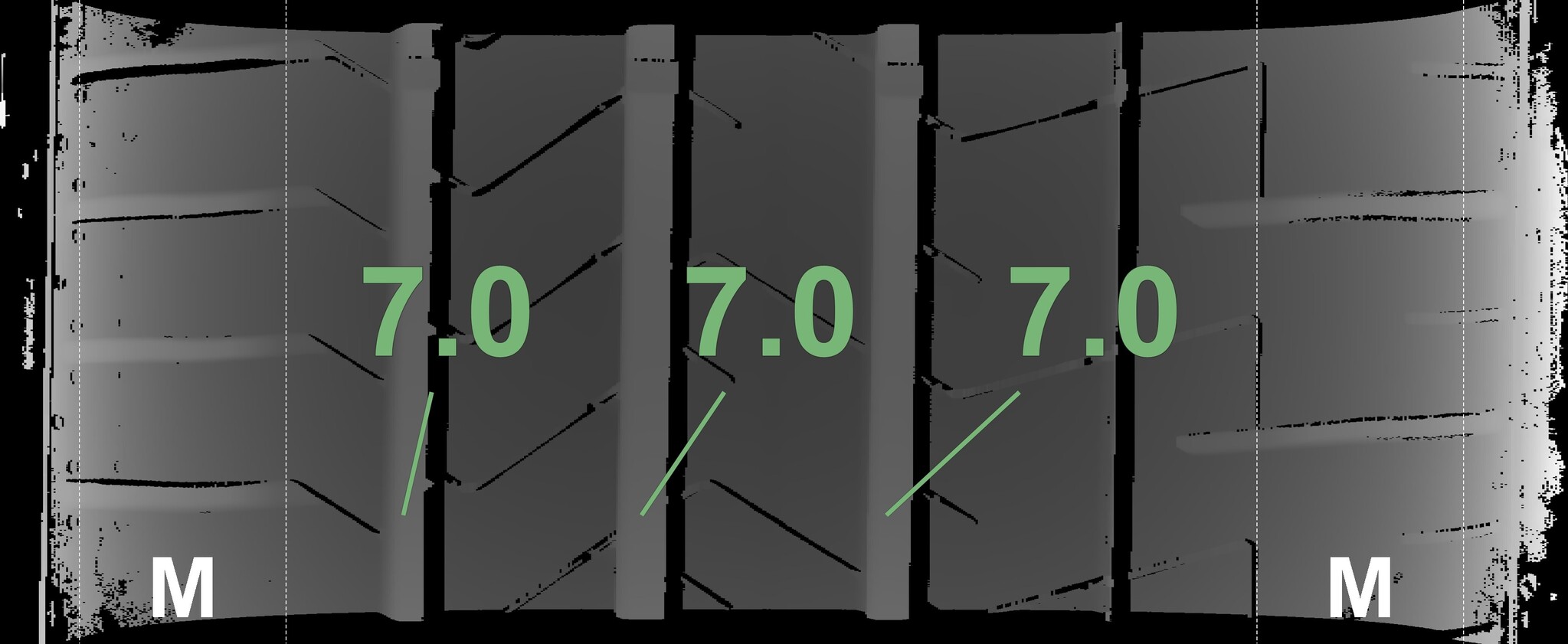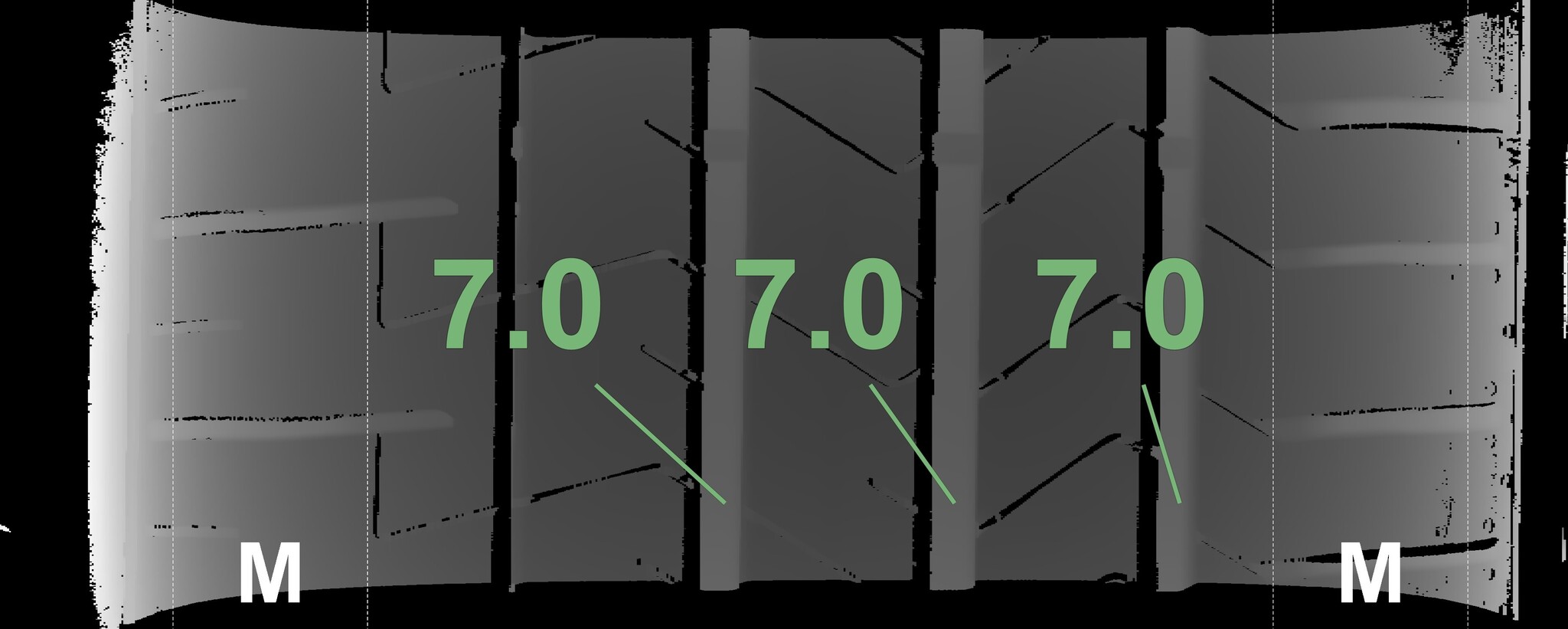 | Condition | Profile depth | DOT | Front Left | Demo bumps still visible | 6.7 mm | 2425 |