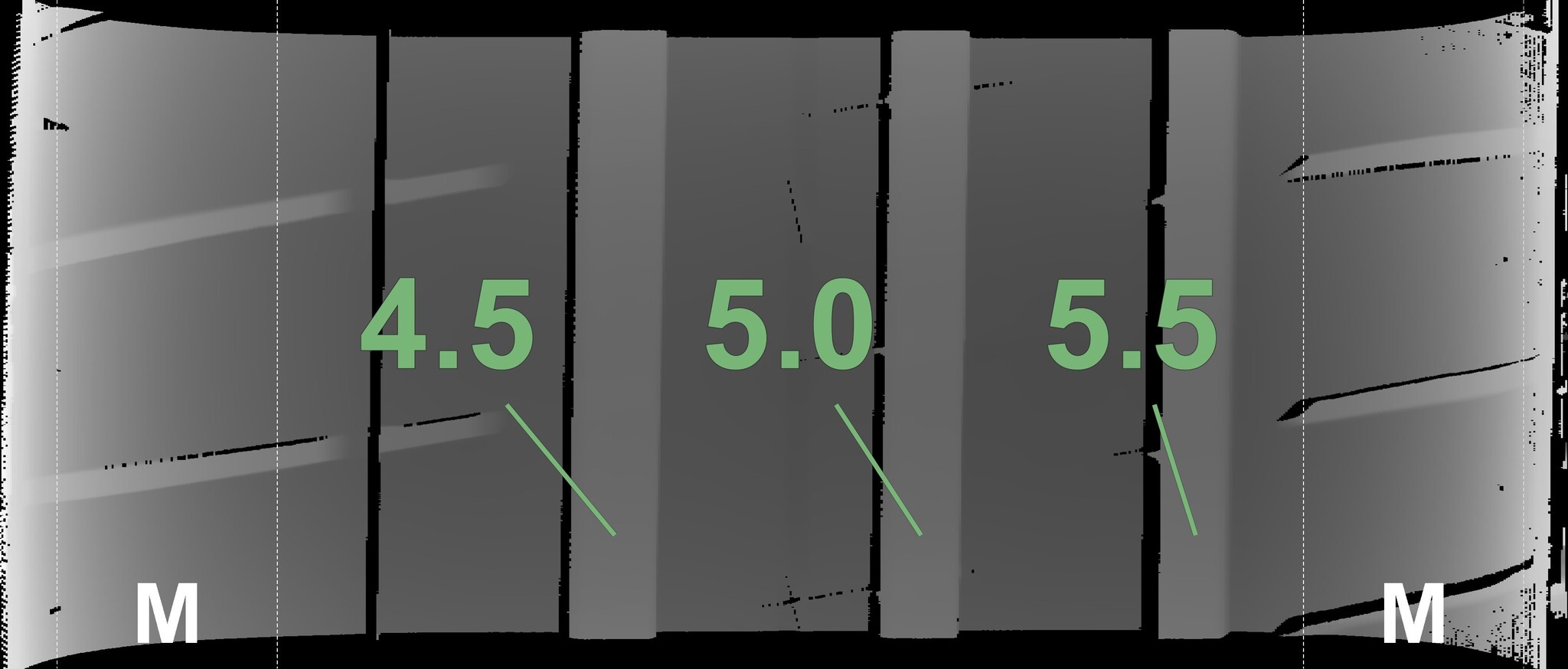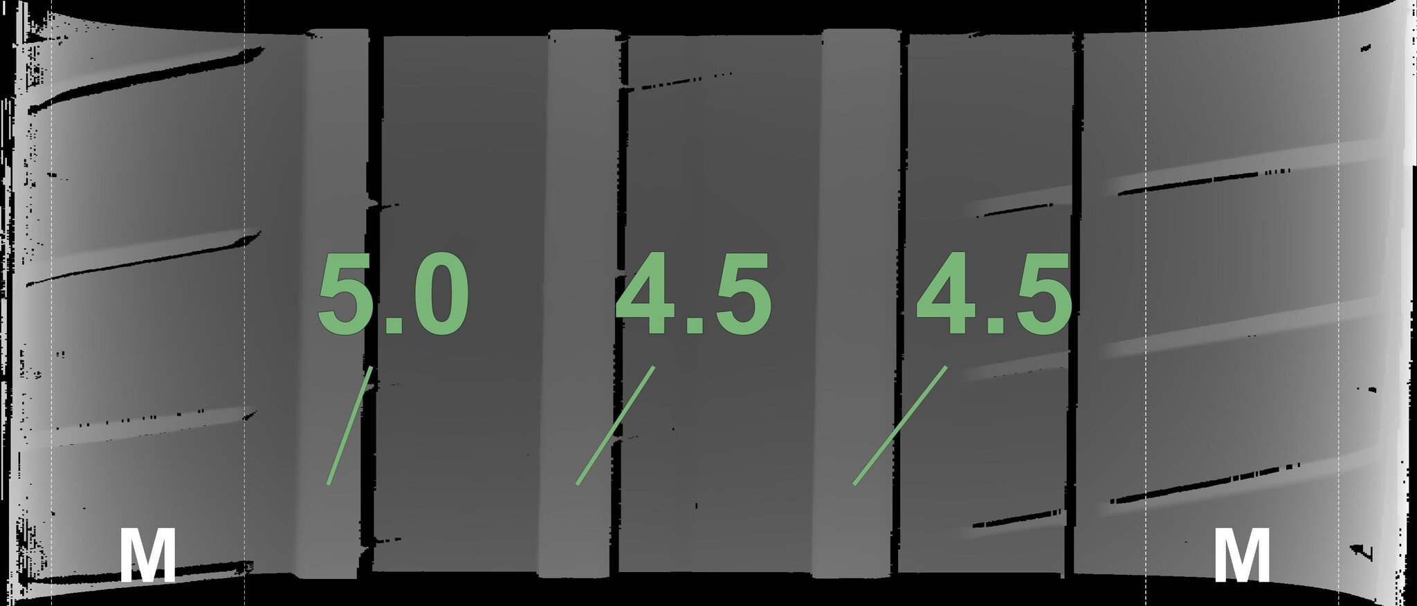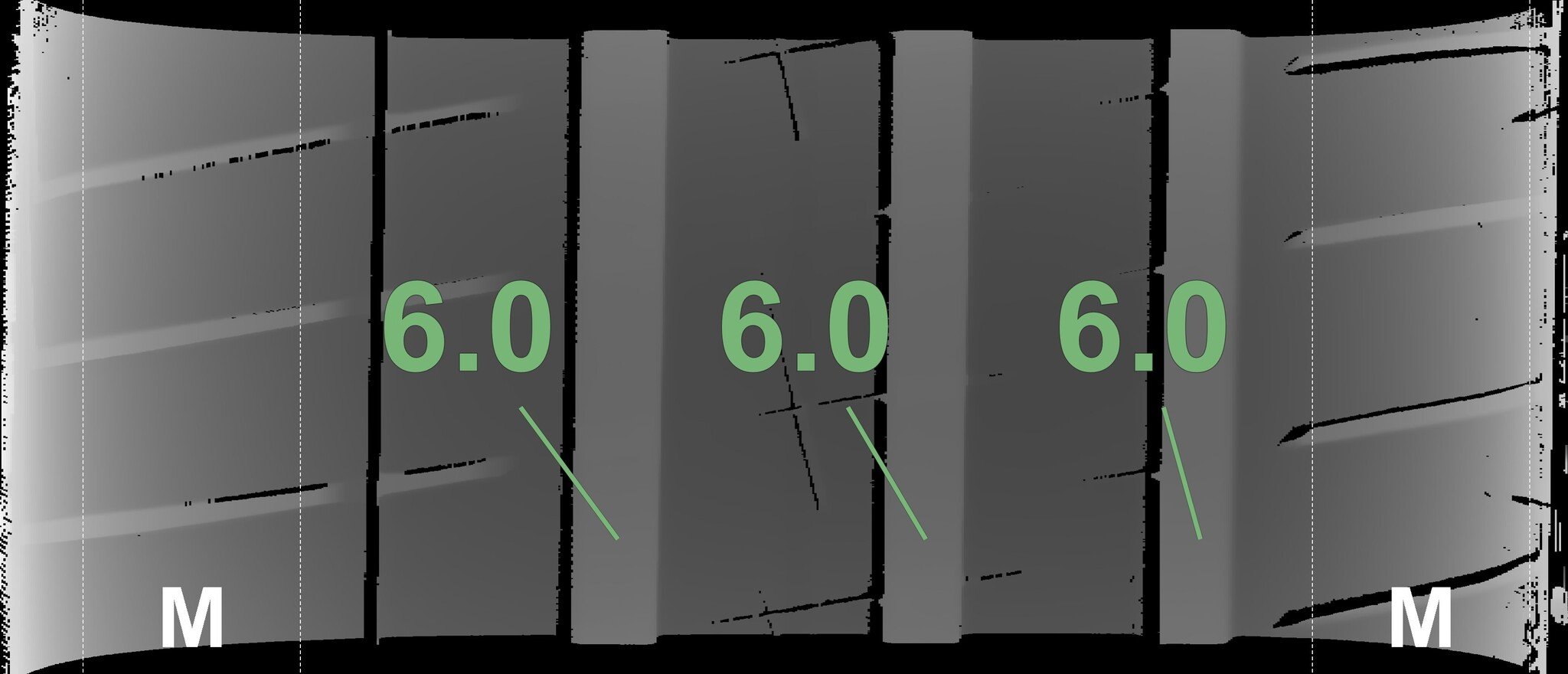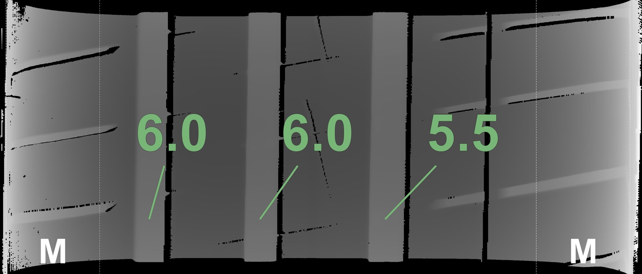 The measured tread depths and the details of the rims are shown above.