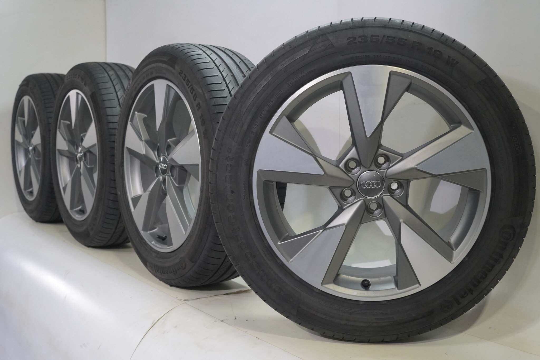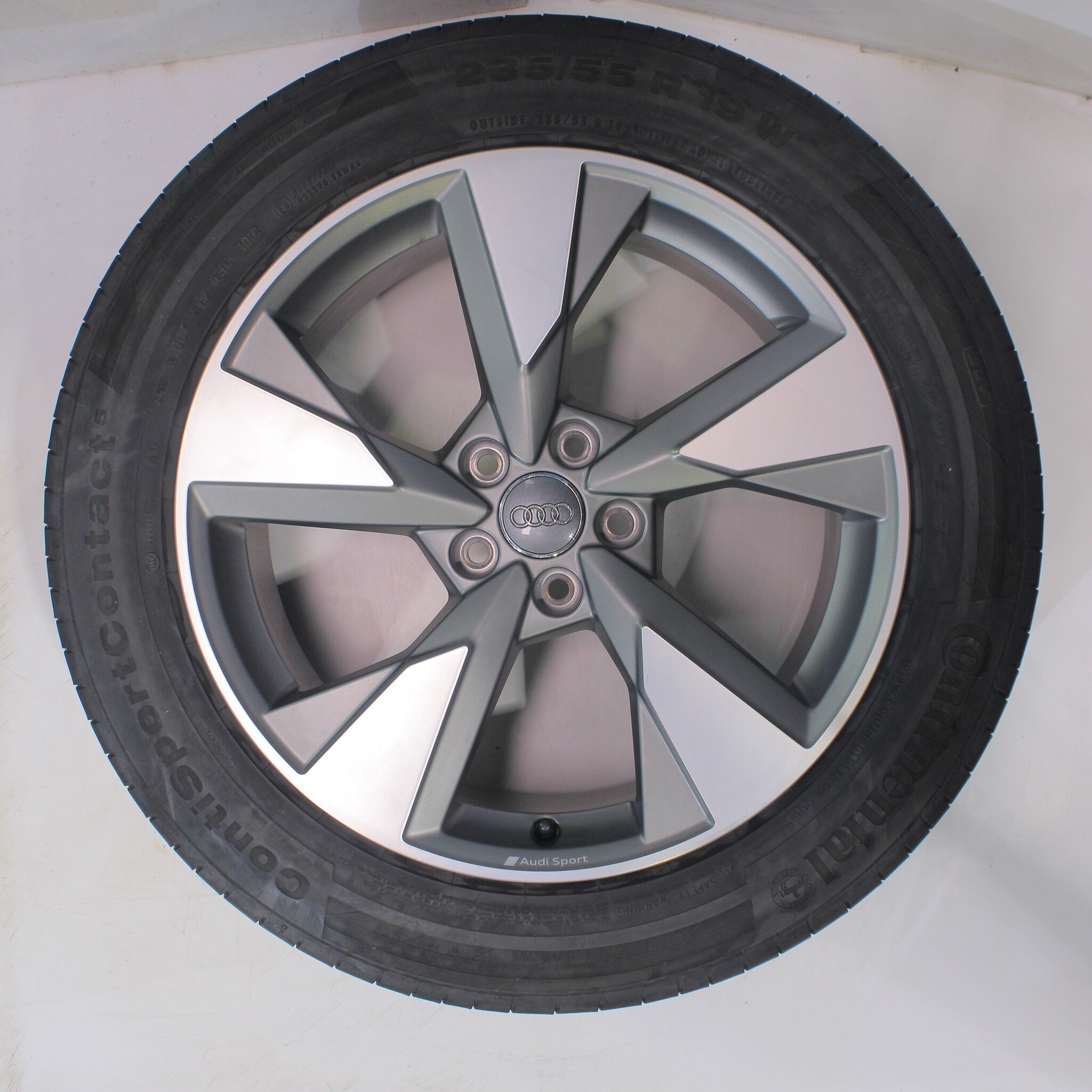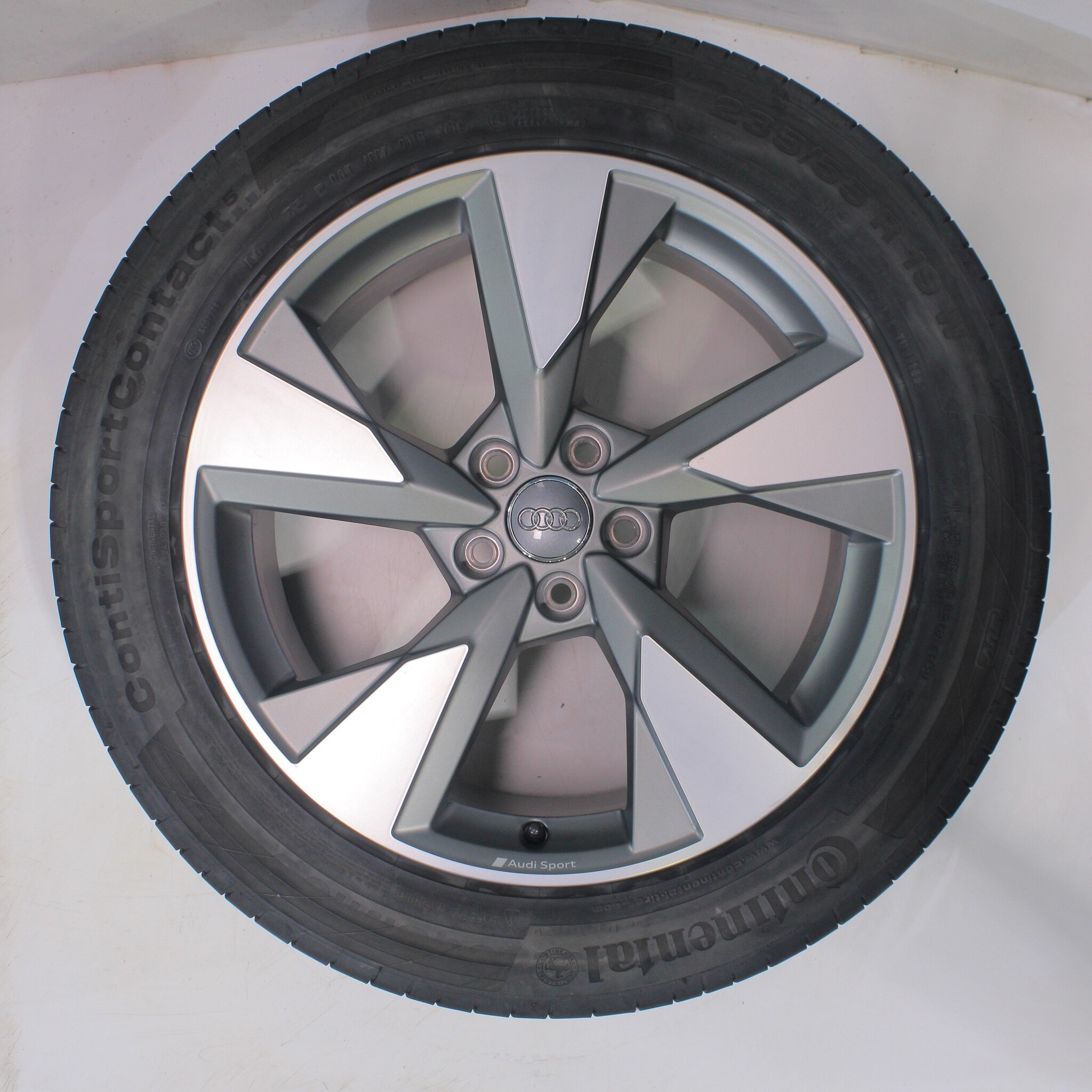 Original wheel set from Audi, 19 inch rims with Continental SportContact 5 summer tires. These rims are original rims from the brand Audi and suitable for: Audi Q5 SQ5 80A.