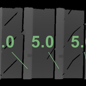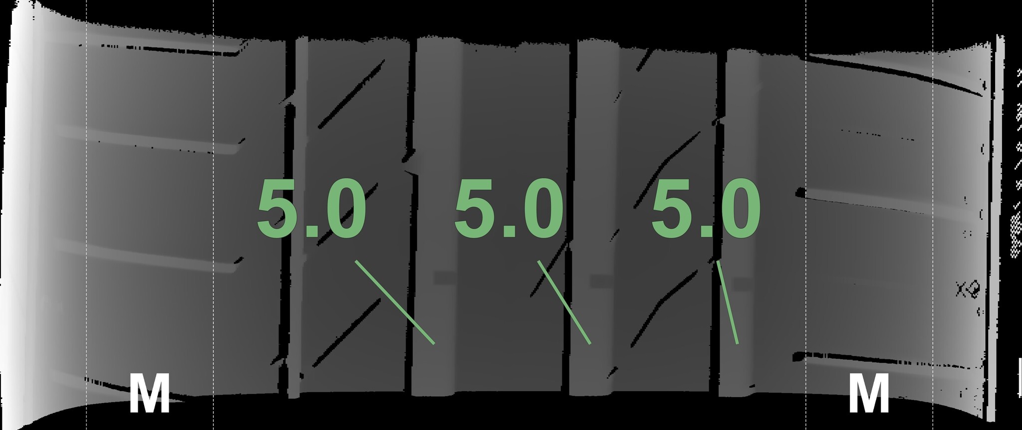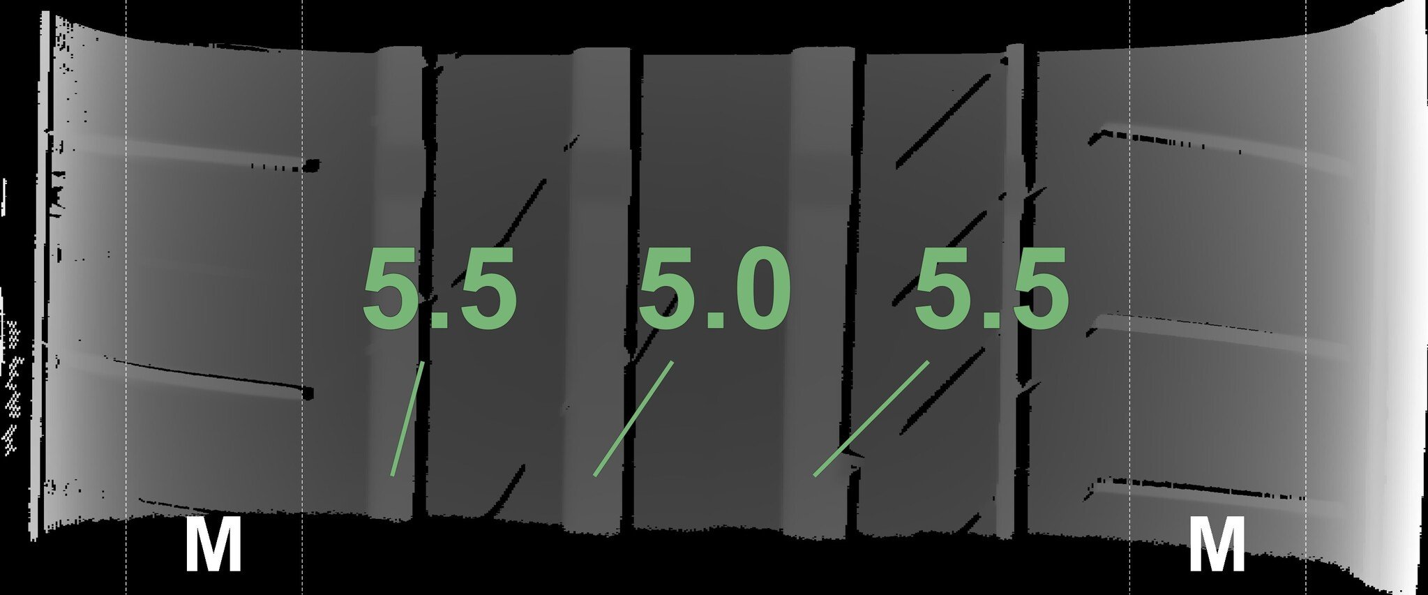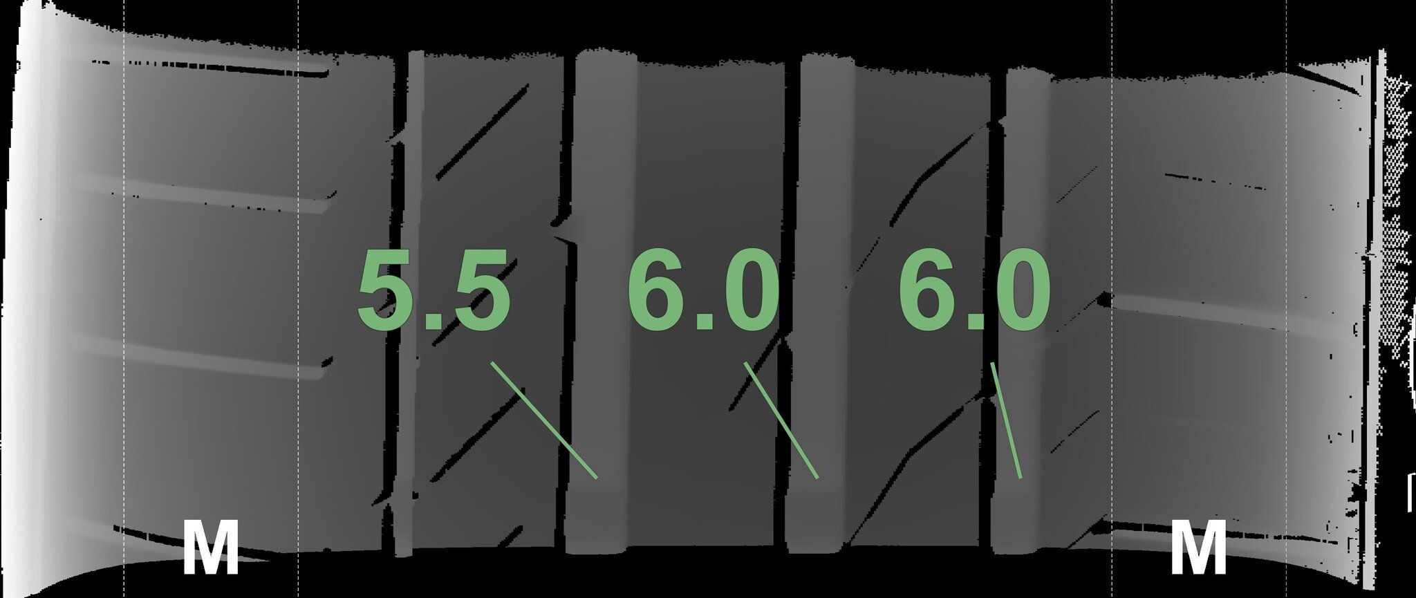 The measured tread depths and the details of the rims are shown above.