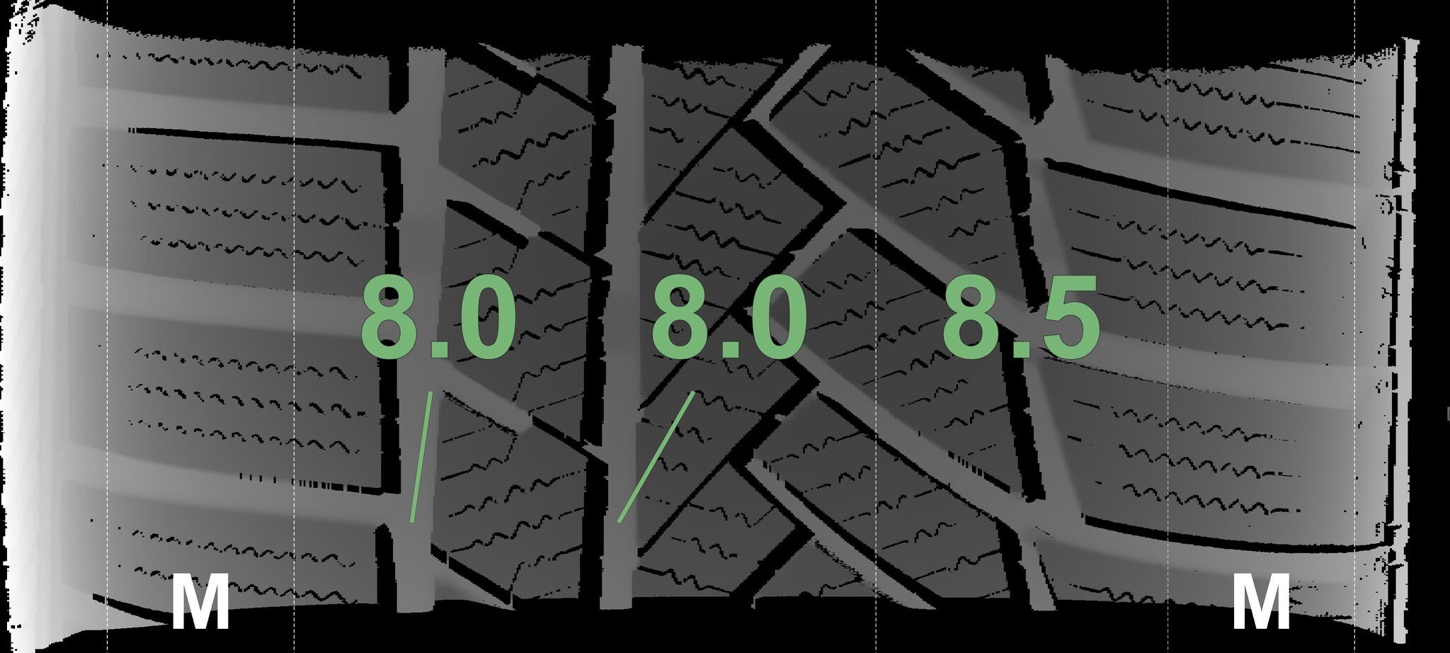 | Condition | Profile depth | DOT | Front Right | Used | 8.0 mm | 4320 |