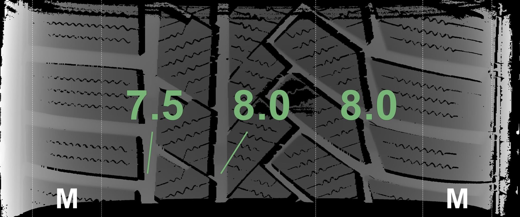 | Condition | Profile depth | DOT | Front Right | Used | 7.8 mm | 2322 |