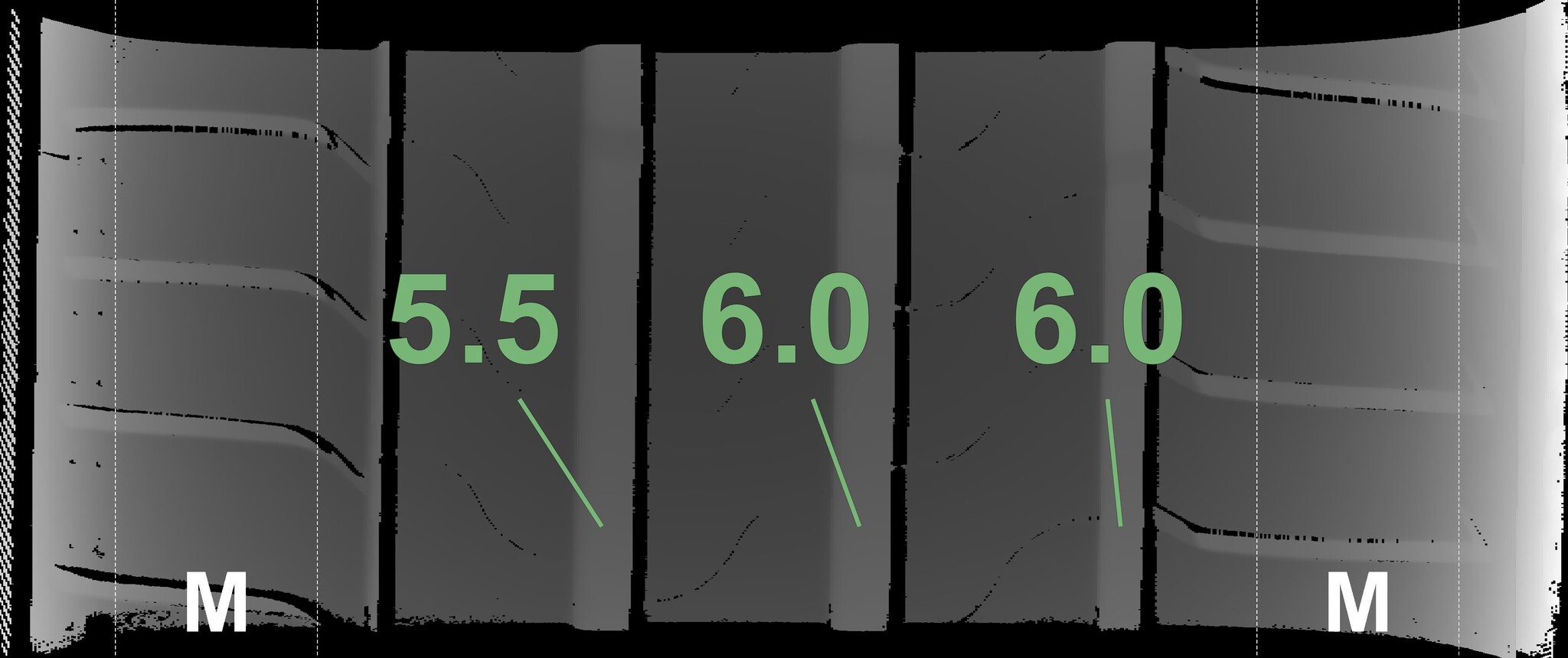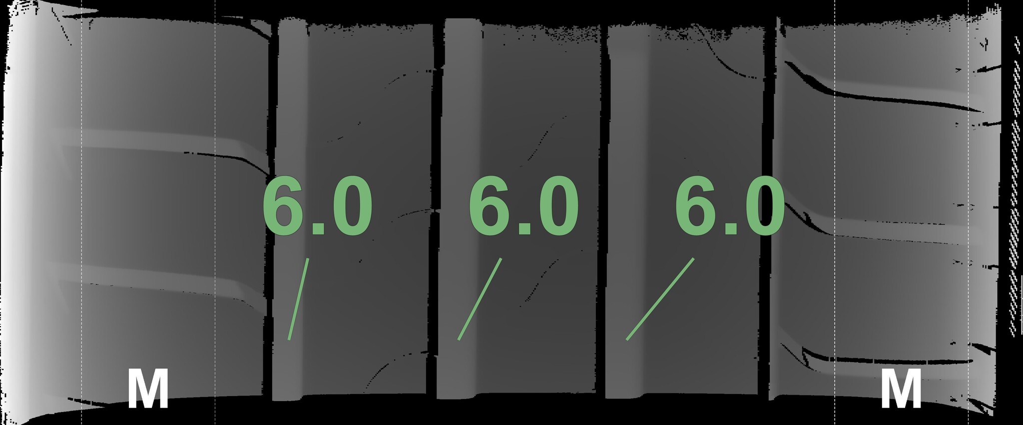 | Condition | Profile depth | DOT | Front Left | Used | 5.8 mm | 2023 |