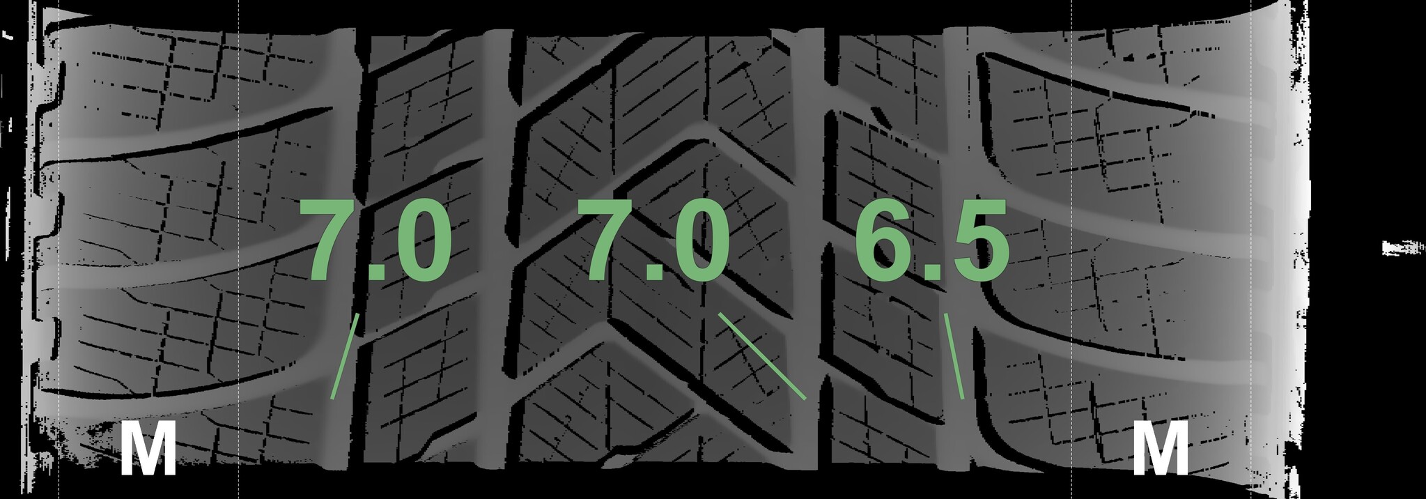 | Condition | Profile depth | DOT | Front Right | Used | 6.5 mm | 4621 |