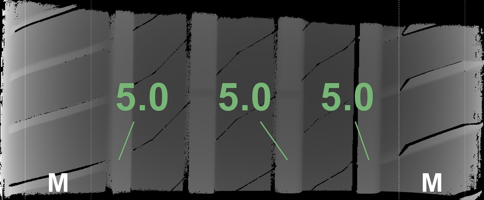 | Condition | Profile depth | DOT | Front Left | Used | 5.0 mm | 1925 |