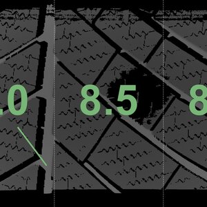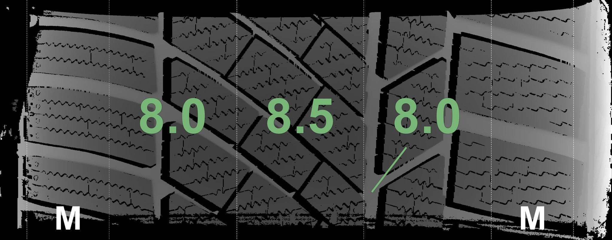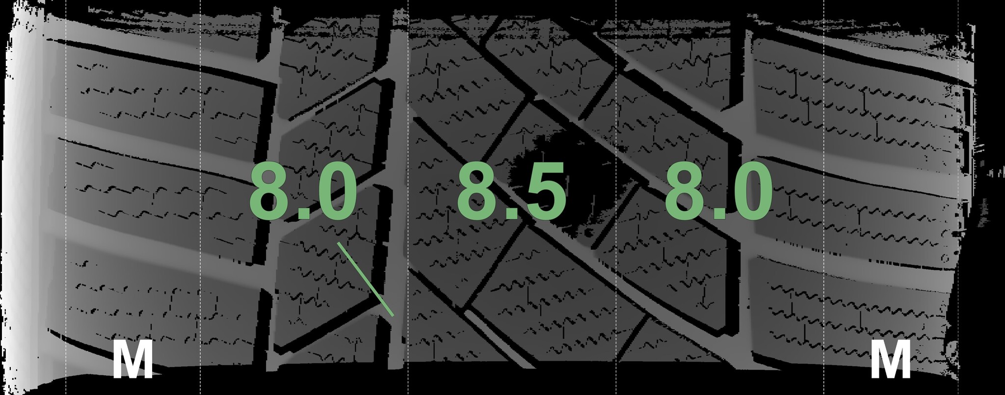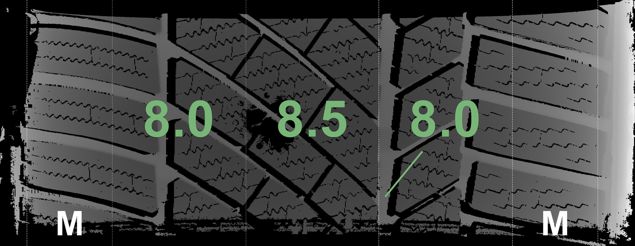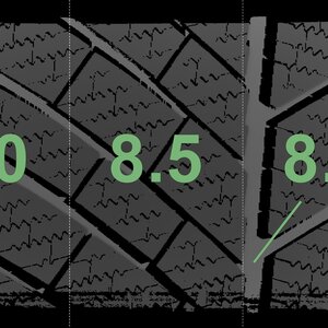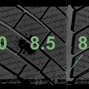The measured tread depths and the details of the rims are shown above.