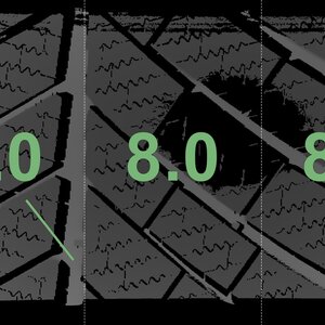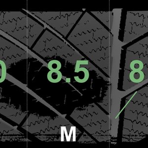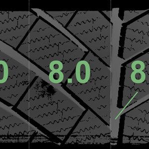 The measured tread depths and the details of the rims are shown above.
