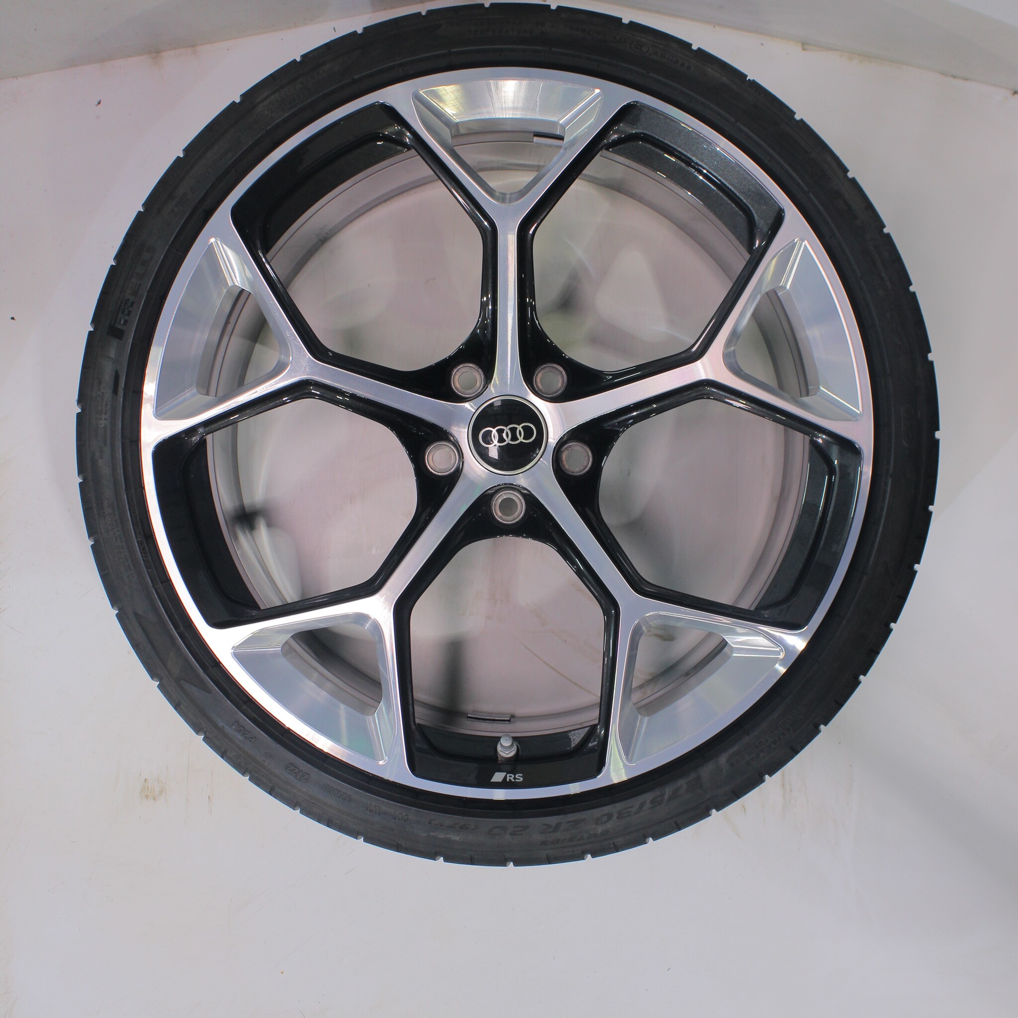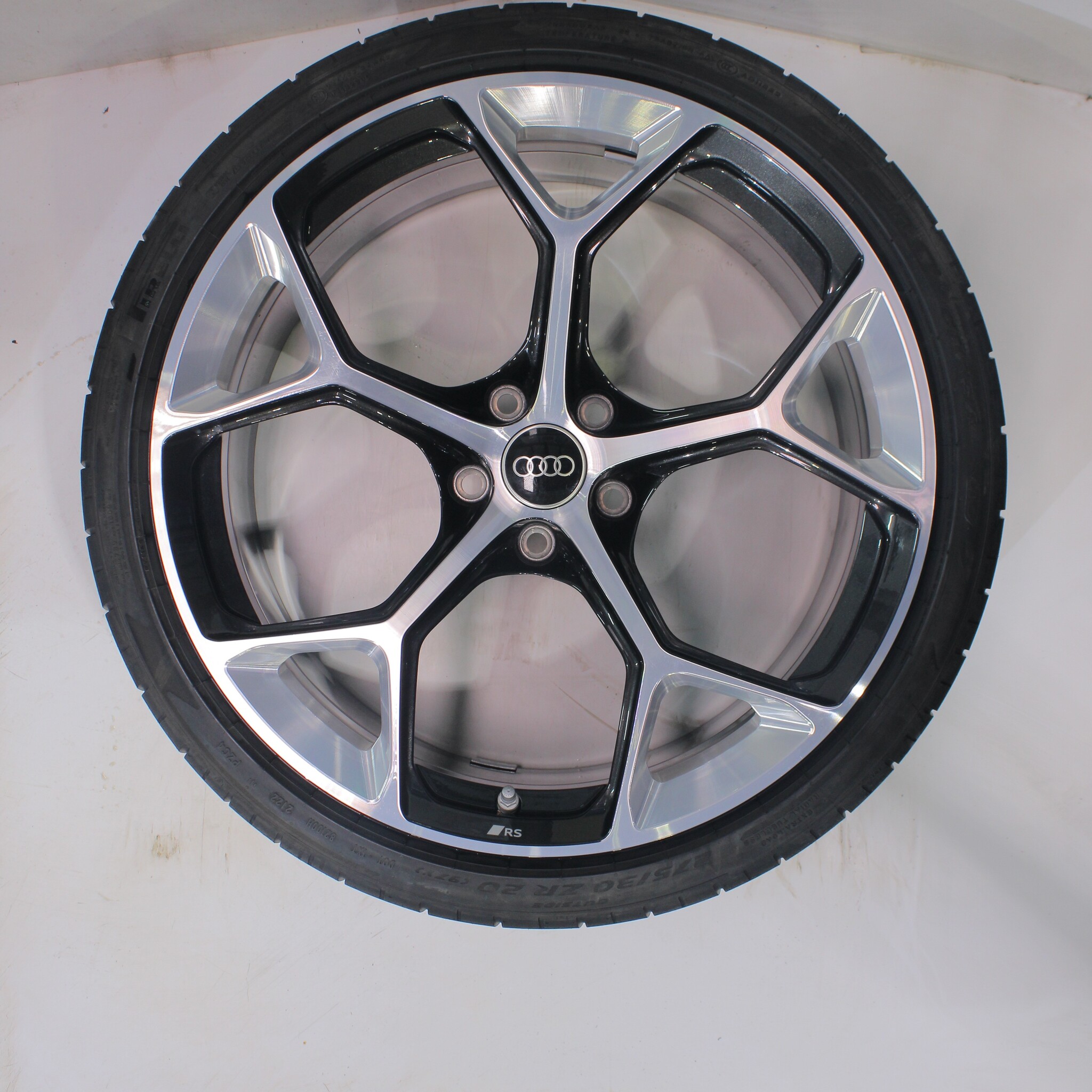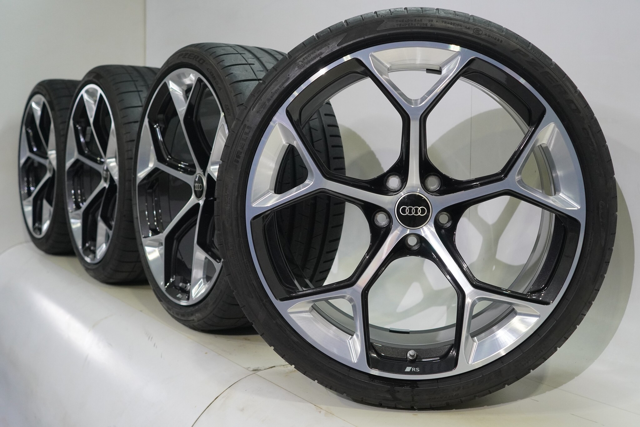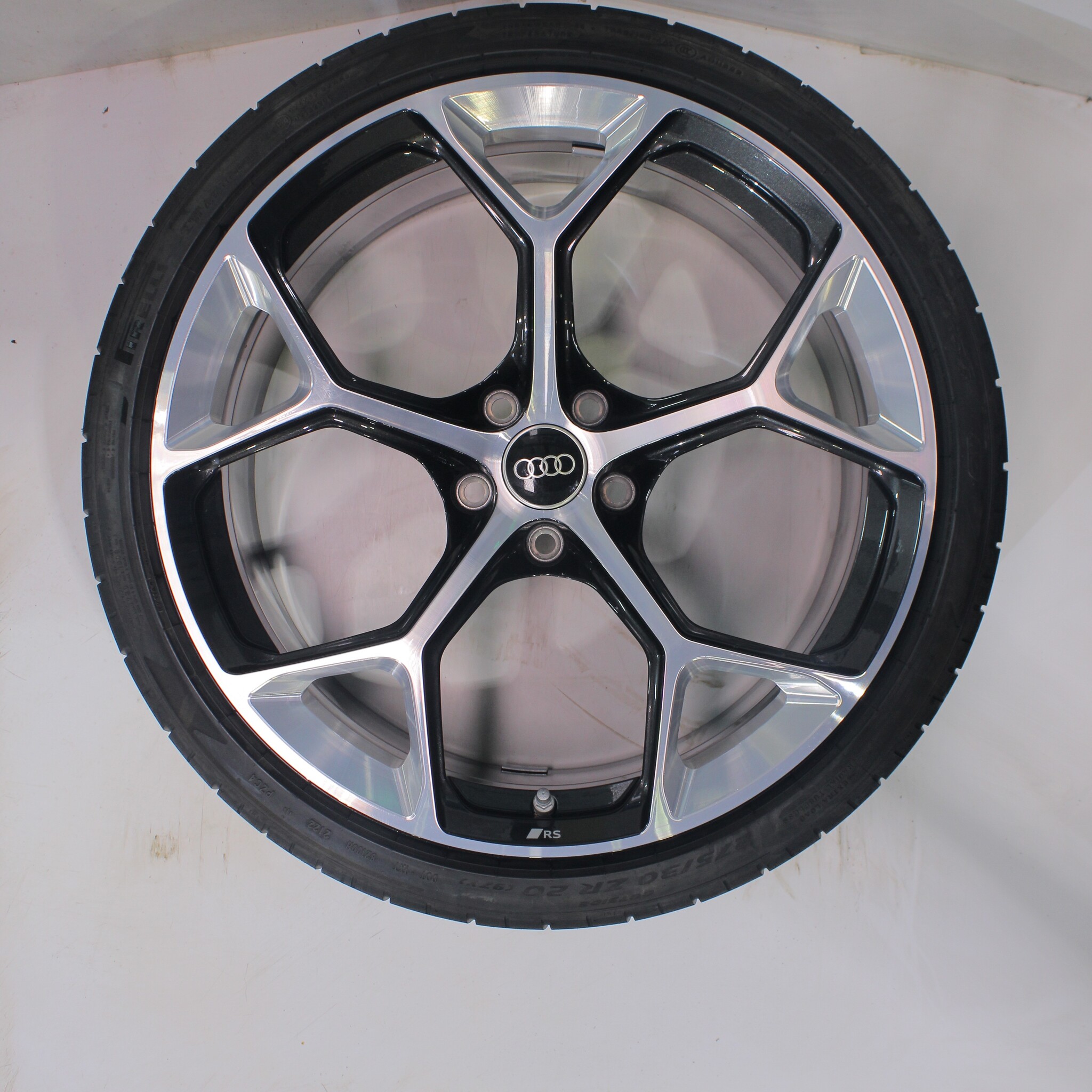 Original wheel set from Audi, 20-inch rims with Pirelli Pzero Corsa Summer Tires. These rims are original Audi brand rims and suitable for: Audi RS4 RS5 B9.