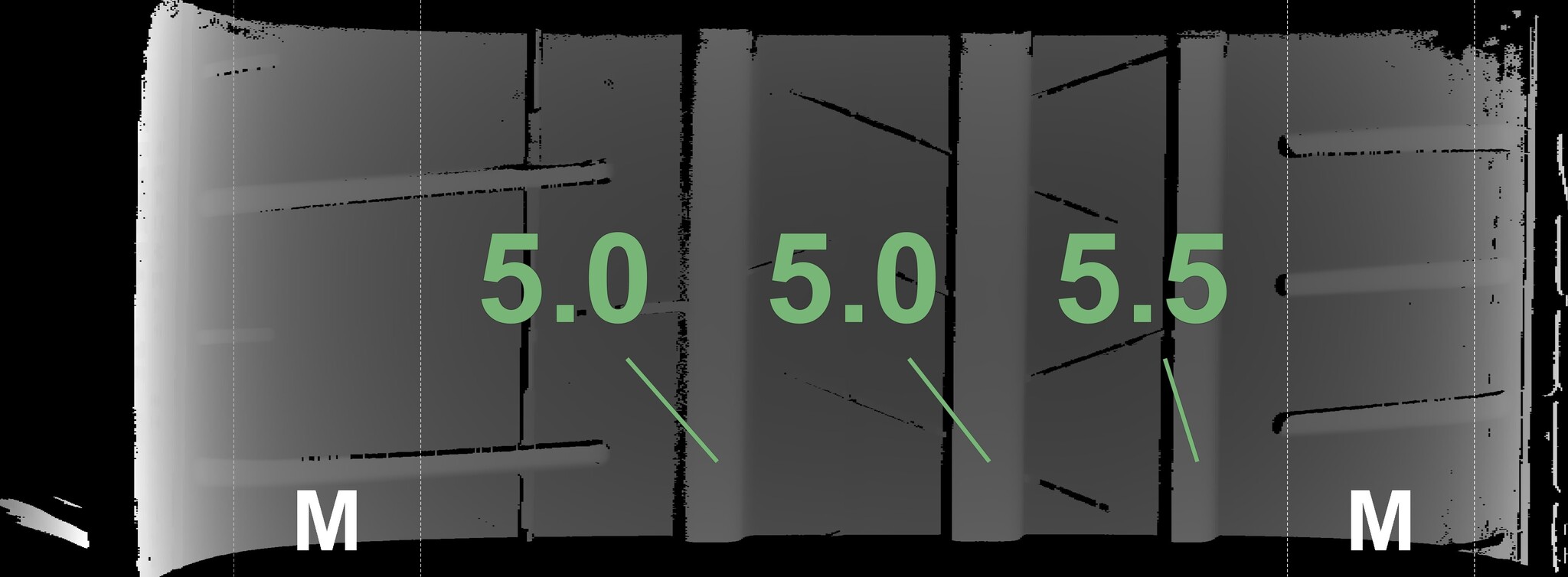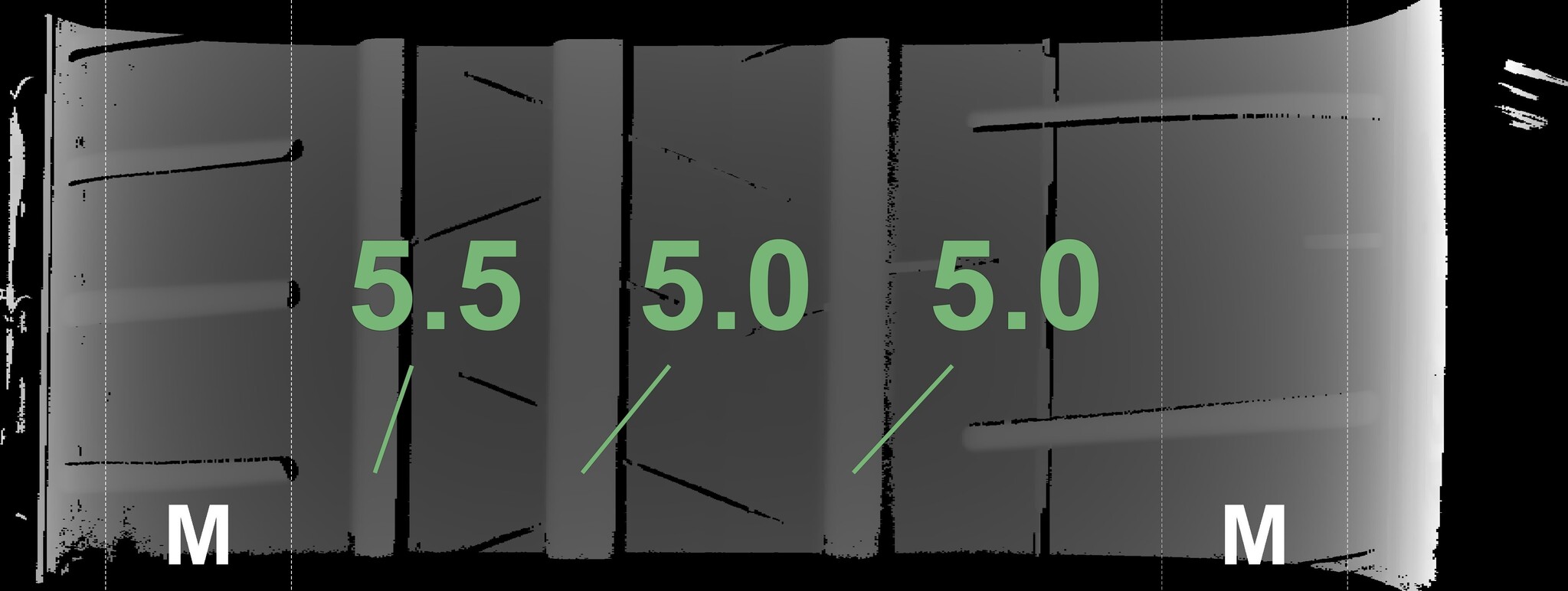 The measured tread depths and the details of the rims are shown above.