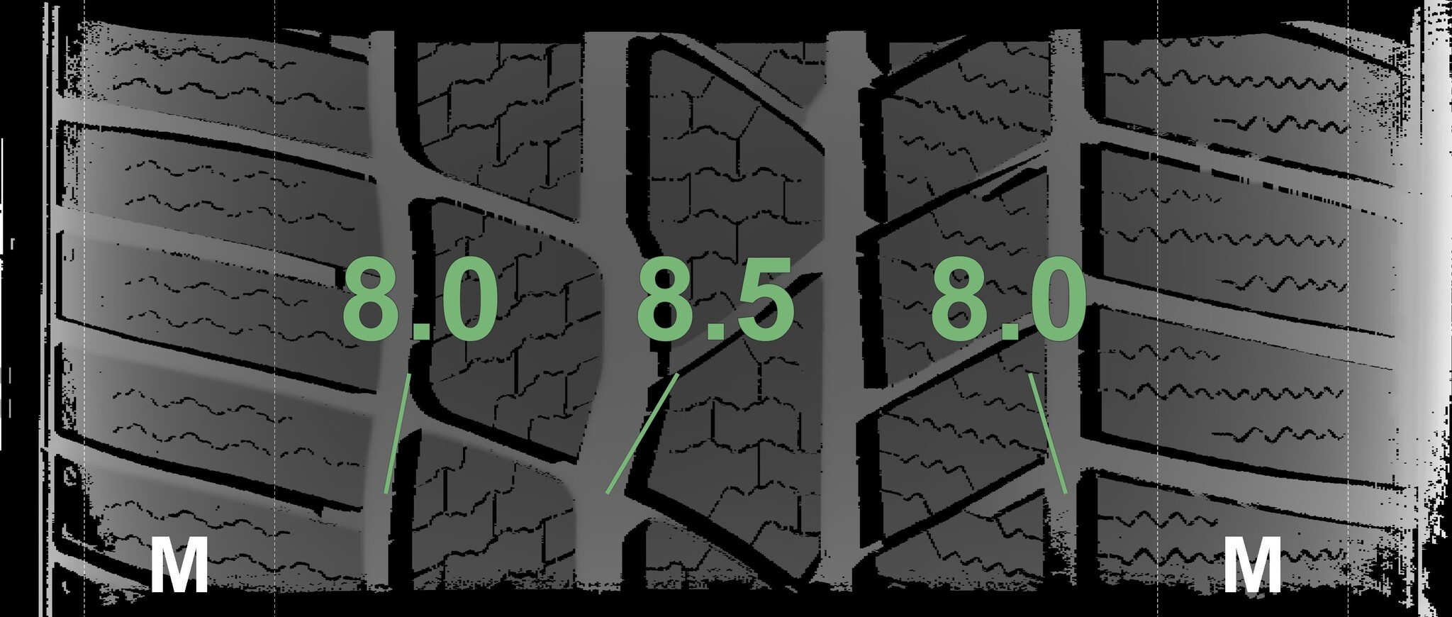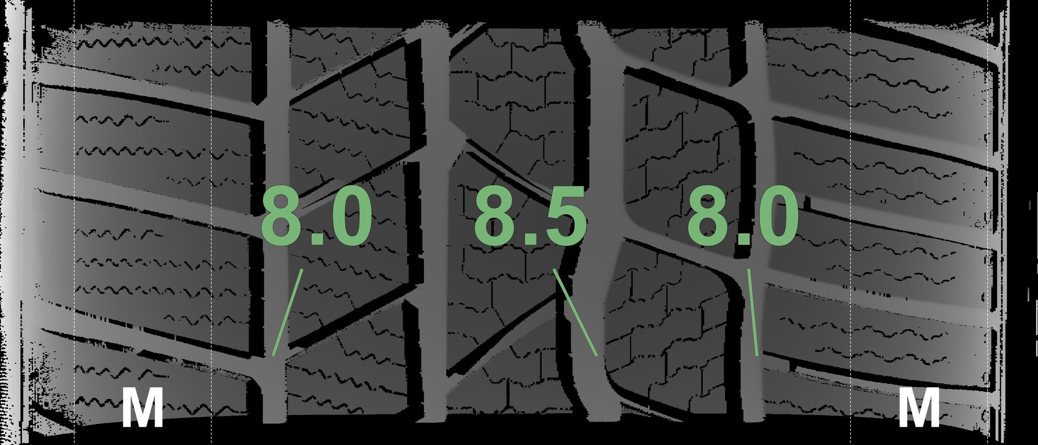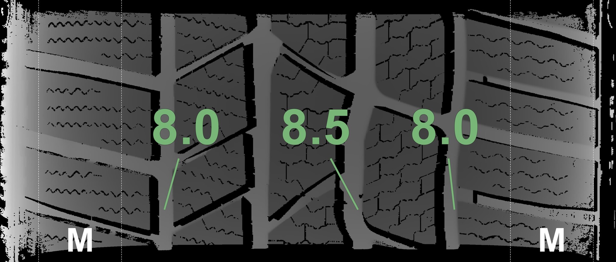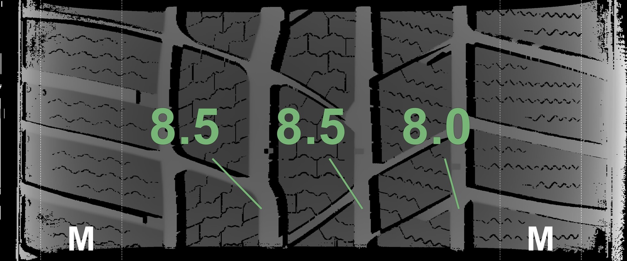The measured tread depths and details of the rims are shown above.