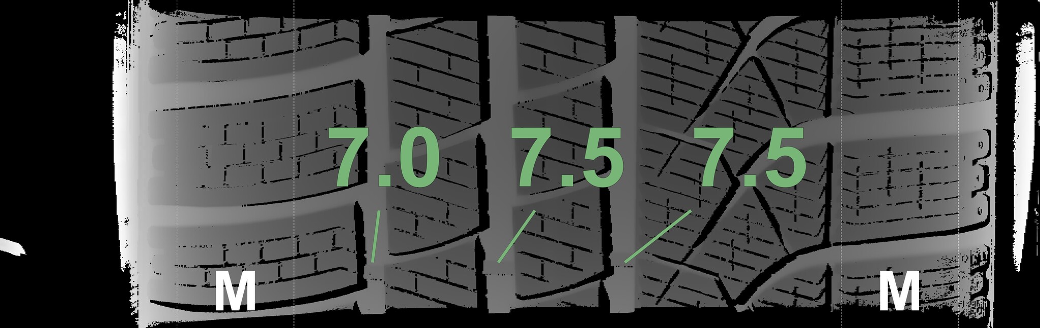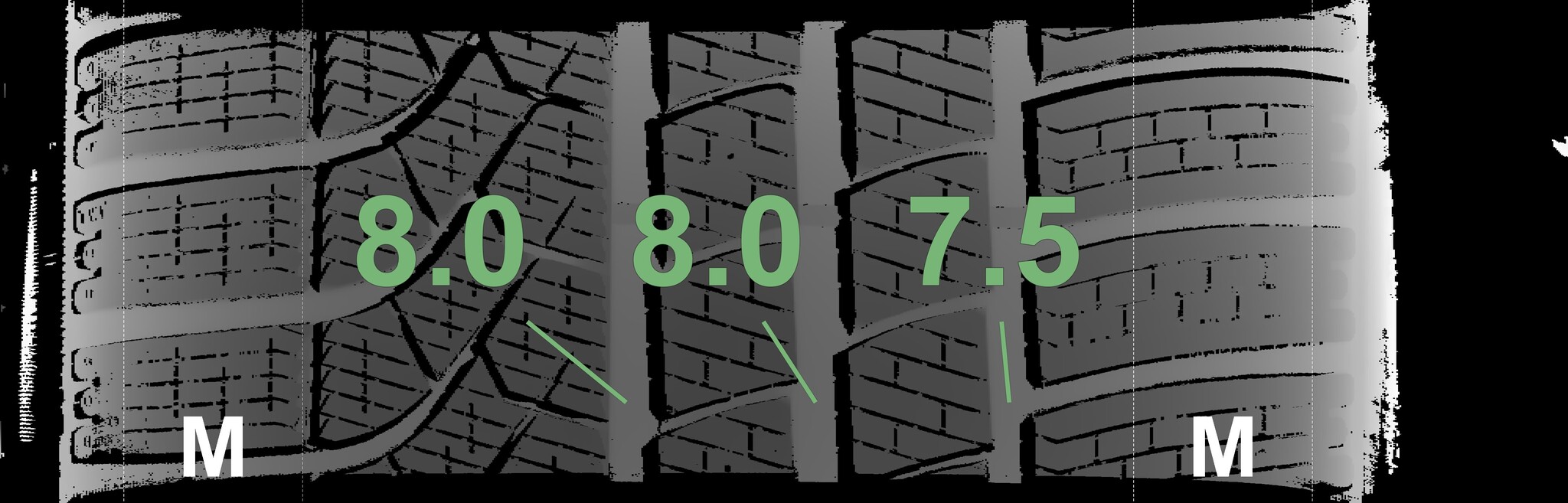 Condition | Profile depth | DOT | Front Right | Used | 7.5 mm | 1623 |